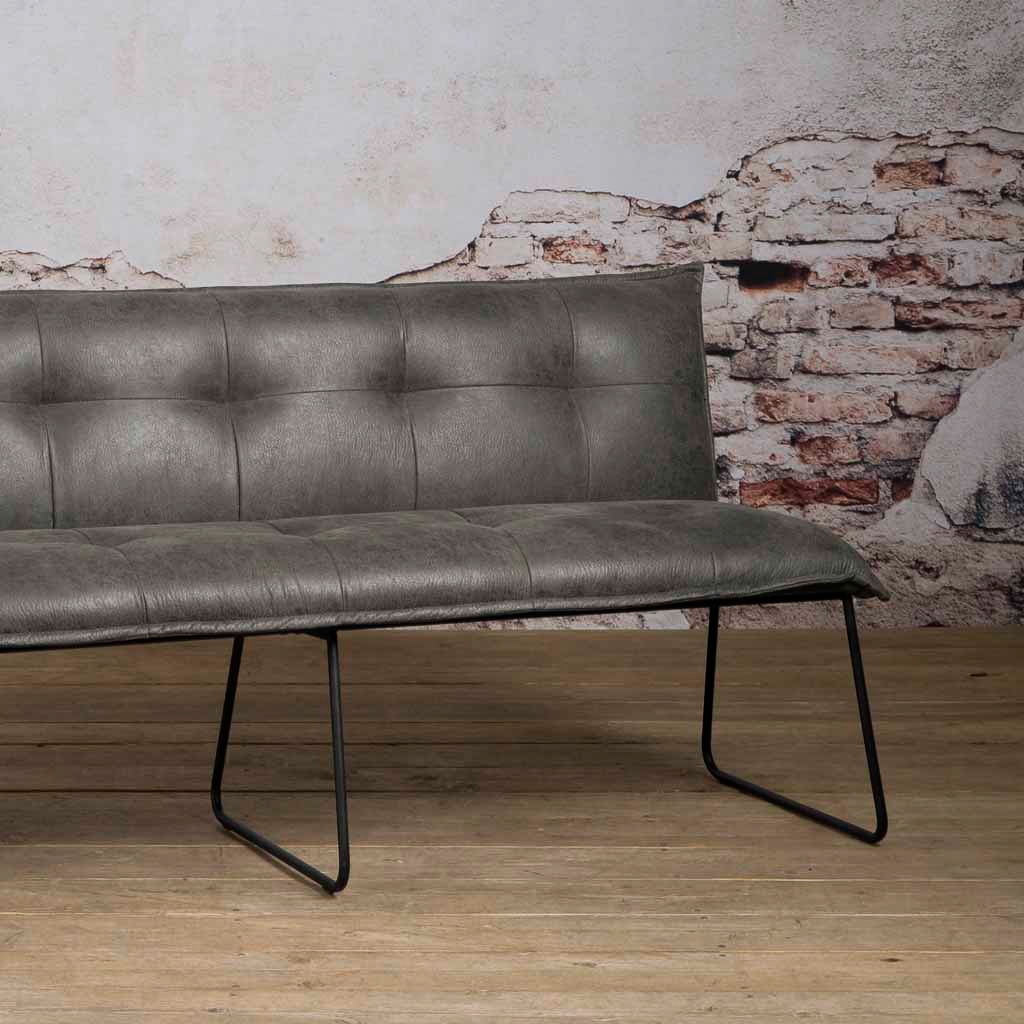 De ranke eetkamerbank Laval van Robuuste Tafels is een elegante en tegelijkertijd verassend comfortabele bank voor aan uw (maatwerk) eettafel. Deze eetkamerbank heeft een prachtig ‘gecapitoneerd’ stiksel en een uitstekend zitcomfort. Ook deze eetkamerbank is standaard zonder armleuningen, wat het makkelijk maakt om in- en uit te stappen. De Laval eetkamerbank is doorgaans direct uit voorraad leverbaar in 3 kleuren en 2 lengtematen (155cm & 185cm). Het materiaal is een matte microvezelstof. De beschikbare kleuren zijn: grey, cognac & green. De microvezelstof kunt u eenvoudig vlekvrij maken met een behandeling van iProteqt. De Laval is ook leverbaar als eetkamerstoel Laval.