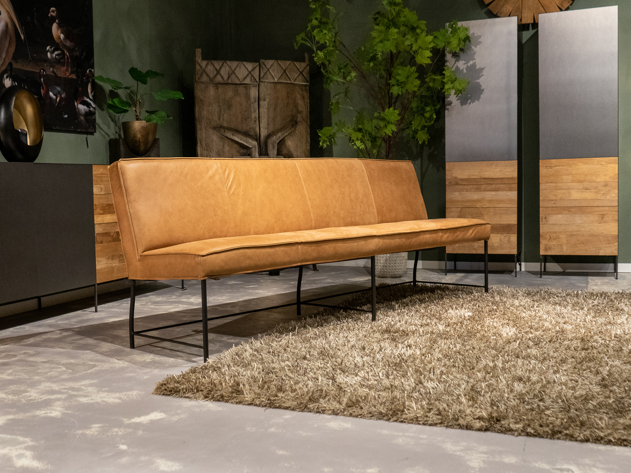 Stoere eetkamerbank met bijzonder comfortabele zit, leverbaar in leer en stof. Deze eetkamerbank leveren we in diverse kleuren, uitsluitend met een zwart onderstel. Leverbaar vanaf 120cm tot maar liefst 240cm. Ook een hoek eetkamerbank maken is mogelijk met dit model middels het 175cm hoekelement links of rechts.