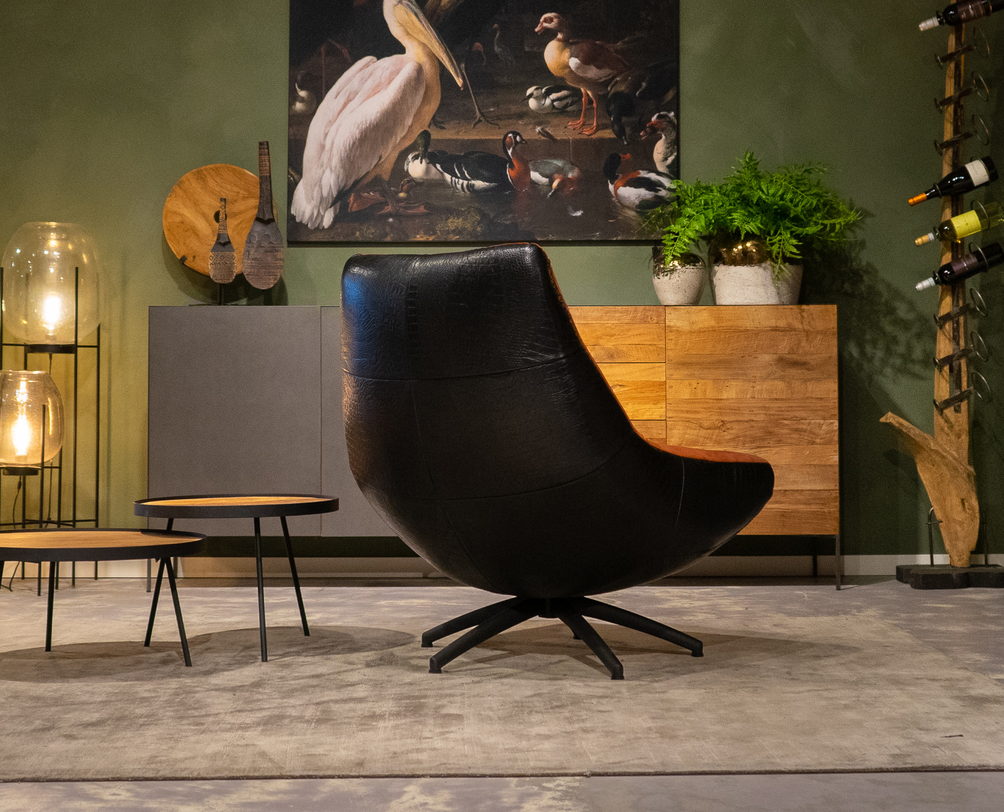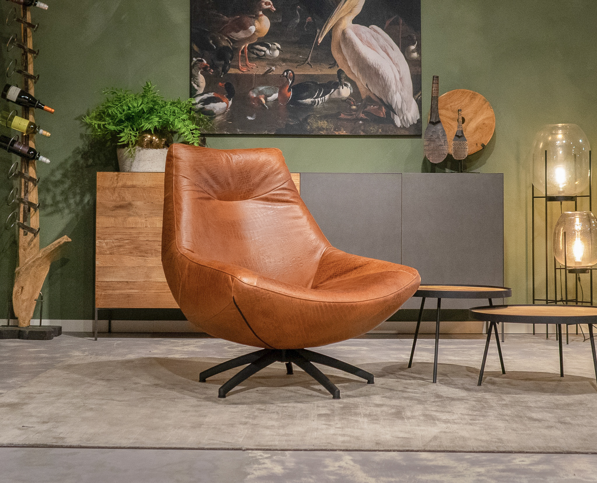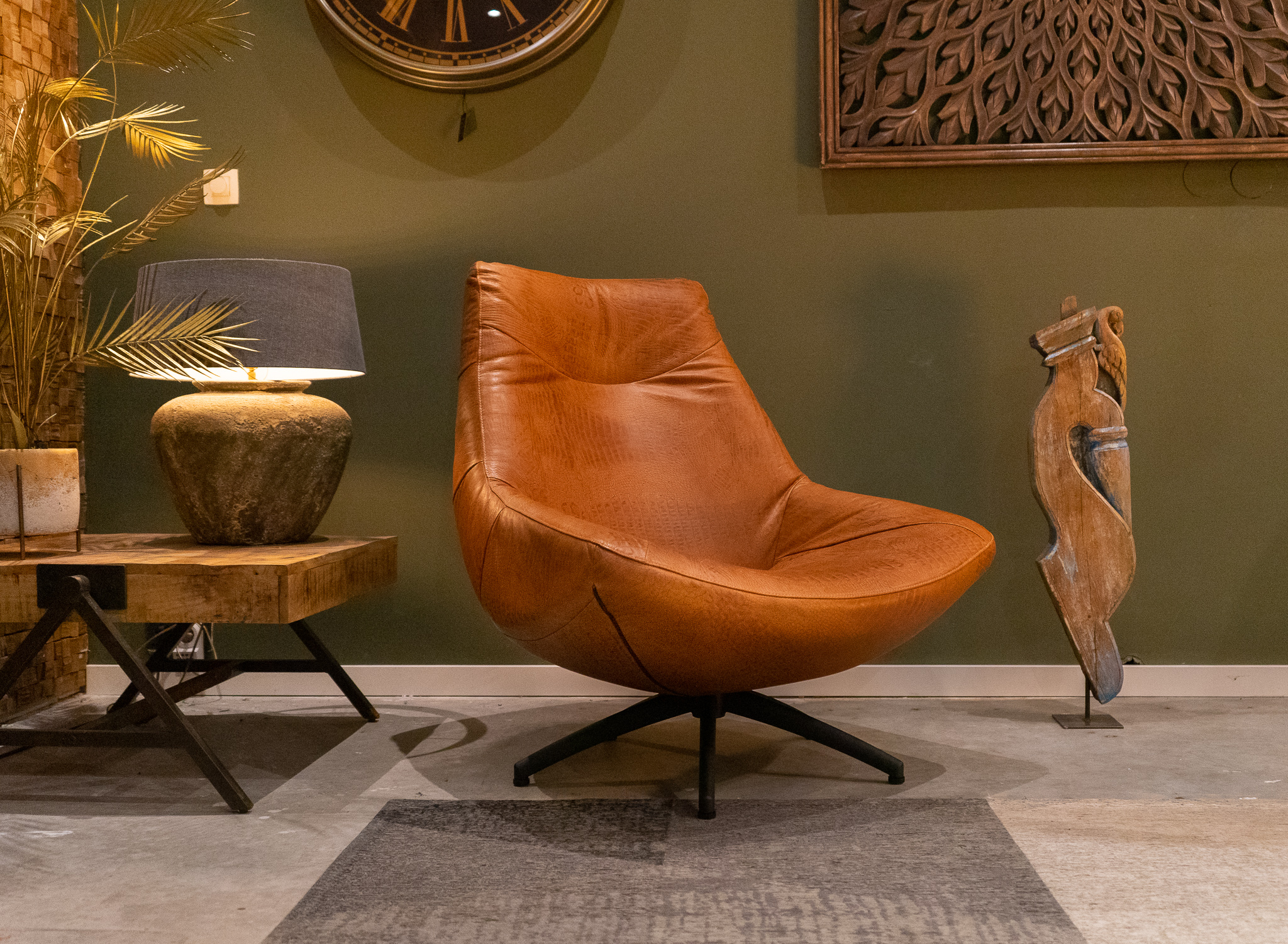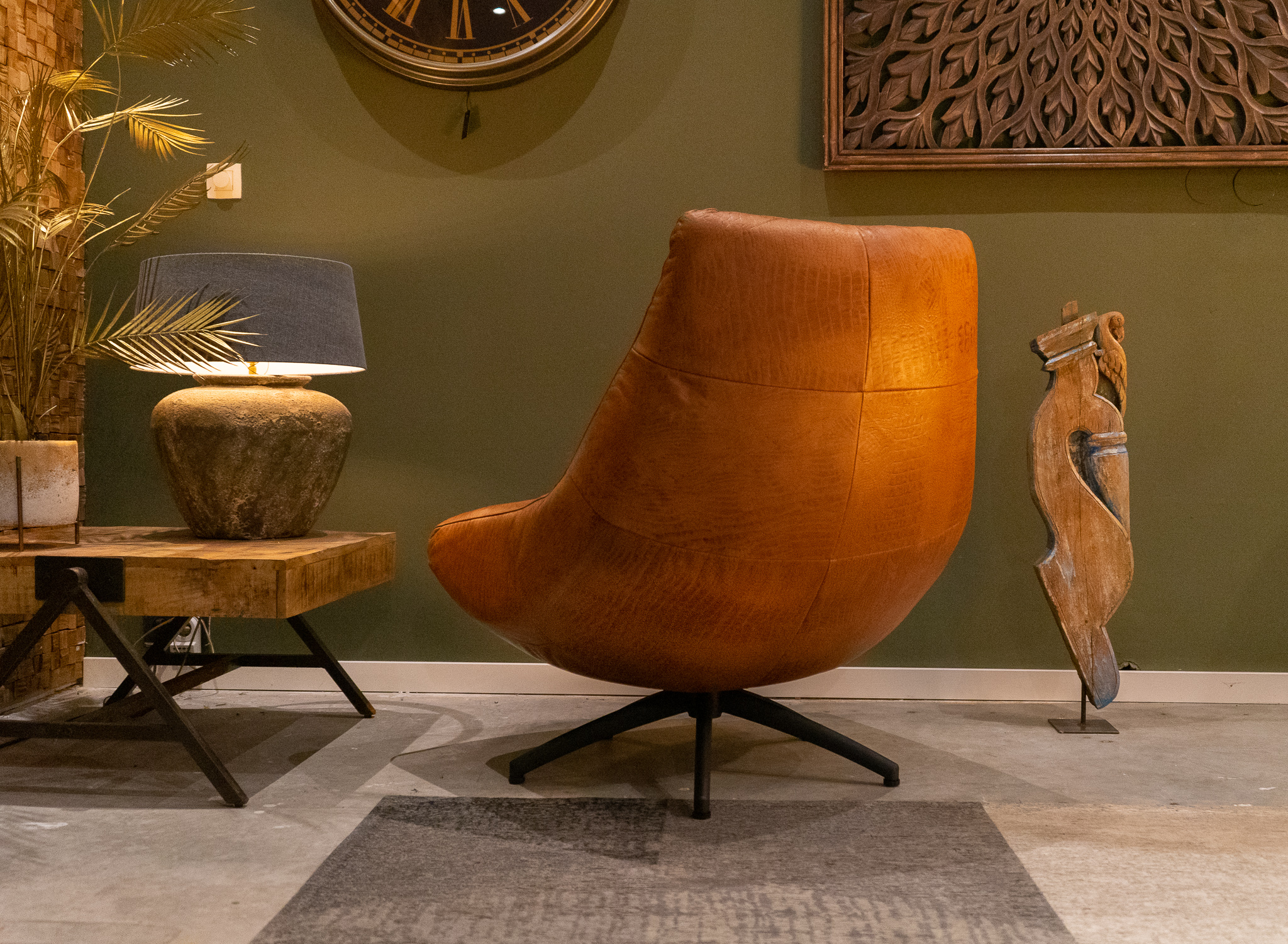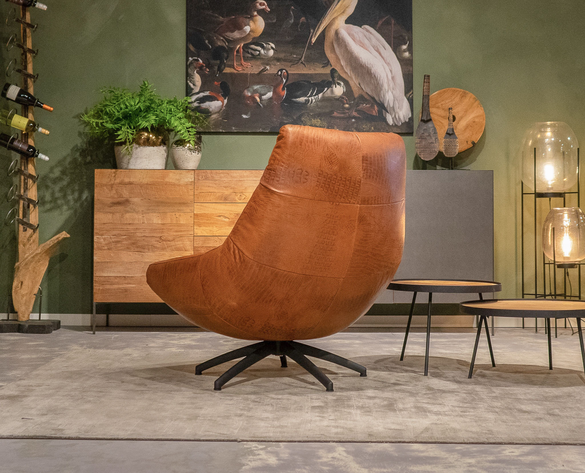 Exclusieve draaifauteuil op stalen draaivoet leverbaar in leer en stof. Dit model leveren we in bijzonder veel uitvoeringen en diverse kleuren. Dit model is leverbaar in caiman leer met een mooie croq print. Gemaakt in Nederland geeft het veel opties, zo is het ook mogelijk om bijvoorbeeld een achterkant in caiman leer en een voorkant in antigo leer te bestellen. Indien er caiman leer op het zitvlak gekozen wordt moet u er rekening mee houden dat de print over tijd zal vervagen.