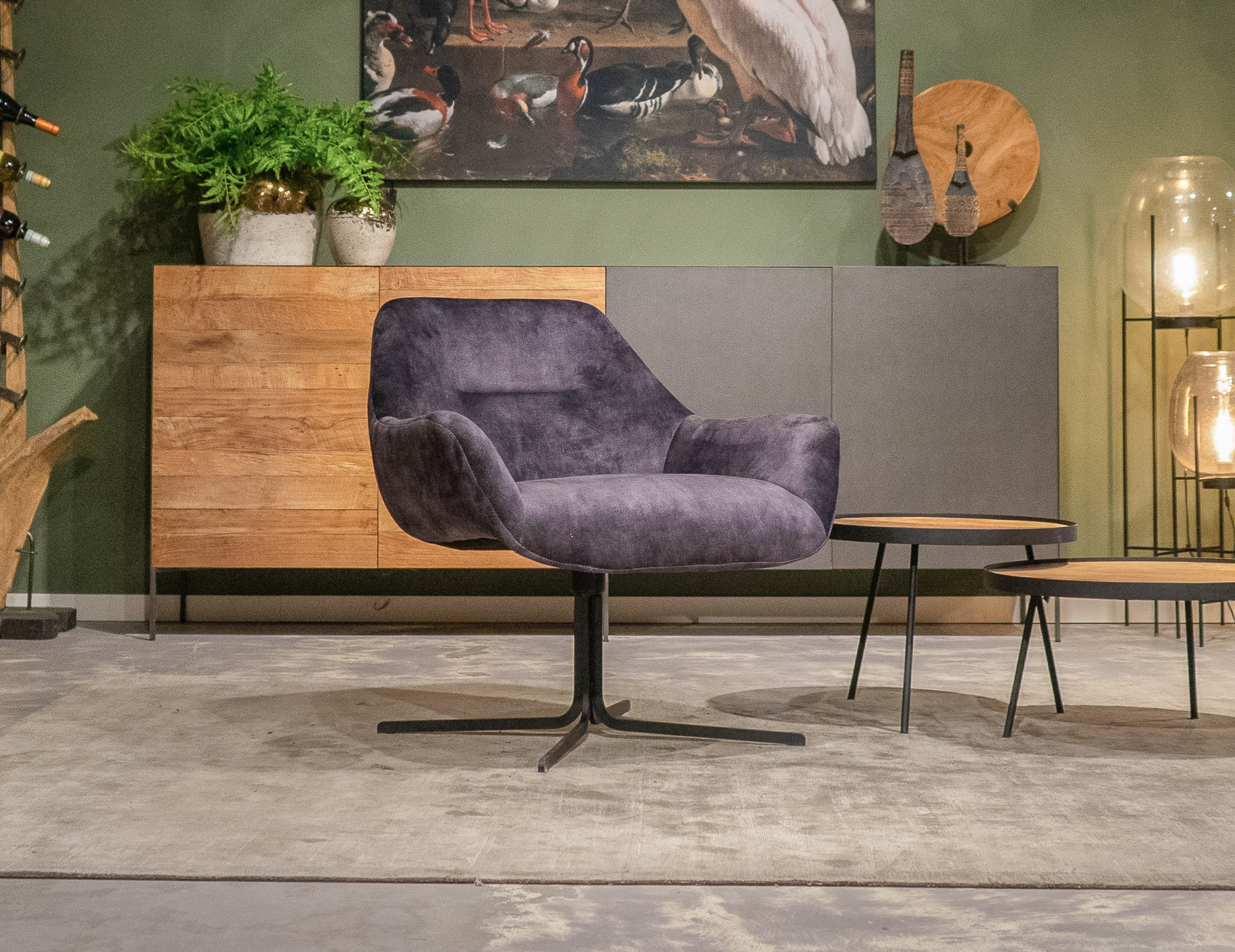 Comfortabele draaifauteuil Marie, leverbaar direct uit voorraad in velvet in de kleuren hunter en antraciet. De velvet stof maakt u eenvoudig gegarandeerd vlekvrij met een Protexx behandeling. Proefzitten is mogelijk in onze showroom in Sliedrecht.