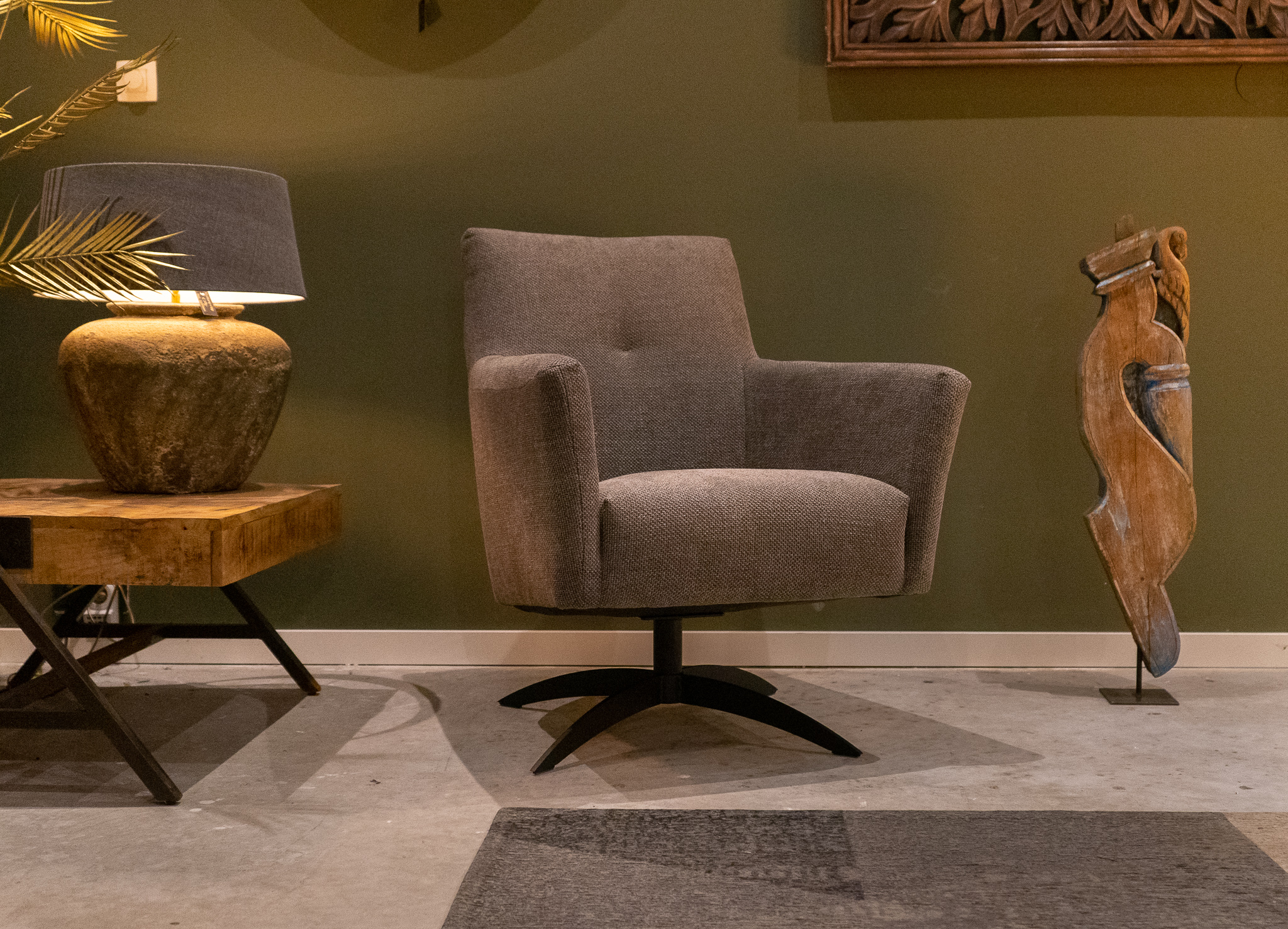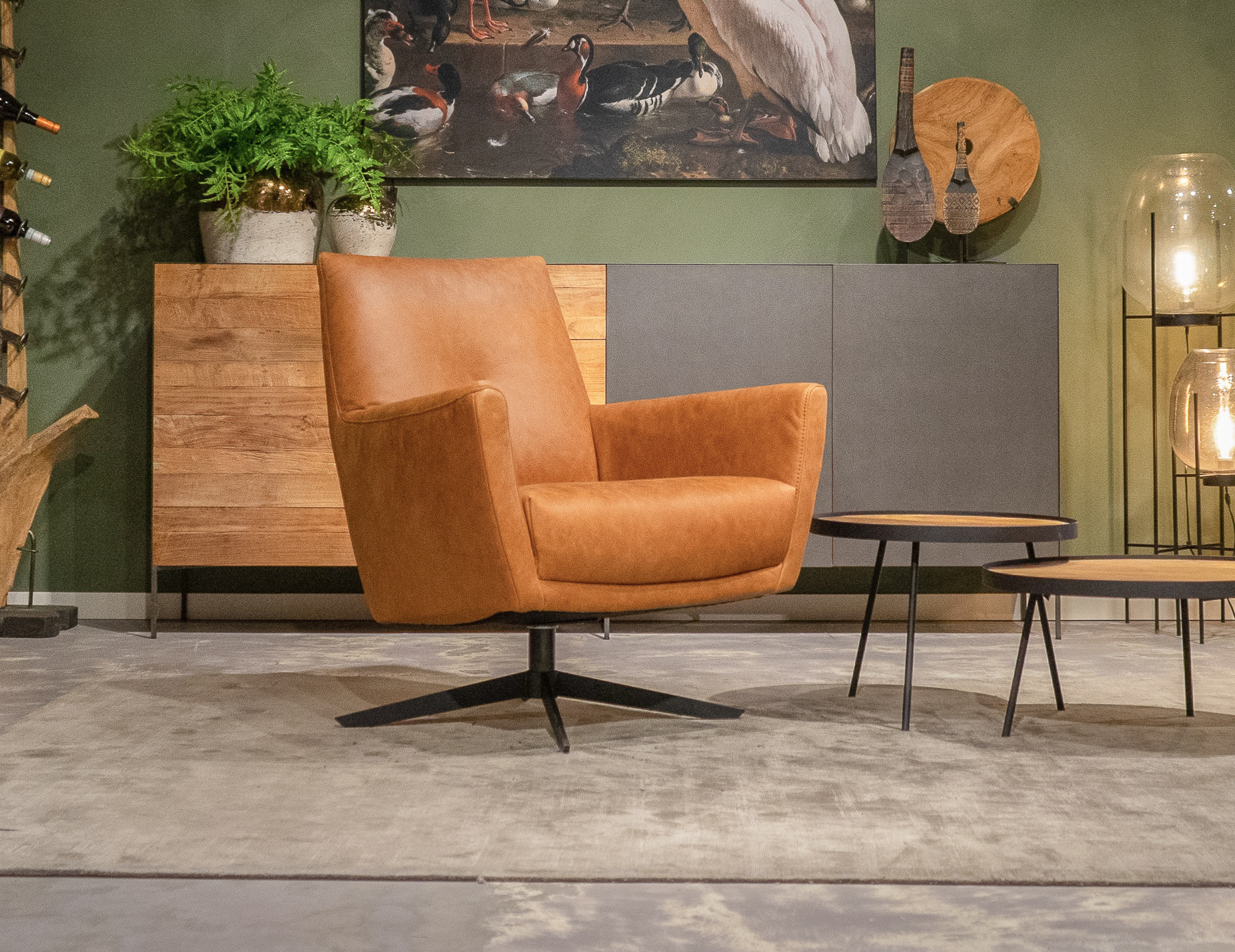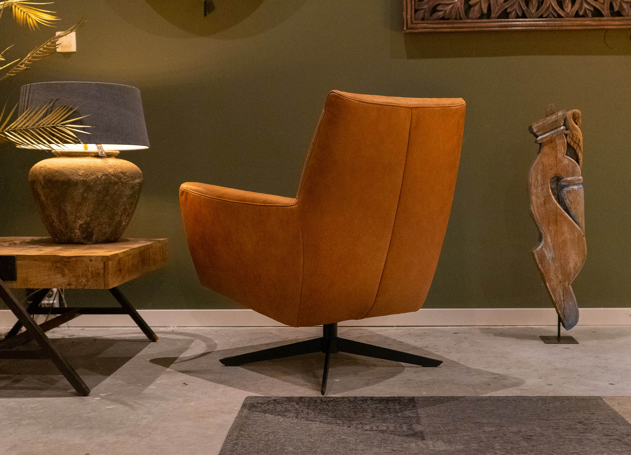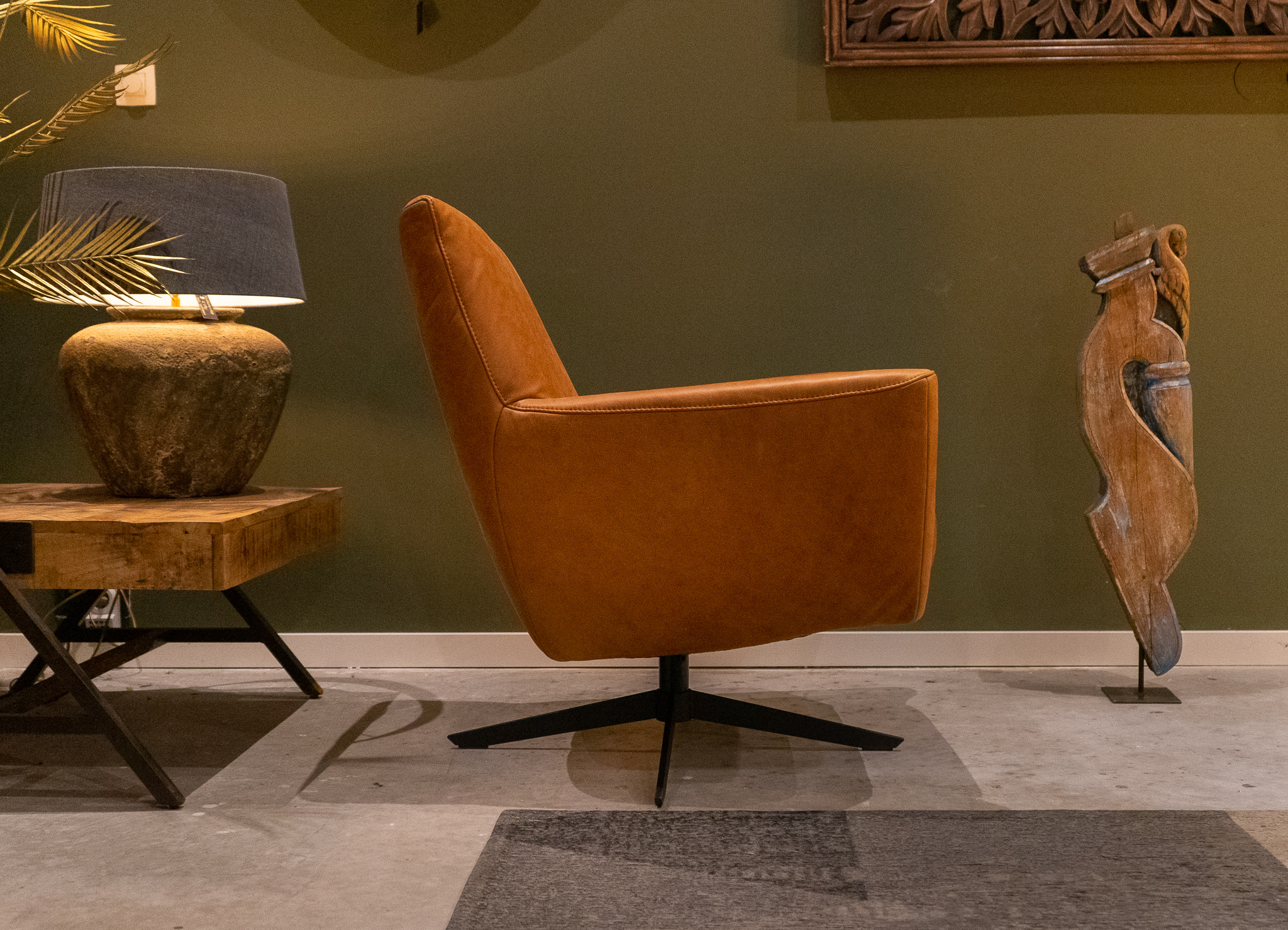 Stoere draaifauteuil leverbaar in leer en stof. Dit model leveren we in diverse kleuren.