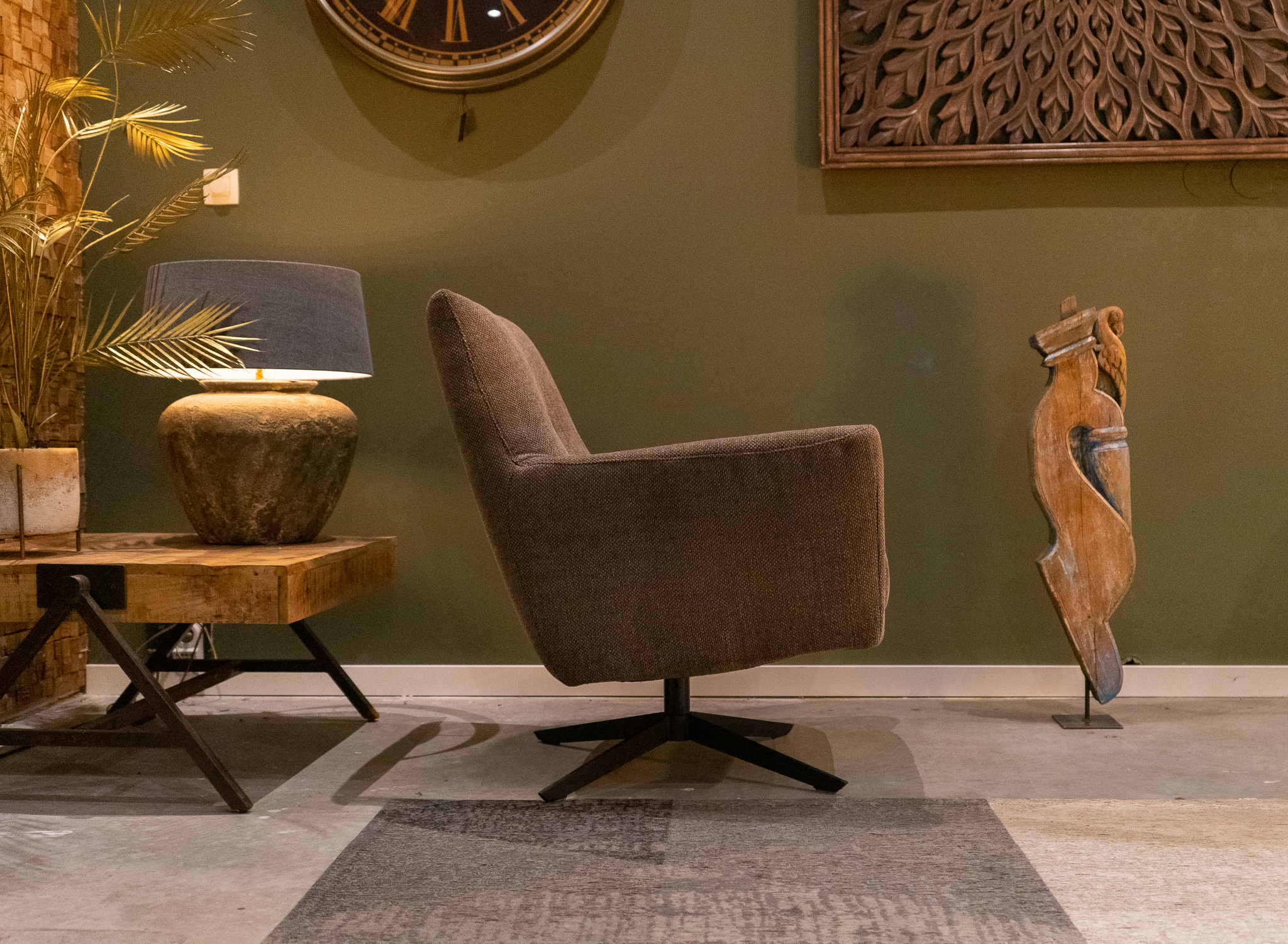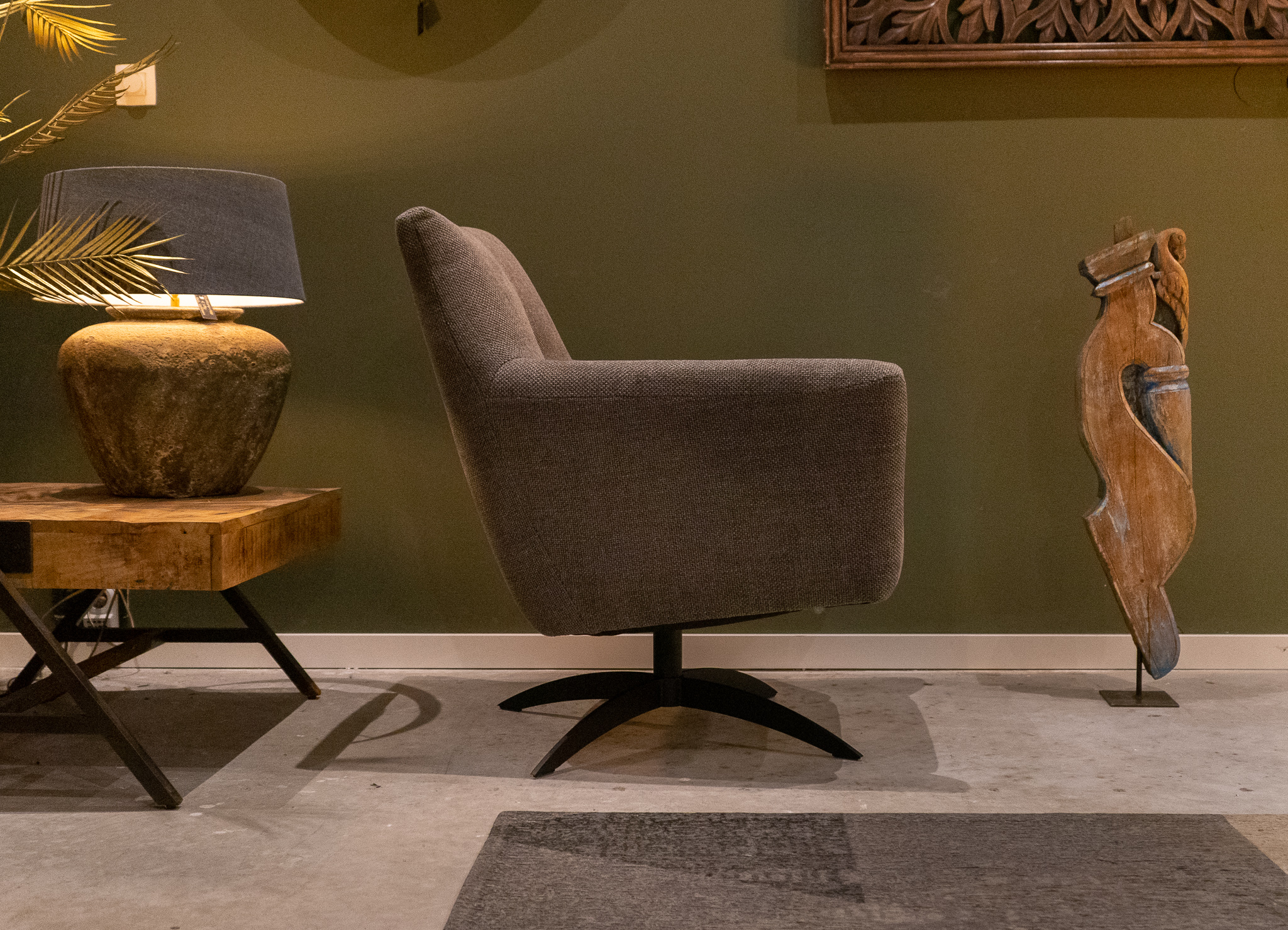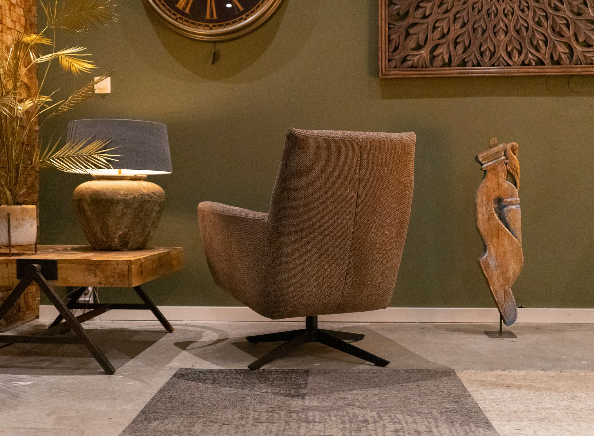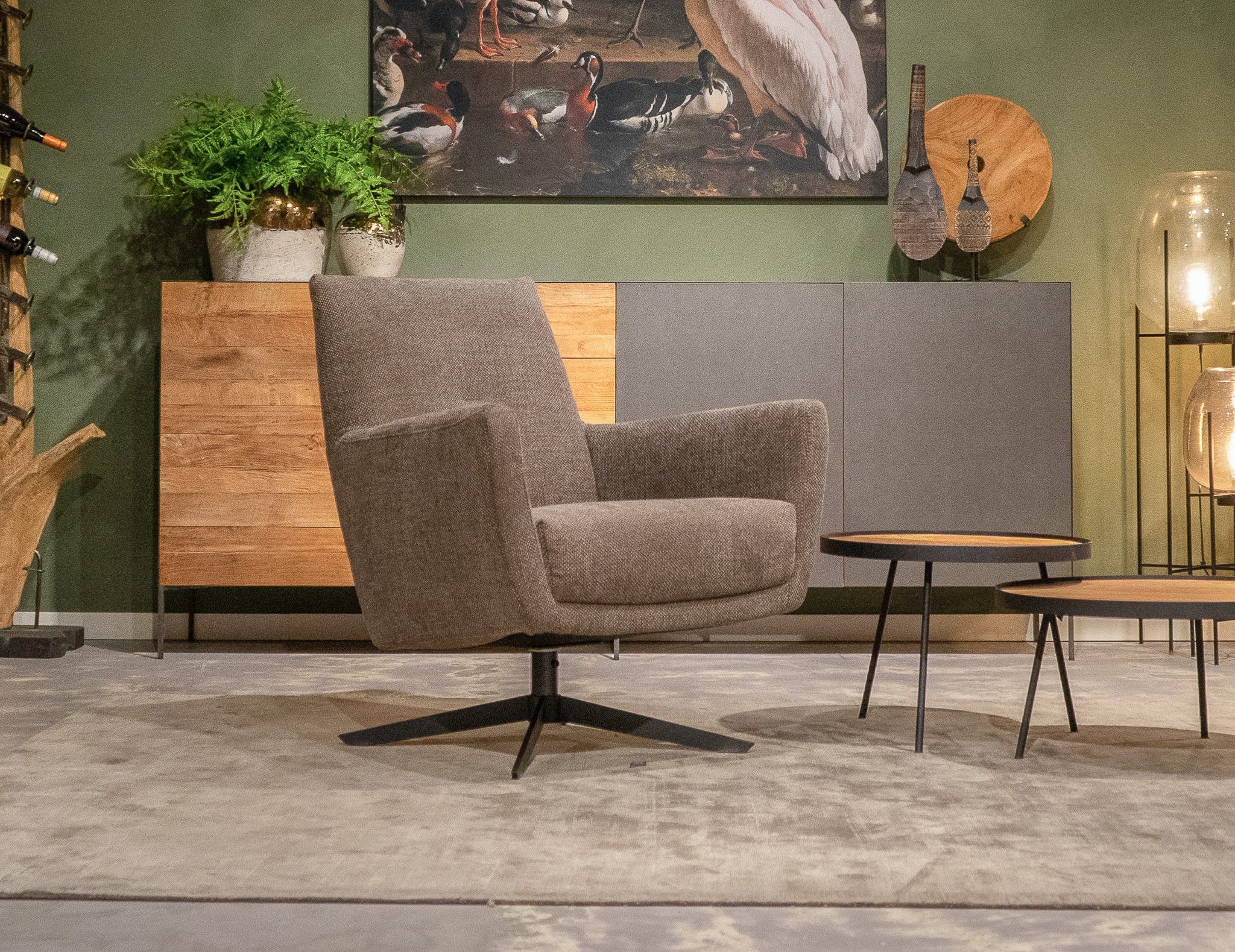 Stoere draaifauteuil leverbaar in leer en stof. Dit model leveren we in diverse kleuren.