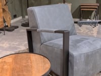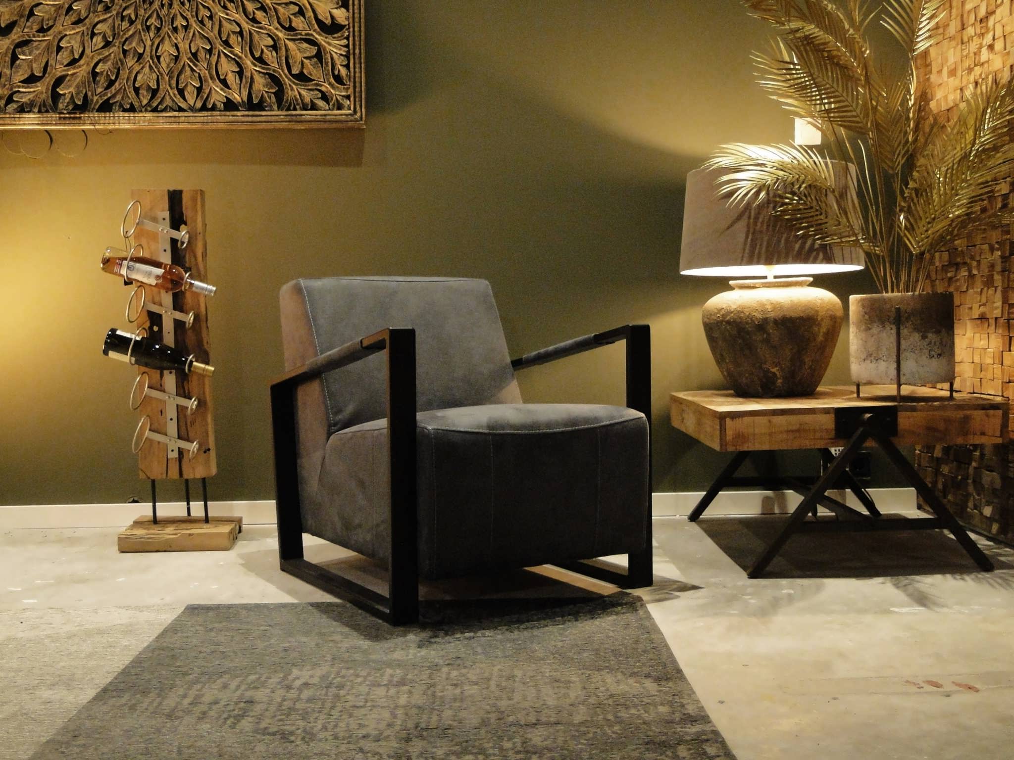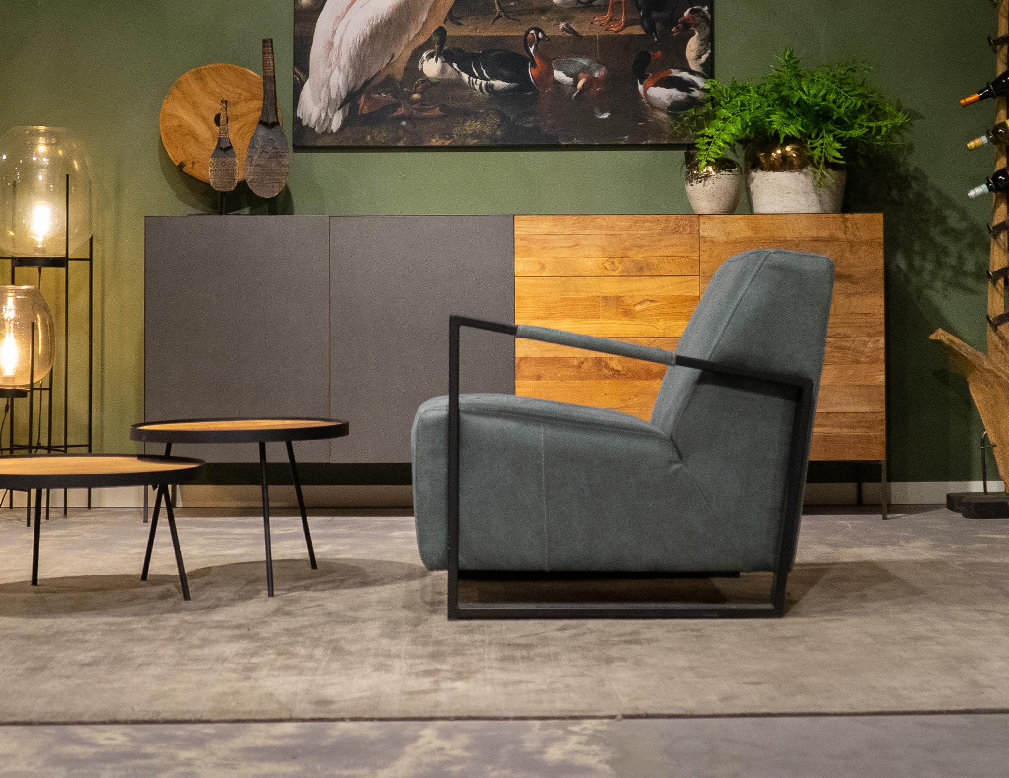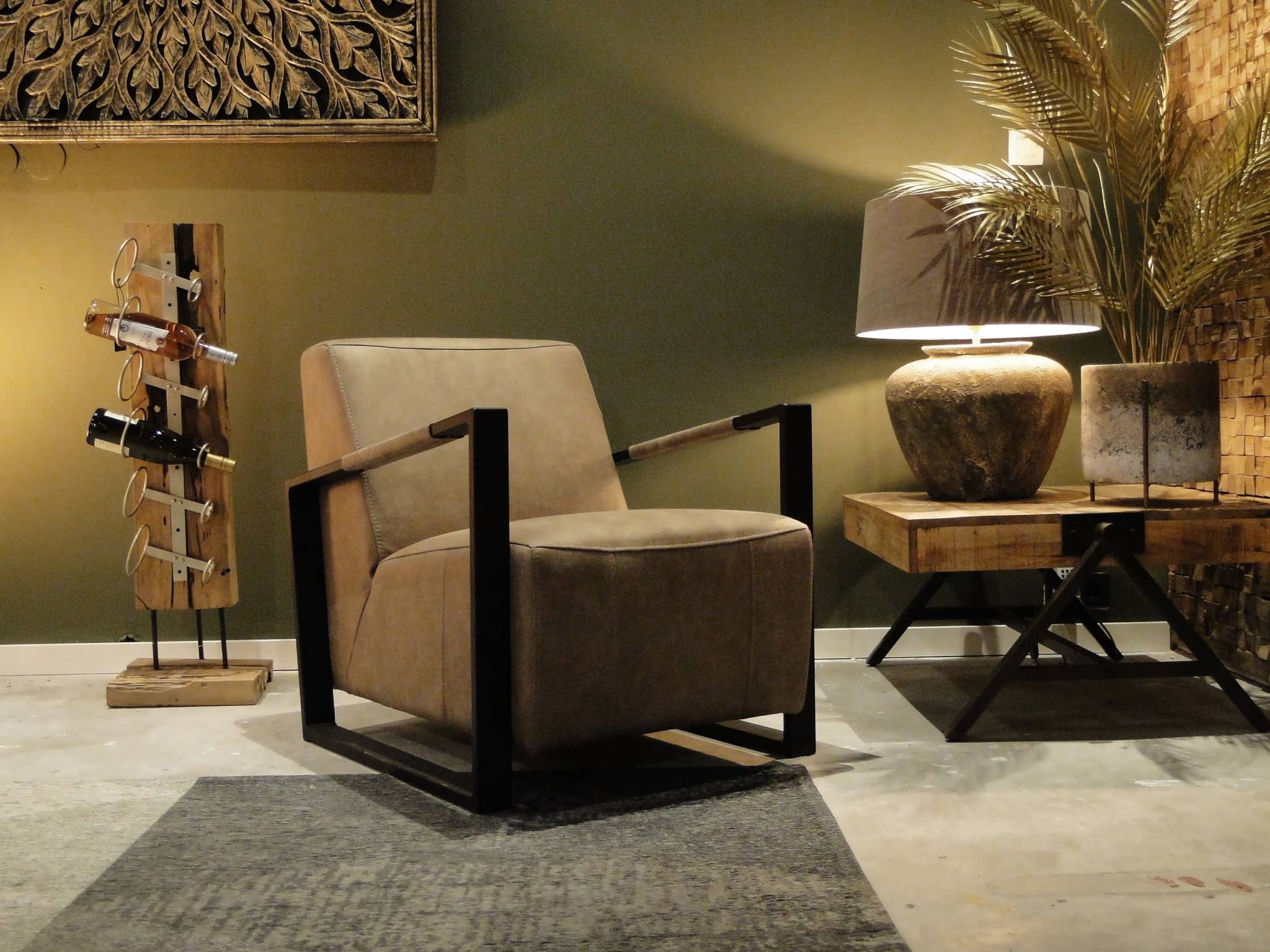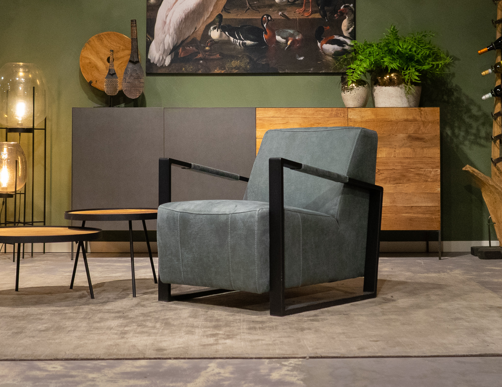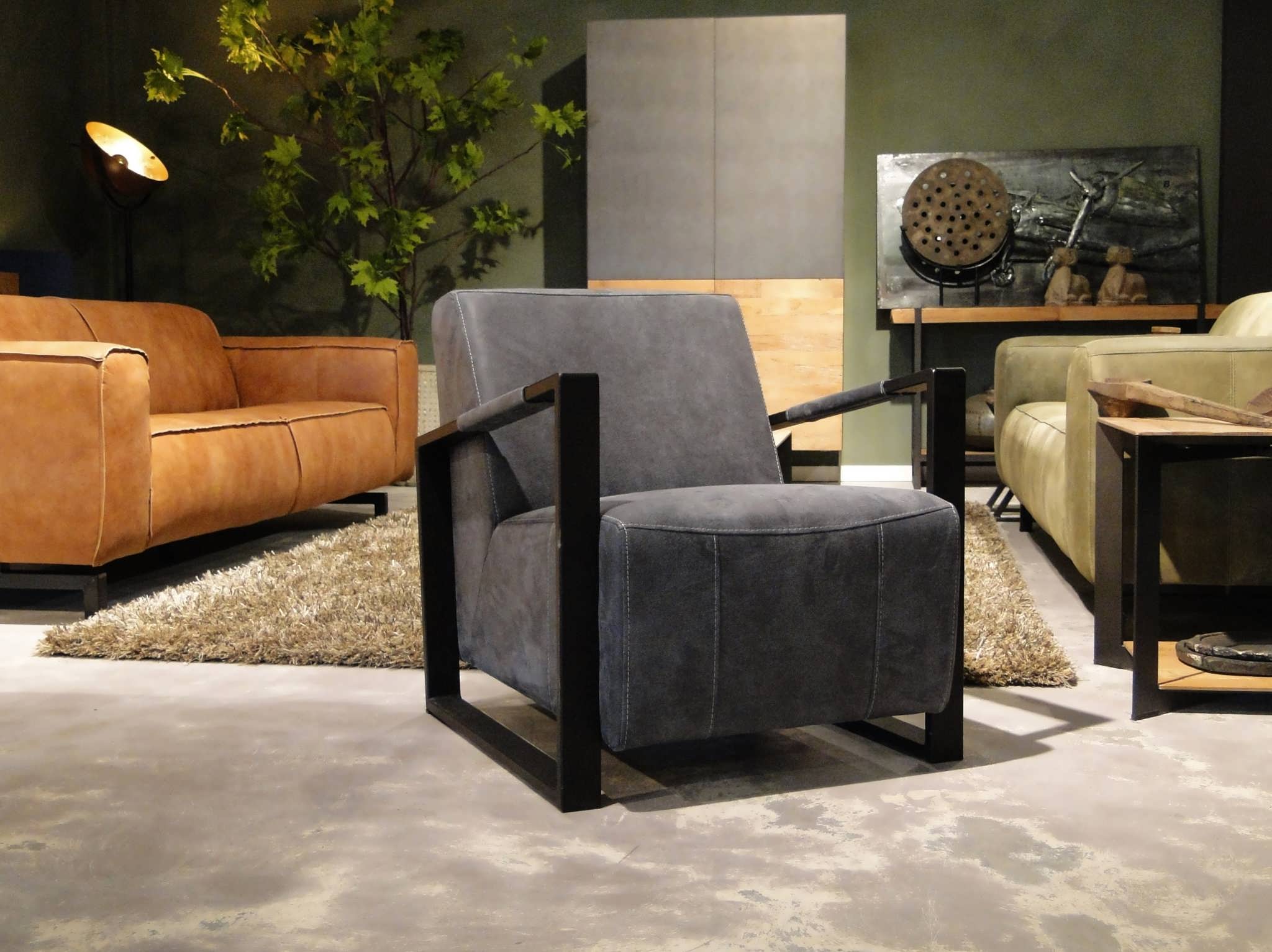 Stoere fauteuil leverbaar in leer en stof. Dit model leveren we in diverse kleuren, met een mooi industrieel onderstel. Qua model nagenoeg gelijk aan onze Mesola, echter is dit model met een zwart gespoten frame.