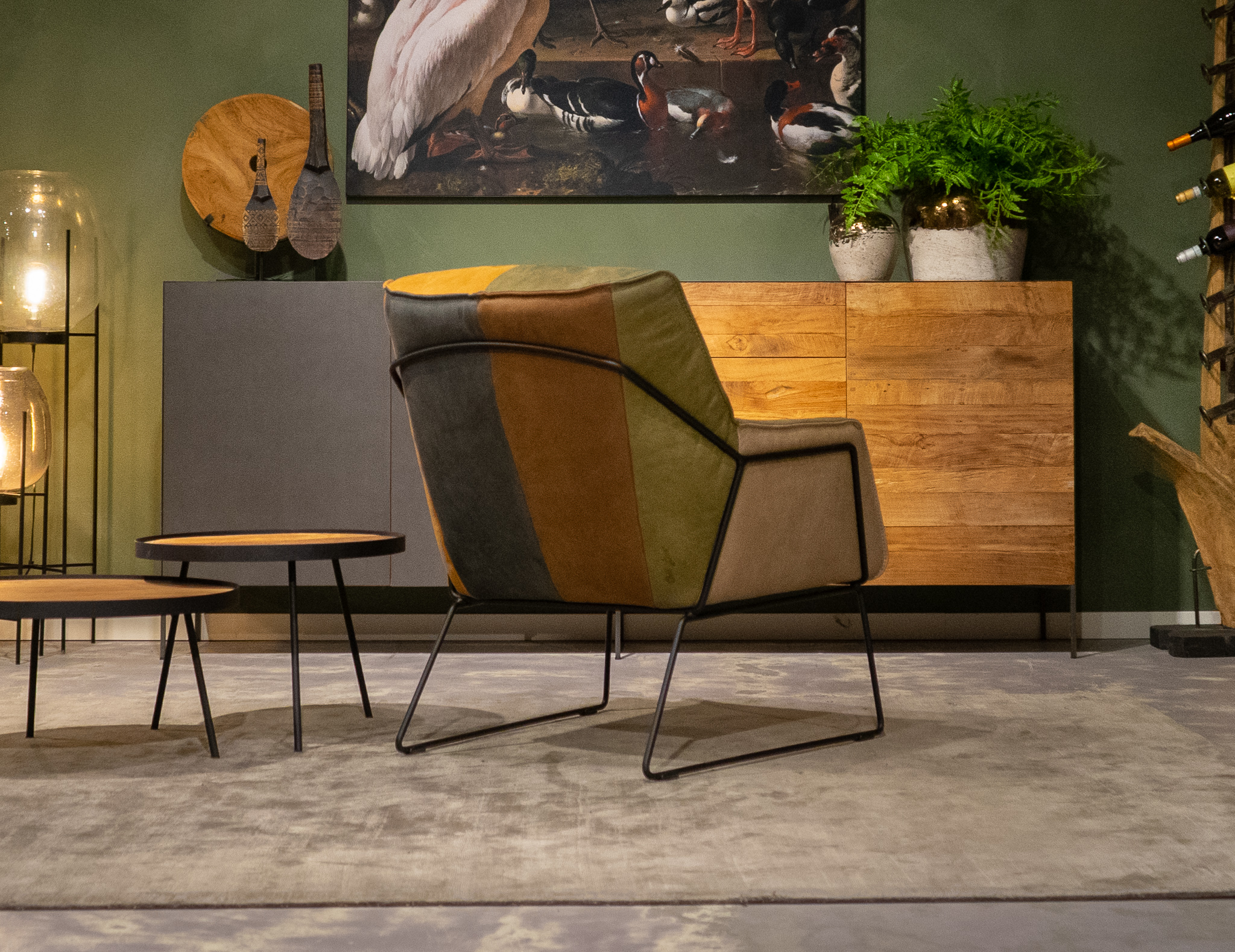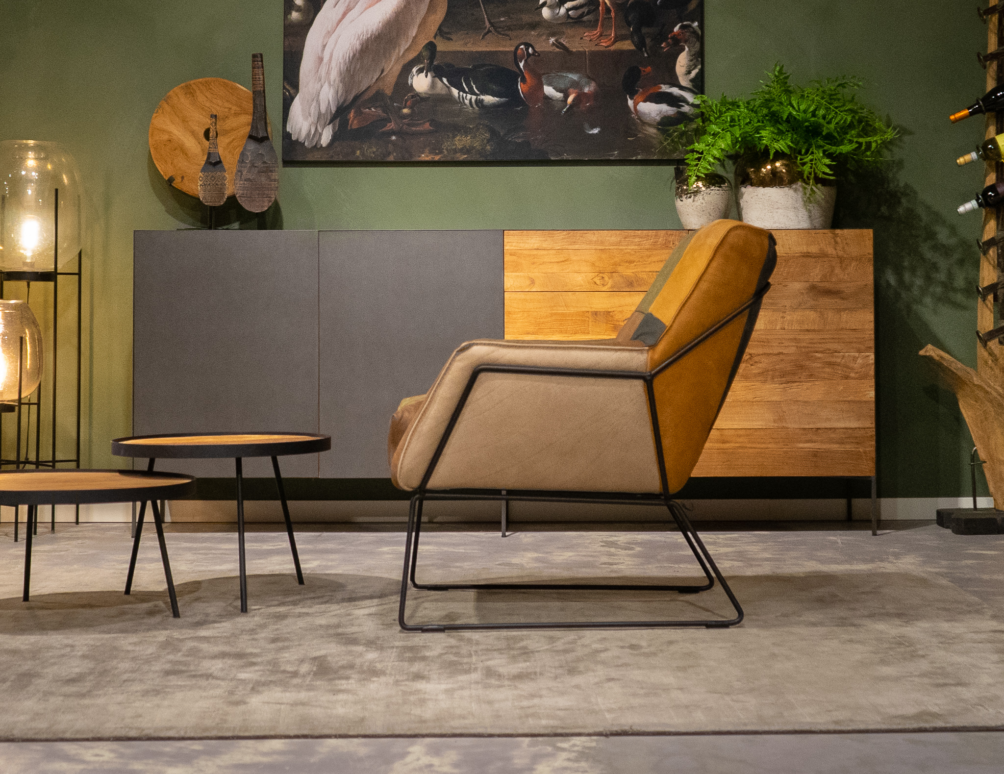Deze fauteuil is leverbaar in 5 warme kleuren leer.