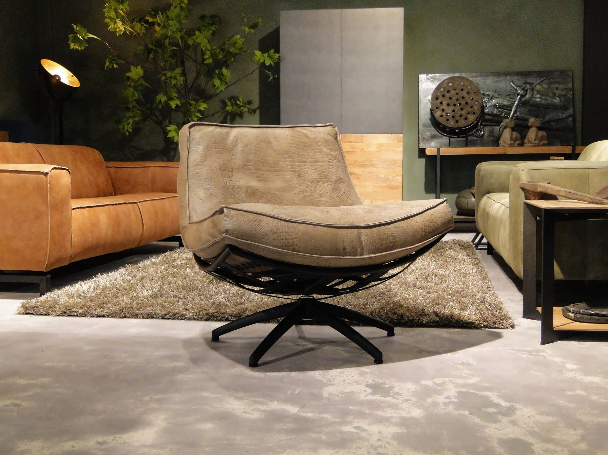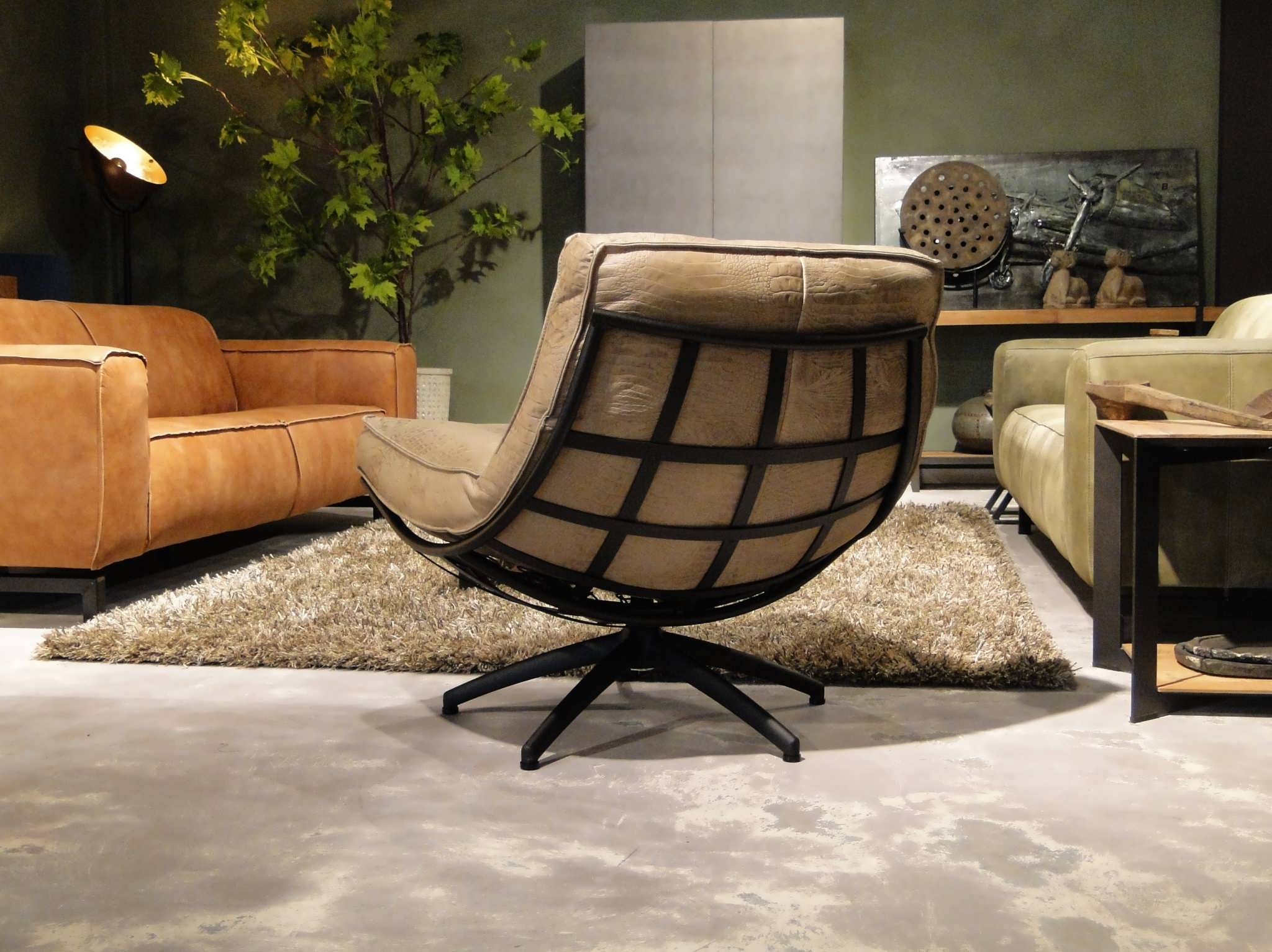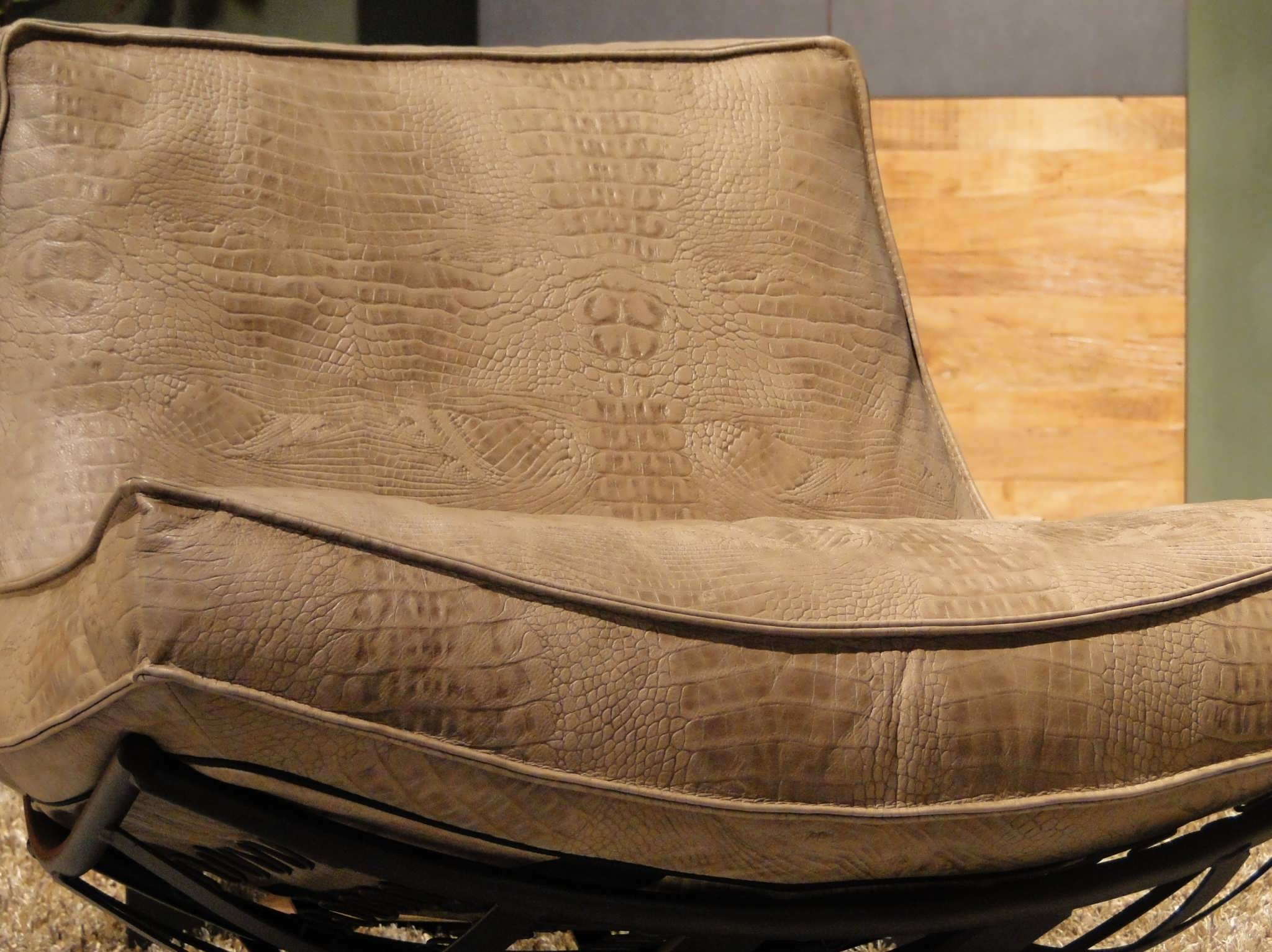 Exclusieve draaifauteuil op stalen draaivoet leverbaar in leer en stof. Dit model leveren we in bijzonder veel uitvoeringen en diverse kleuren. Dit model is leverbaar in caiman leer met een mooie croq print. Gemaakt in Nederland geeft het veel opties, zo is het ook mogelijk om bijvoorbeeld een achterkant in caiman leer en een voorkant in antigo leer te bestellen. Indien er caiman leer op het zitvlak gekozen wordt moet u er rekening mee houden dat de print over tijd zal vervagen.