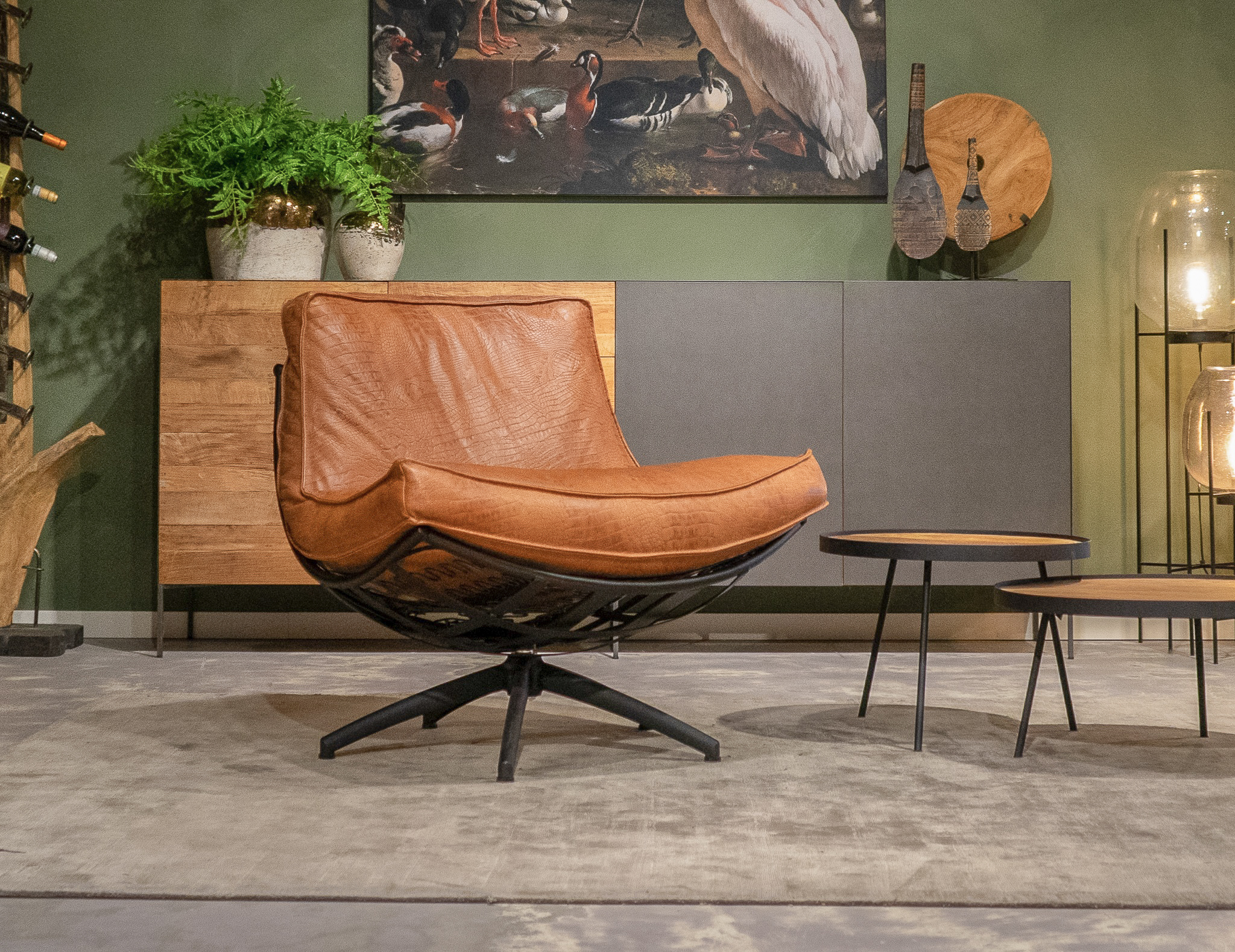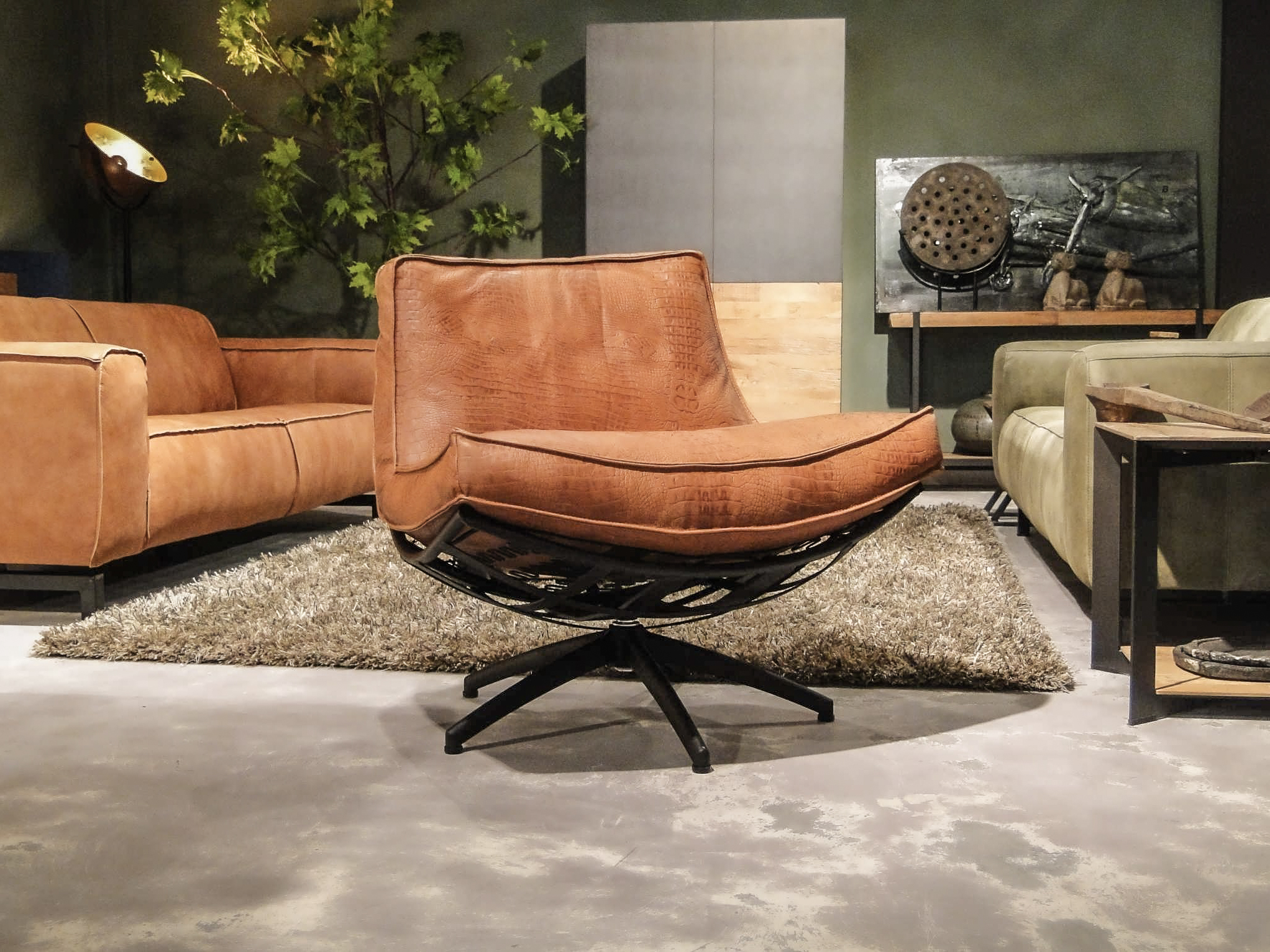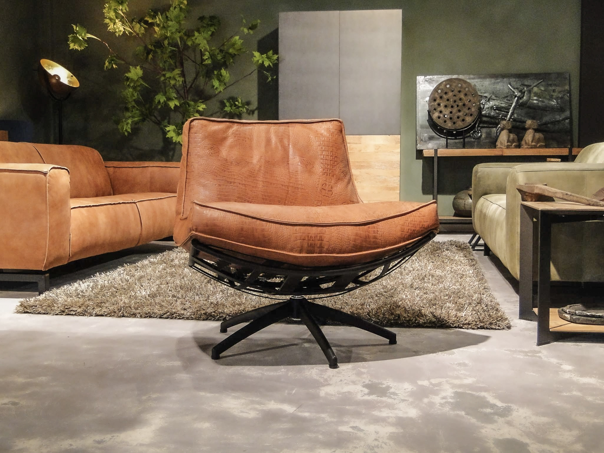 Exclusieve draaifauteuil op stalen draaivoet leverbaar in leer en stof. Dit model leveren we in bijzonder veel uitvoeringen en diverse kleuren. Dit model is leverbaar in caiman leer met een mooie croq print. Gemaakt in Nederland geeft het veel opties, zo is het ook mogelijk om bijvoorbeeld een achterkant in caiman leer en een voorkant in antigo leer te bestellen. Indien er caiman leer op het zitvlak gekozen wordt moet u er rekening mee houden dat de print over tijd zal vervagen.
