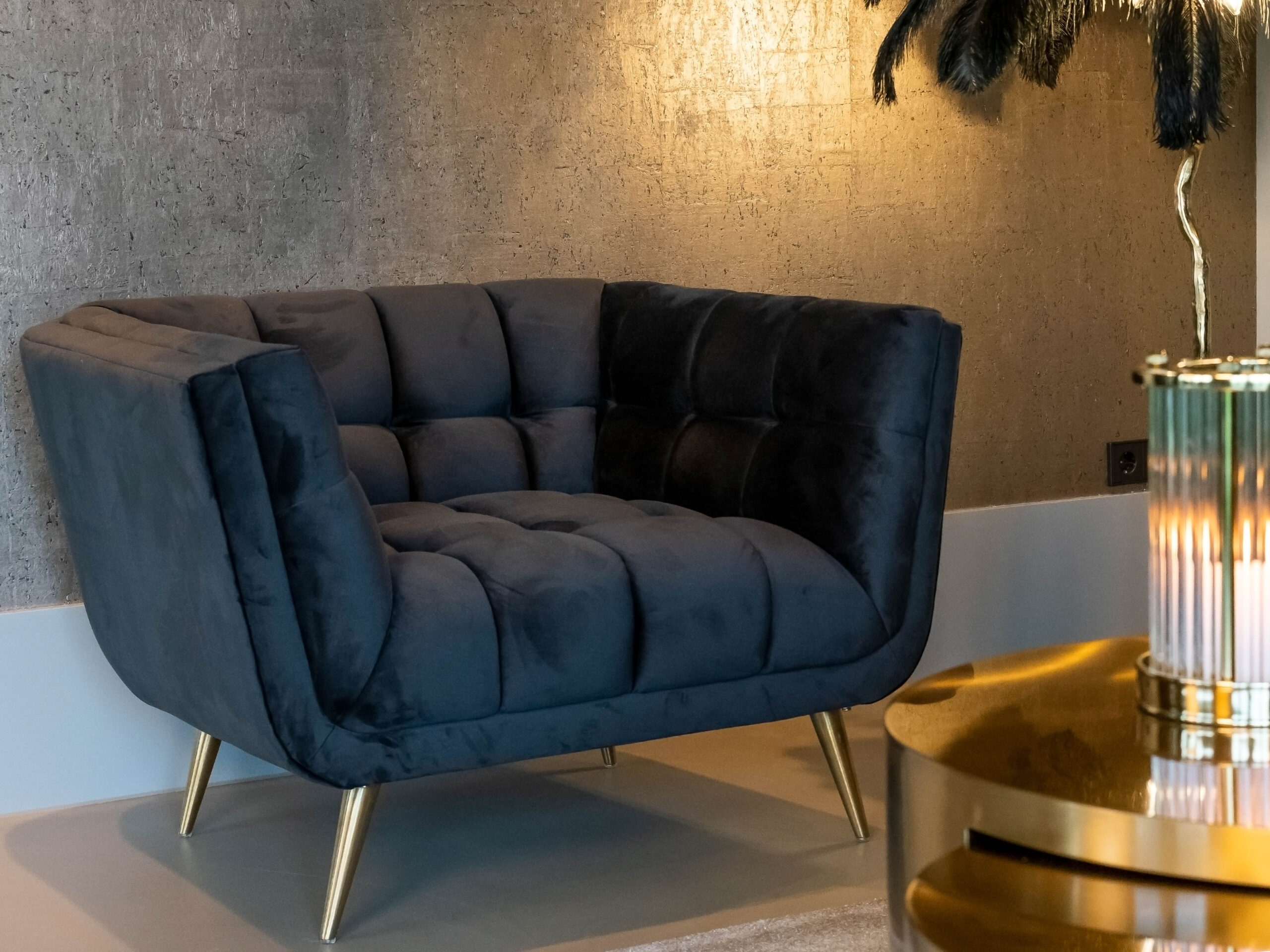 Deze prachtige fauteuil Sheffield zit net zo luxe als het design doet vermoeden. Deze robuuste loveseat heeft bevat een dikke laag schuim wat zorgt voor een optimaal zitcomfort. Dit in combinatie met de zachte stof zorgt ervoor dat u wel de hele dag zou willen blijven zitten! De gouden poten geven elk van de kleurvarianten een zeer luxe uitstraling.