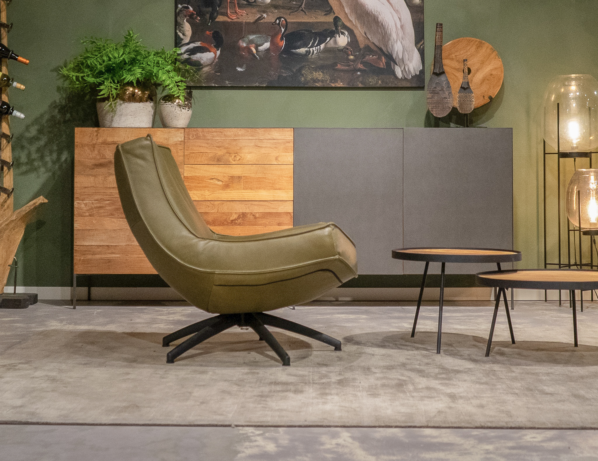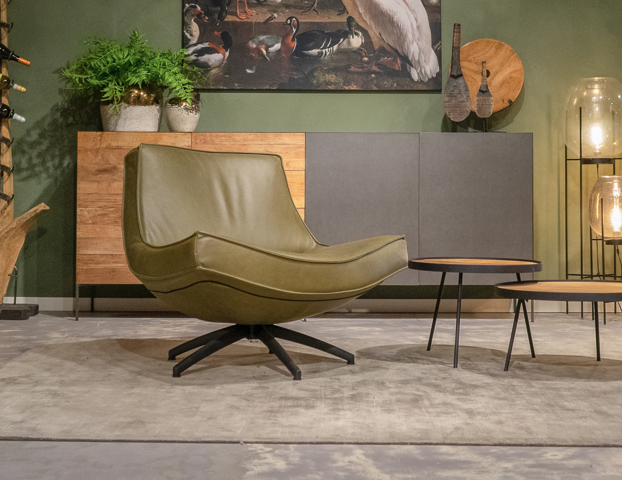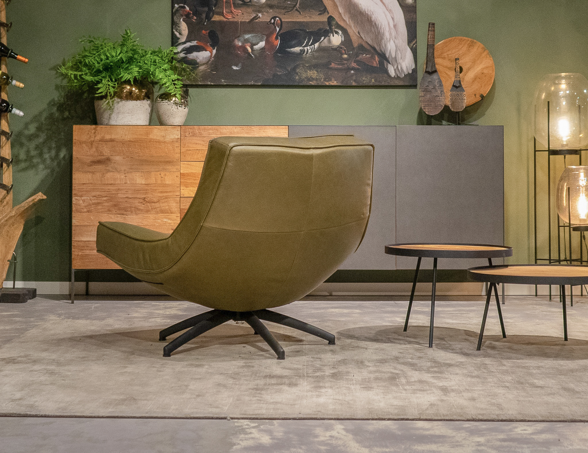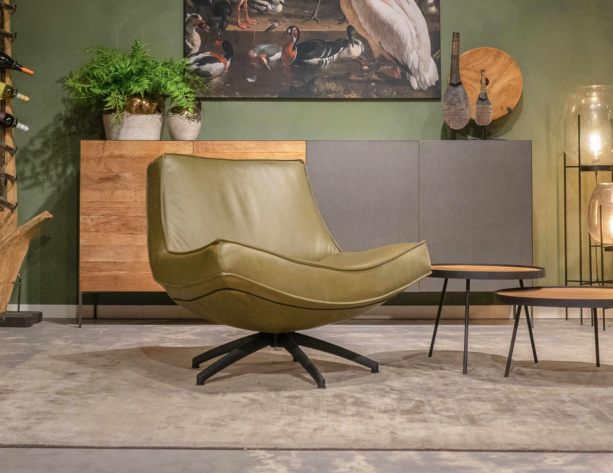 Exclusieve draaifauteuil op stalen draaivoet leverbaar in leer en stof. Dit model leveren we in bijzonder veel uitvoeringen en diverse kleuren. Dit model is leverbaar in caiman leer met een mooie croq print. Gemaakt in Nederland geeft het veel opties, zo is het ook mogelijk om bijvoorbeeld een achterkant in caiman leer en een voorkant in antigo leer te bestellen. Indien er caiman leer op het zitvlak gekozen wordt moet u er rekening mee houden dat de print over tijd zal vervagen.