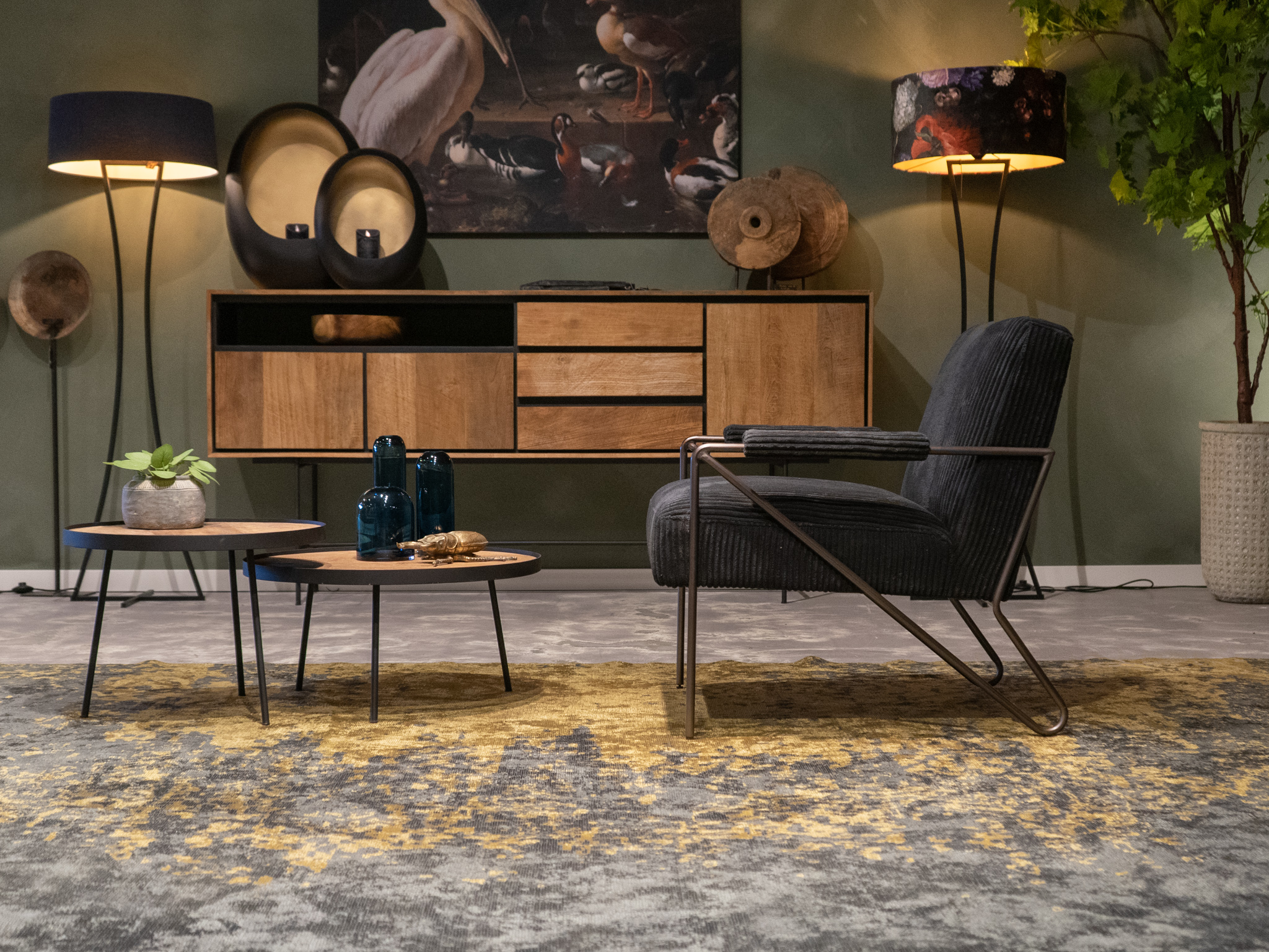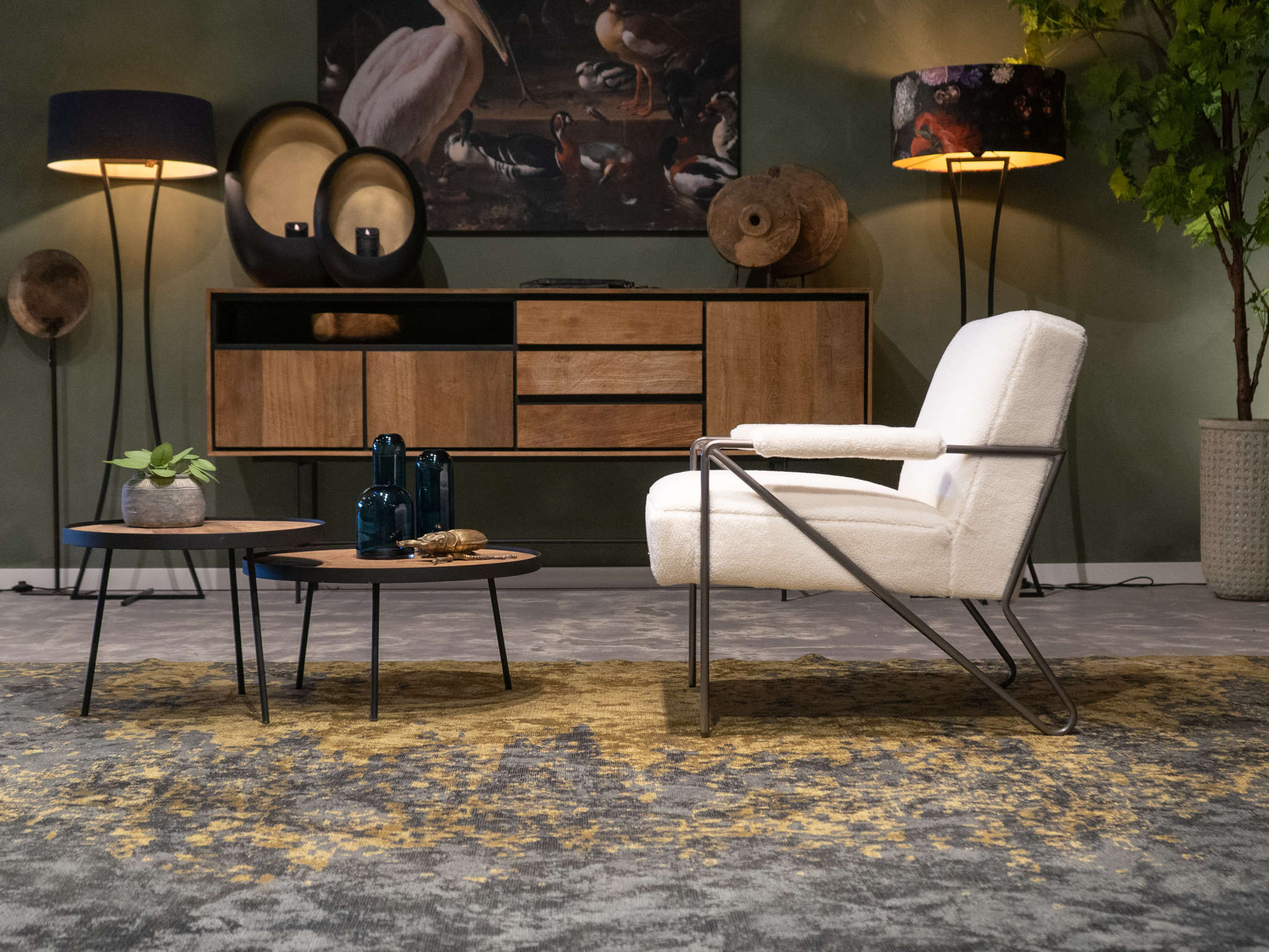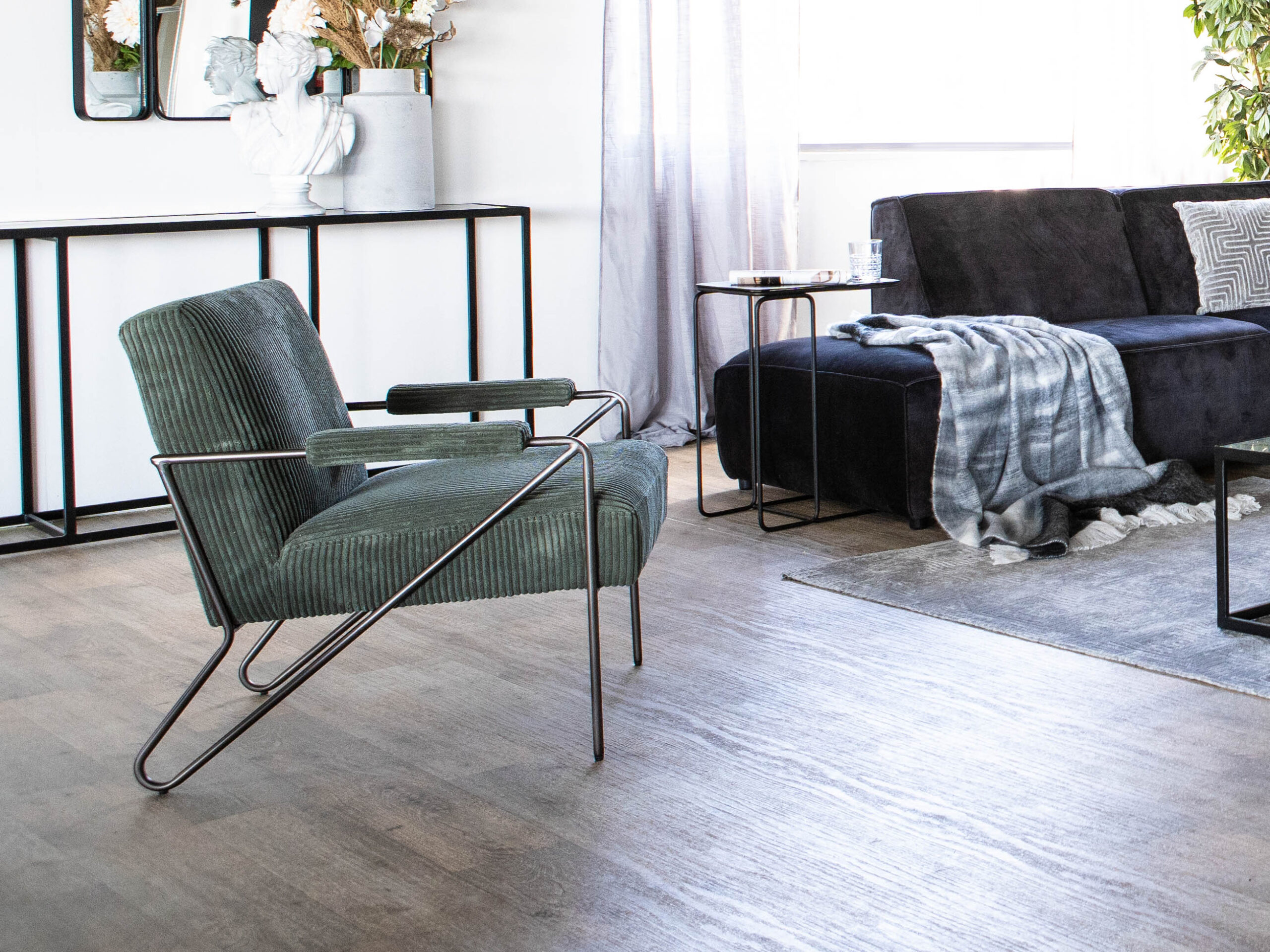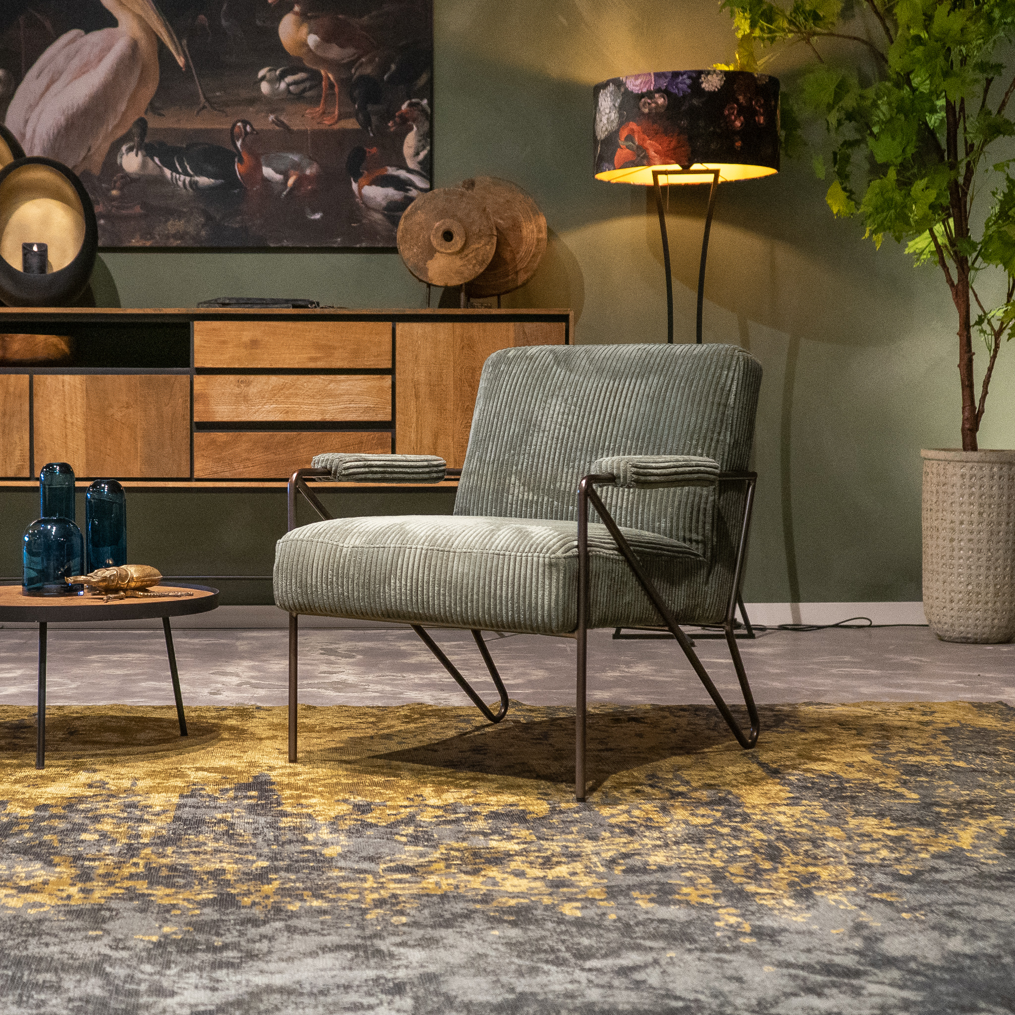 Stoere industriële fauteuil Wellington met heerlijk zachte bekleding. Deze robuuste stoel heeft een mooi rank onderstel gemaakt van staal. De unieke vorm van de poten zorgen ervoor dat dit een echte eyecatcher is voor in de woonkamer! Dankzij deze zachte stofkeuze is de fauteuil perfect om lekker in weg te kruipen en een boekje te lezen of een film te kijken.