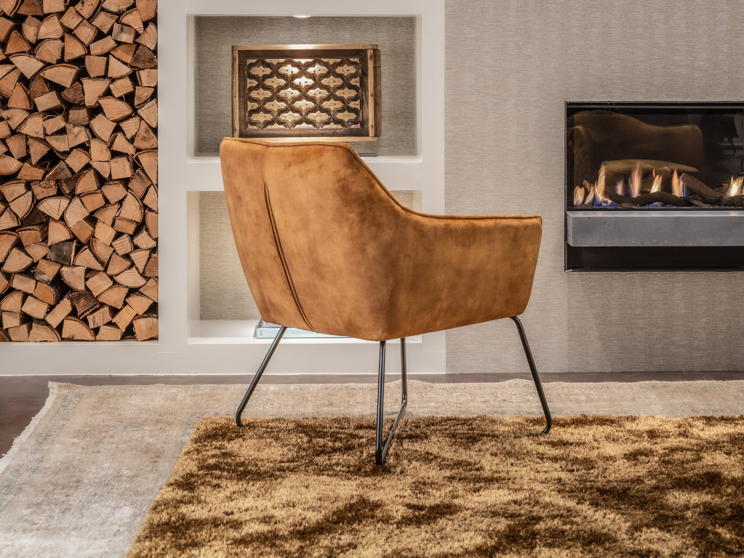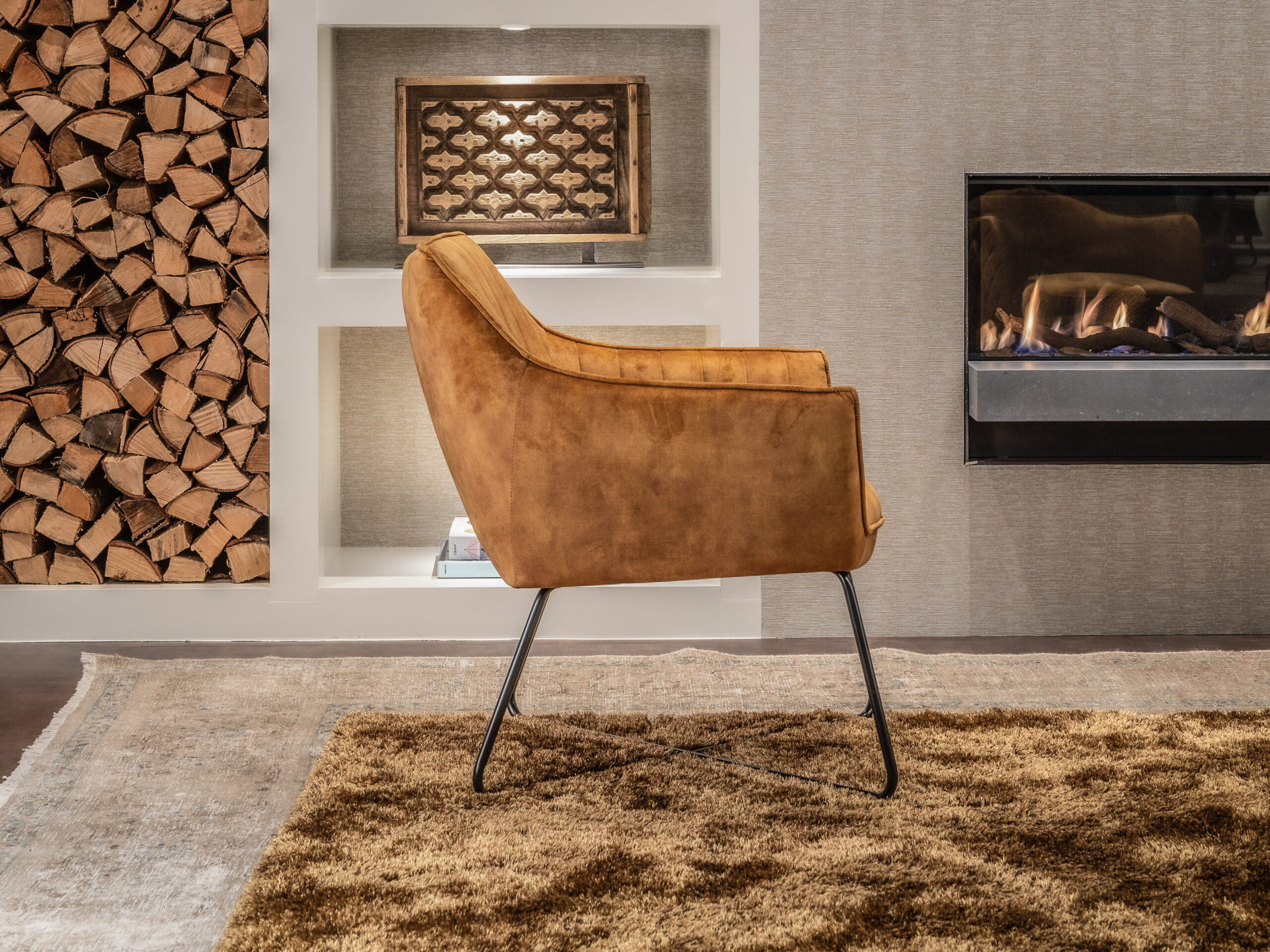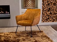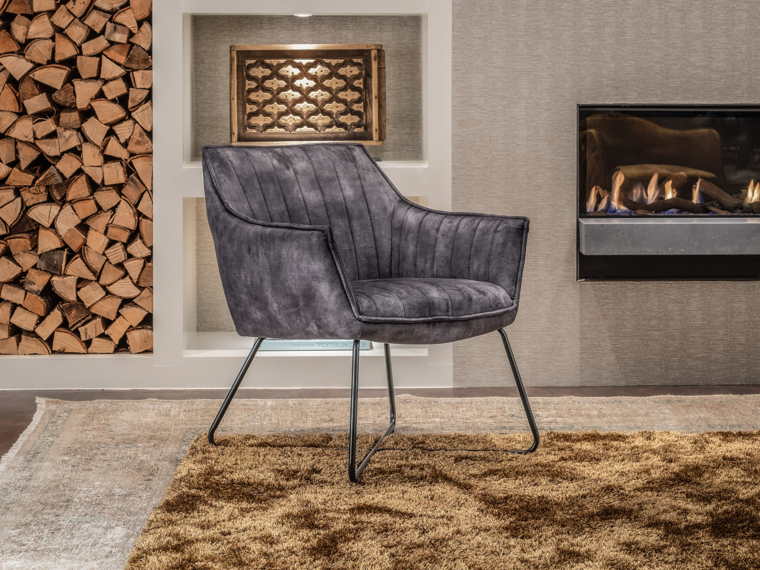 Ranke industriële fauteuil Windsor met heerlijk zachte velvet bekleding ook wel velours genoemd. Het ranke frame geeft de fauteuil een erg luchtig en chique effect. De zitting van deze fauteuil bevat een dikke laag polyetherschuim wat zorgt voor een optimaal zitcomfort. In deze stoel loopt de rugleuning mooi door in armleuningen. Het onderstel is gemaakt van metaal waarbij de frames elkaar onderaan kruisen en de stoel zijn elegante look krijgt.