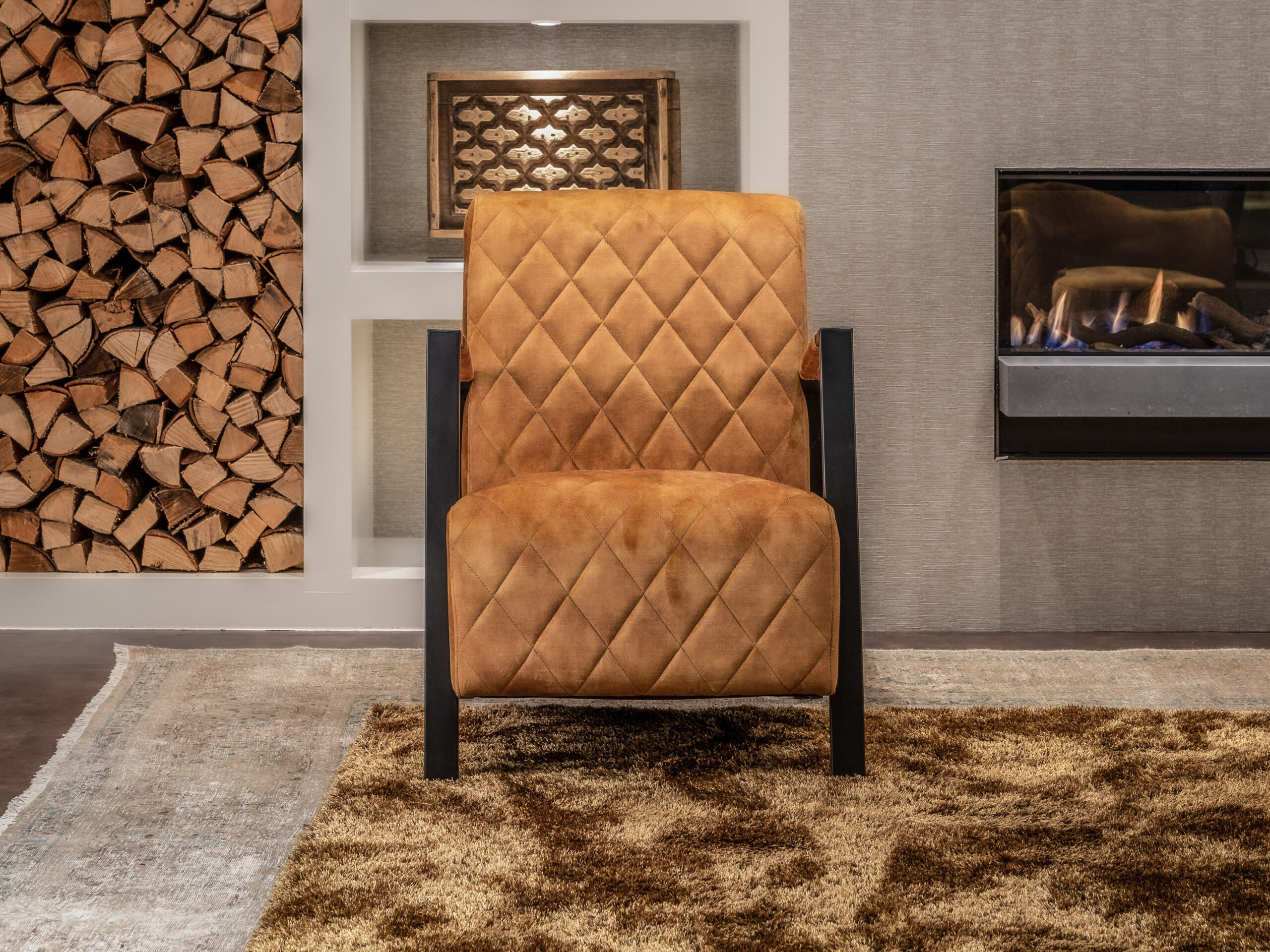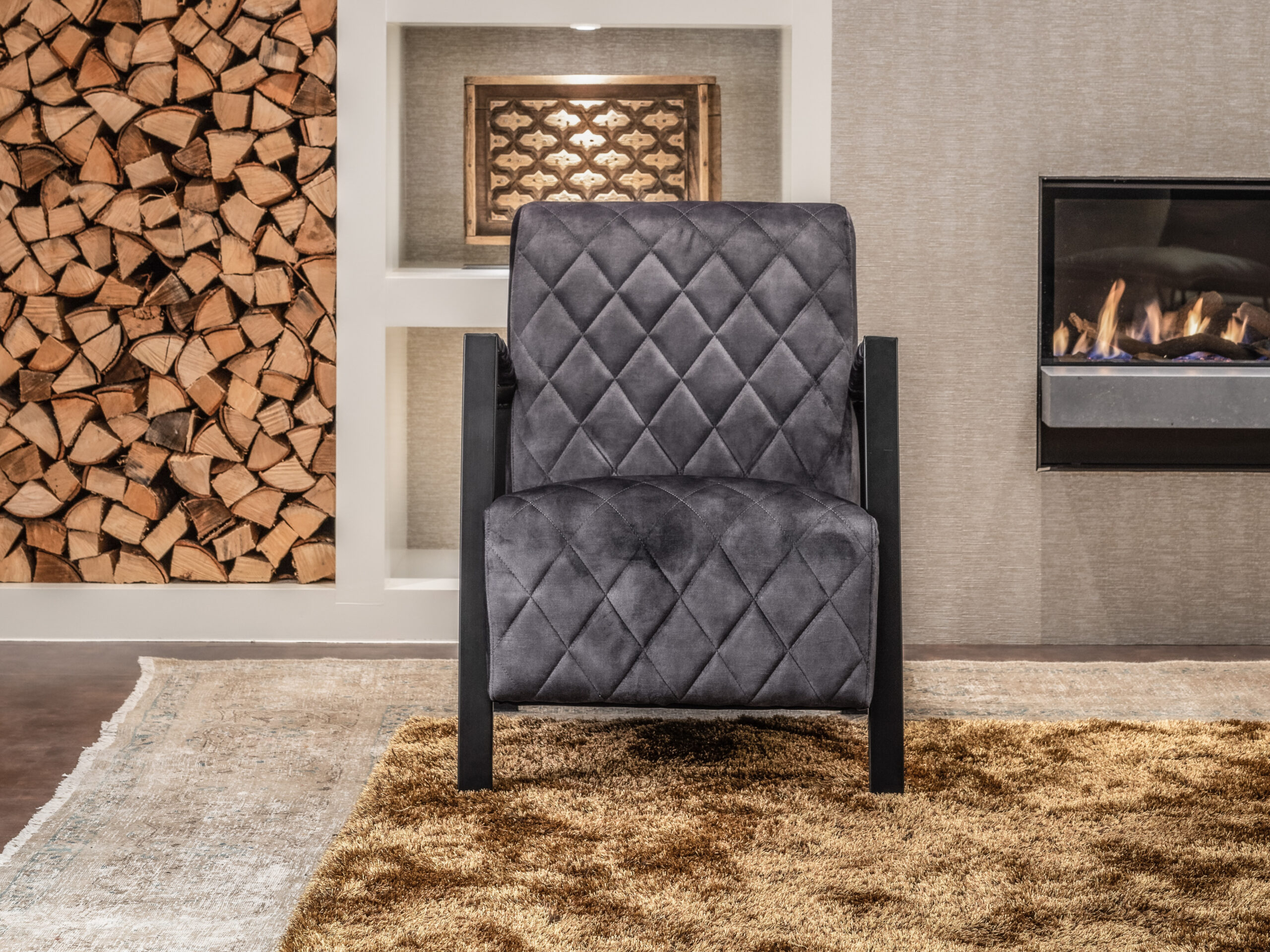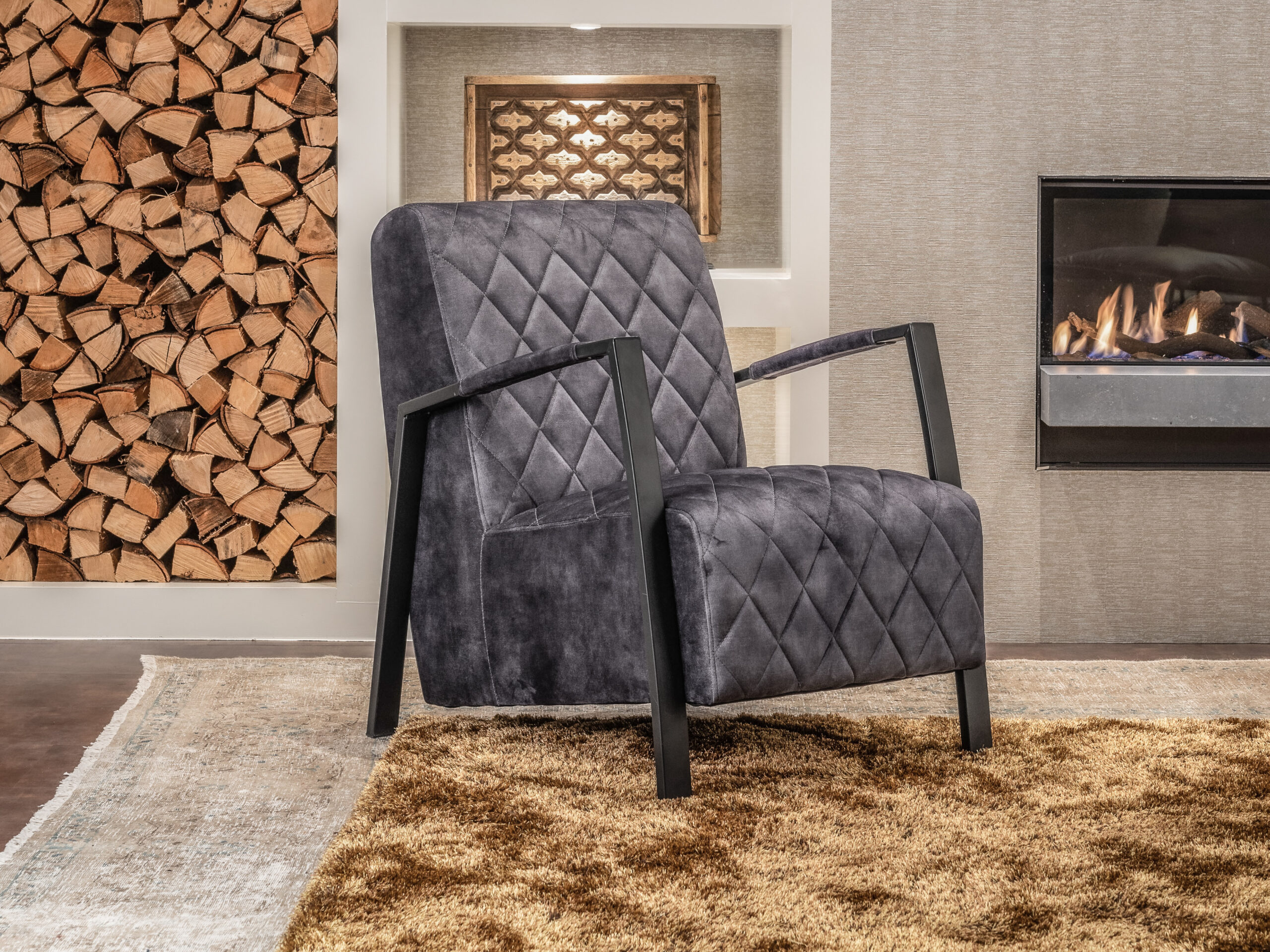 Robuuste en industriële fauteuil Winnipeg met heerlijk zachte velvet bekleding met chique ruitdesign. De fijne zitting, armleuningen en rugleuning bieden u een uitstekend zitcomfort. Het frame bestaat uit twee platte stalen buizen die in een geheel de poten en armleuning vormen. Dit geeft Winnipeg zijn eigen stoere, industriële vormgeving!