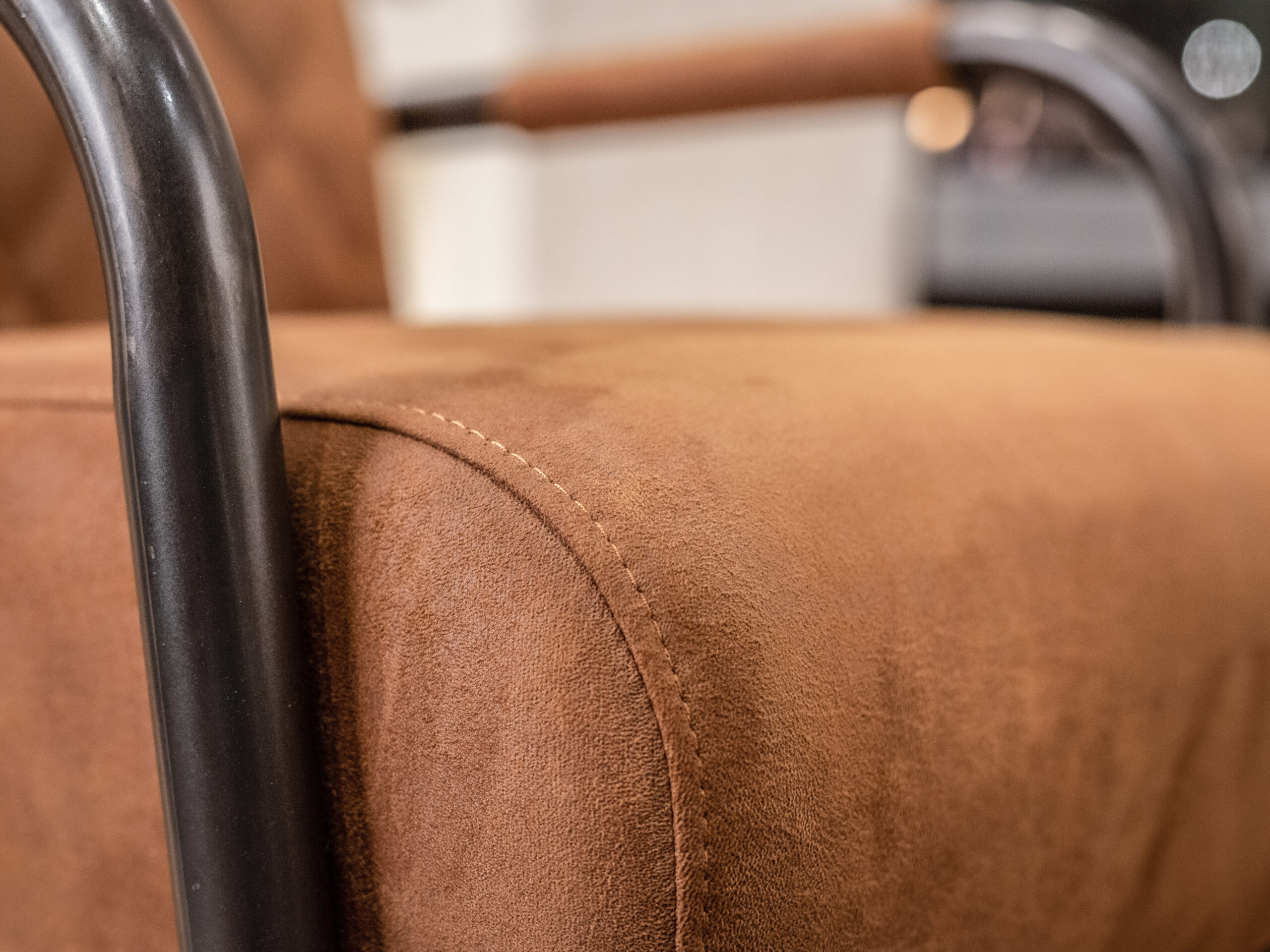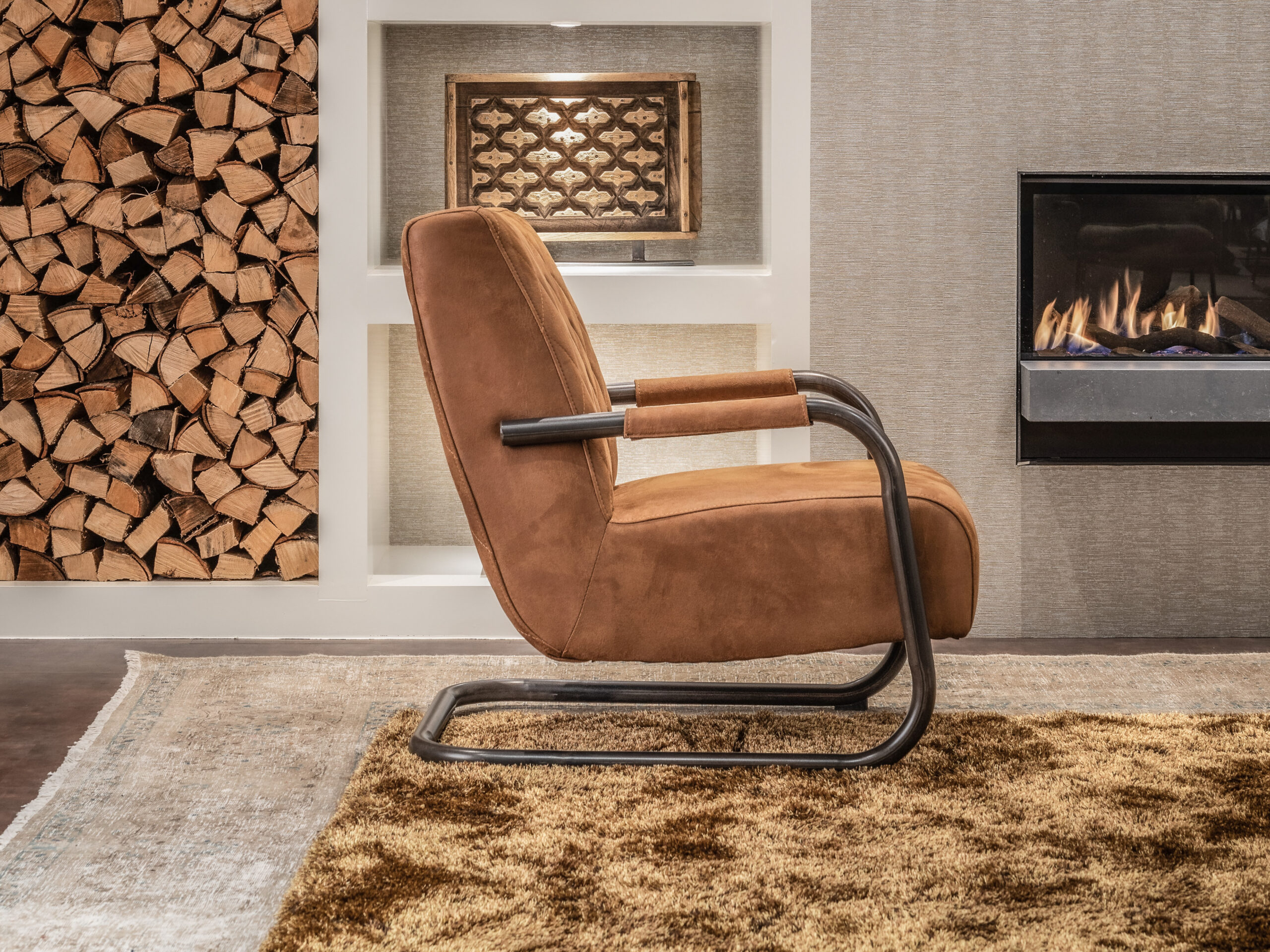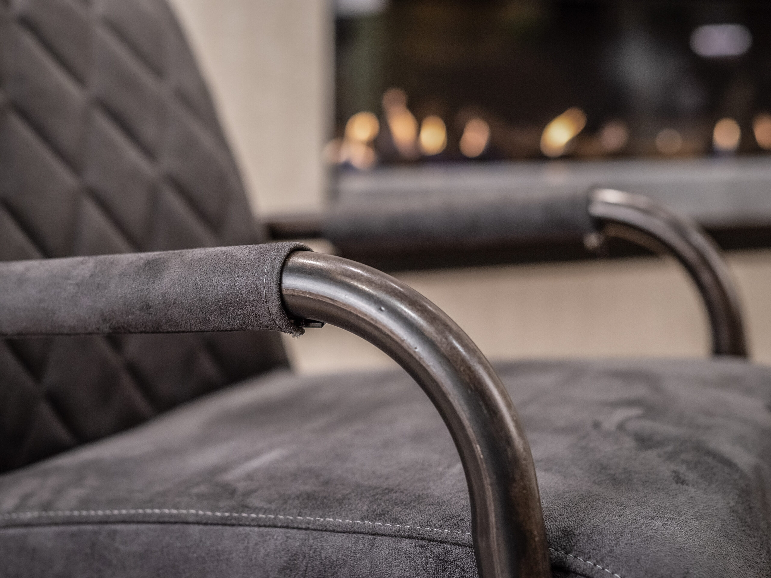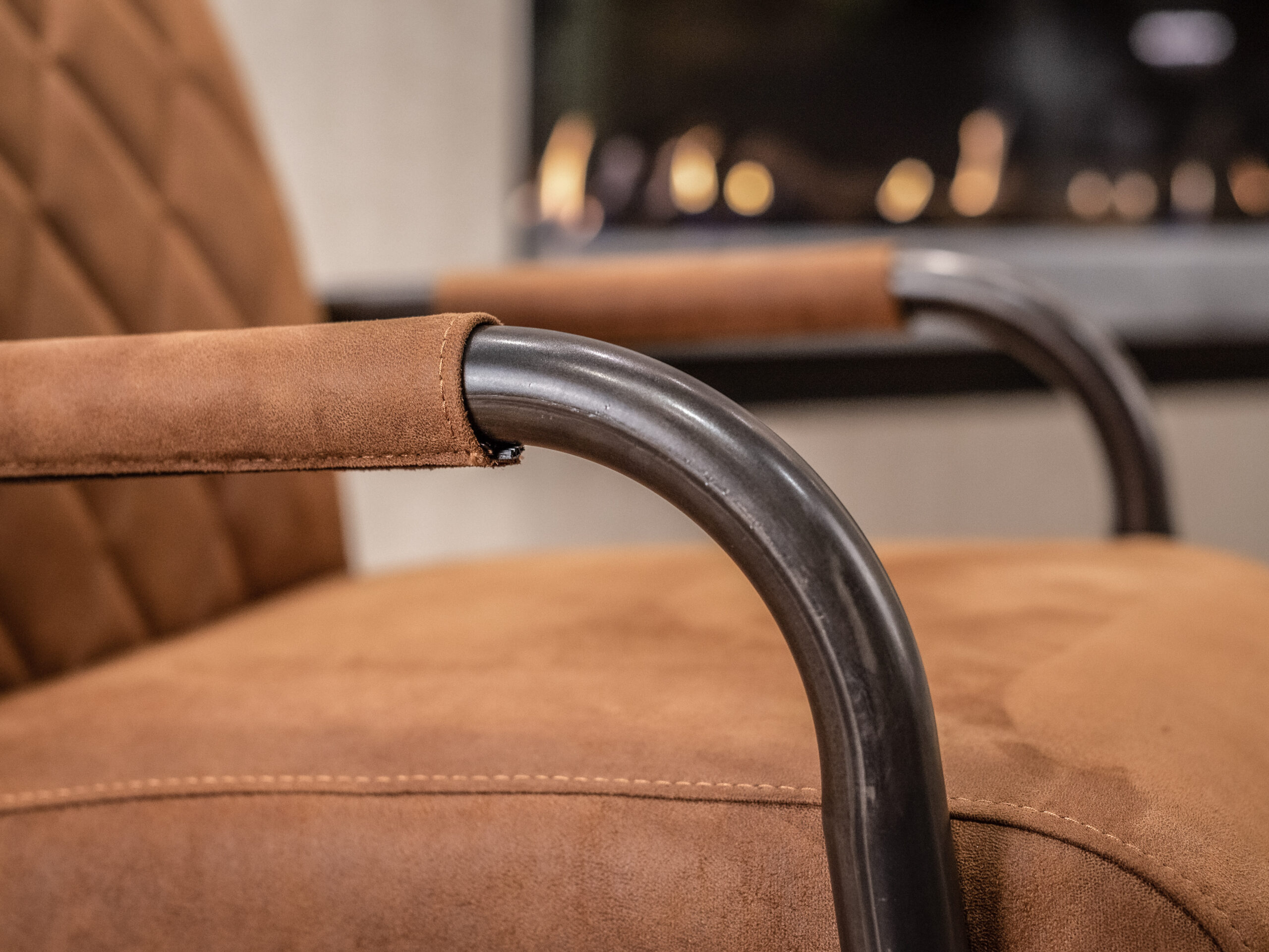 De armleuningen hebben mooie leren accenten met hetzelfde bull eco leder als de kussens. Het is een duurzame stof die goed combineert met andere materialen en heel goed past binnen een industrieel interieur. De Caledon heeft een comfortabele zitting en rugleuning voor een heerlijk zitcomfort. Doorgaans is deze stoel direct uit voorraad leverbaar in alle kleuren!