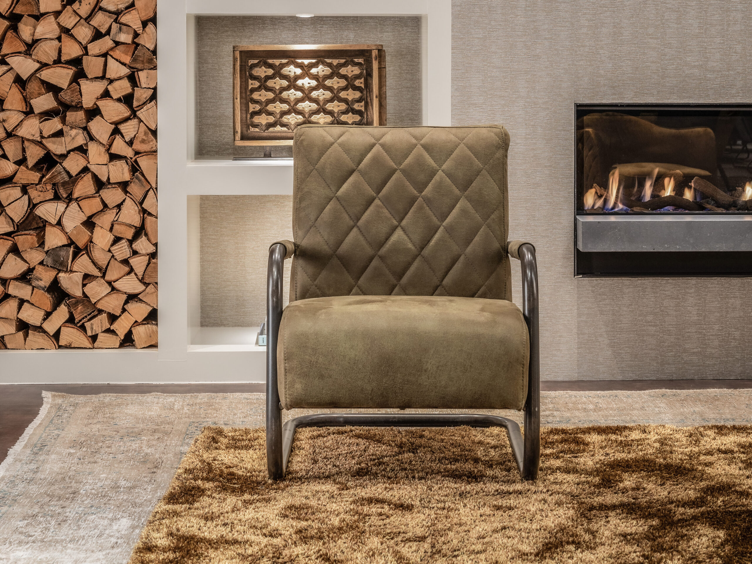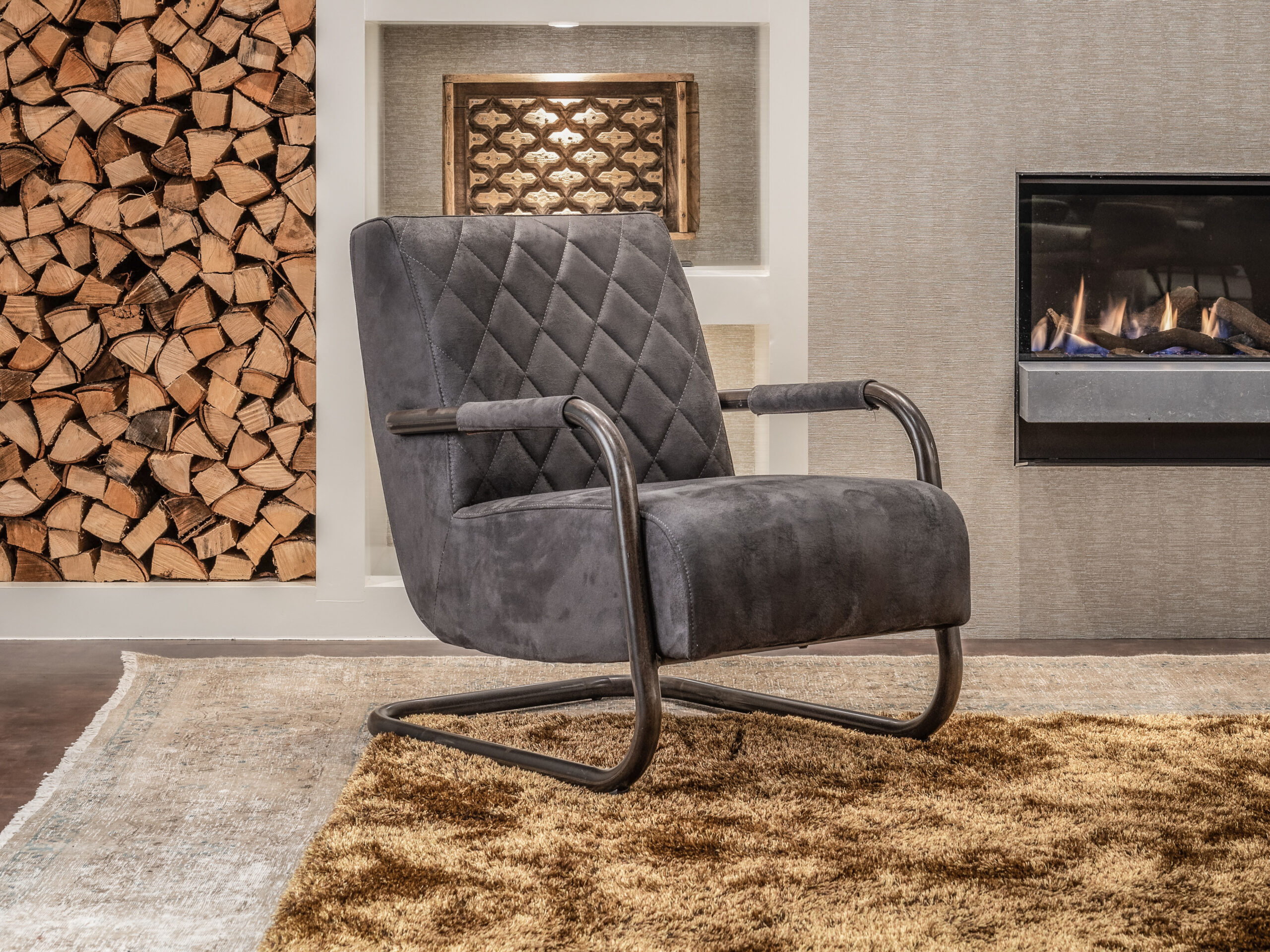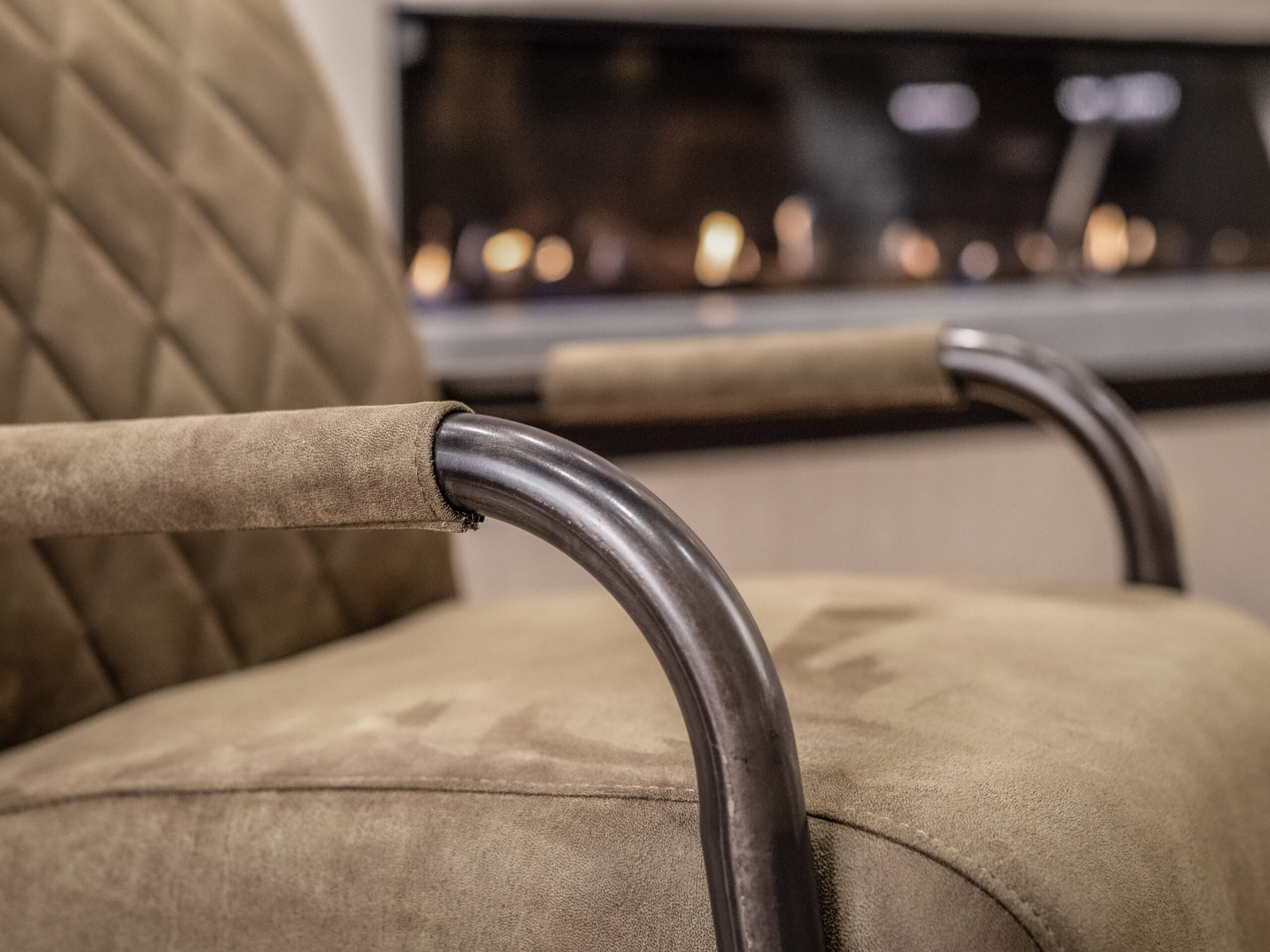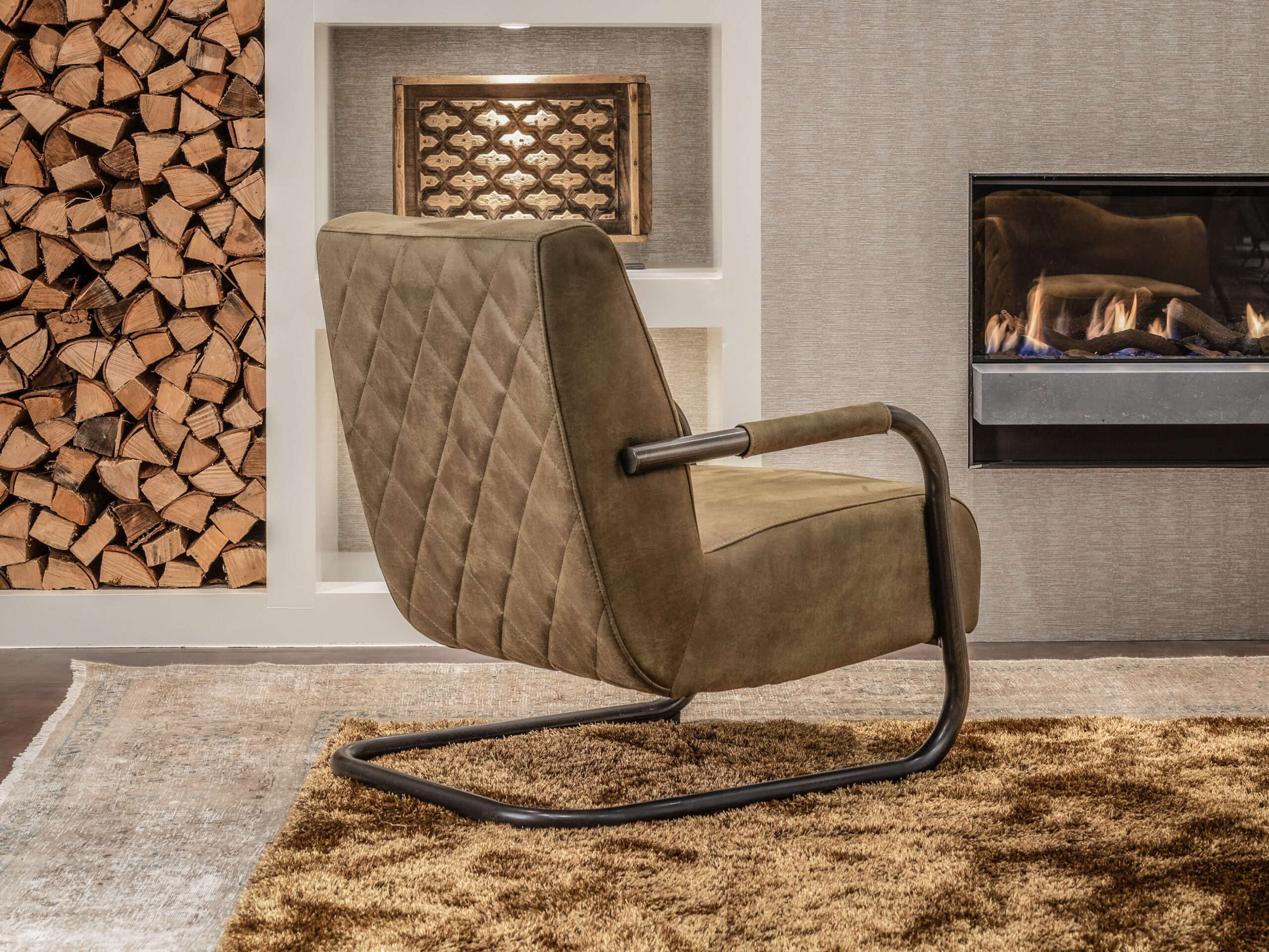 De armleuningen hebben mooie leren accenten met hetzelfde bull eco leder als de kussens. Het is een duurzame stof die goed combineert met andere materialen en heel goed past binnen een industrieel interieur. De Caledon heeft een comfortabele zitting en rugleuning voor een heerlijk zitcomfort. Doorgaans is deze stoel direct uit voorraad leverbaar in alle kleuren!