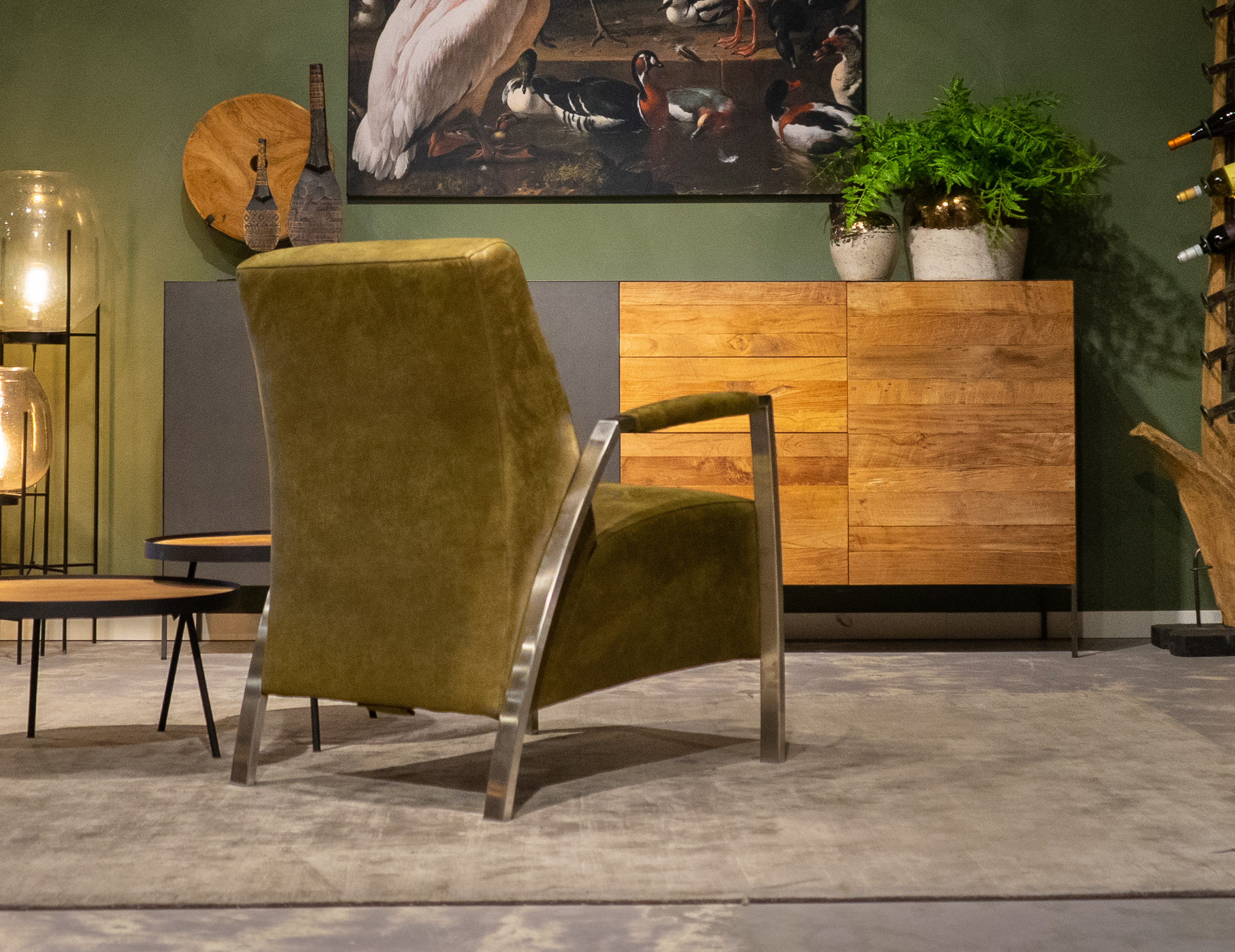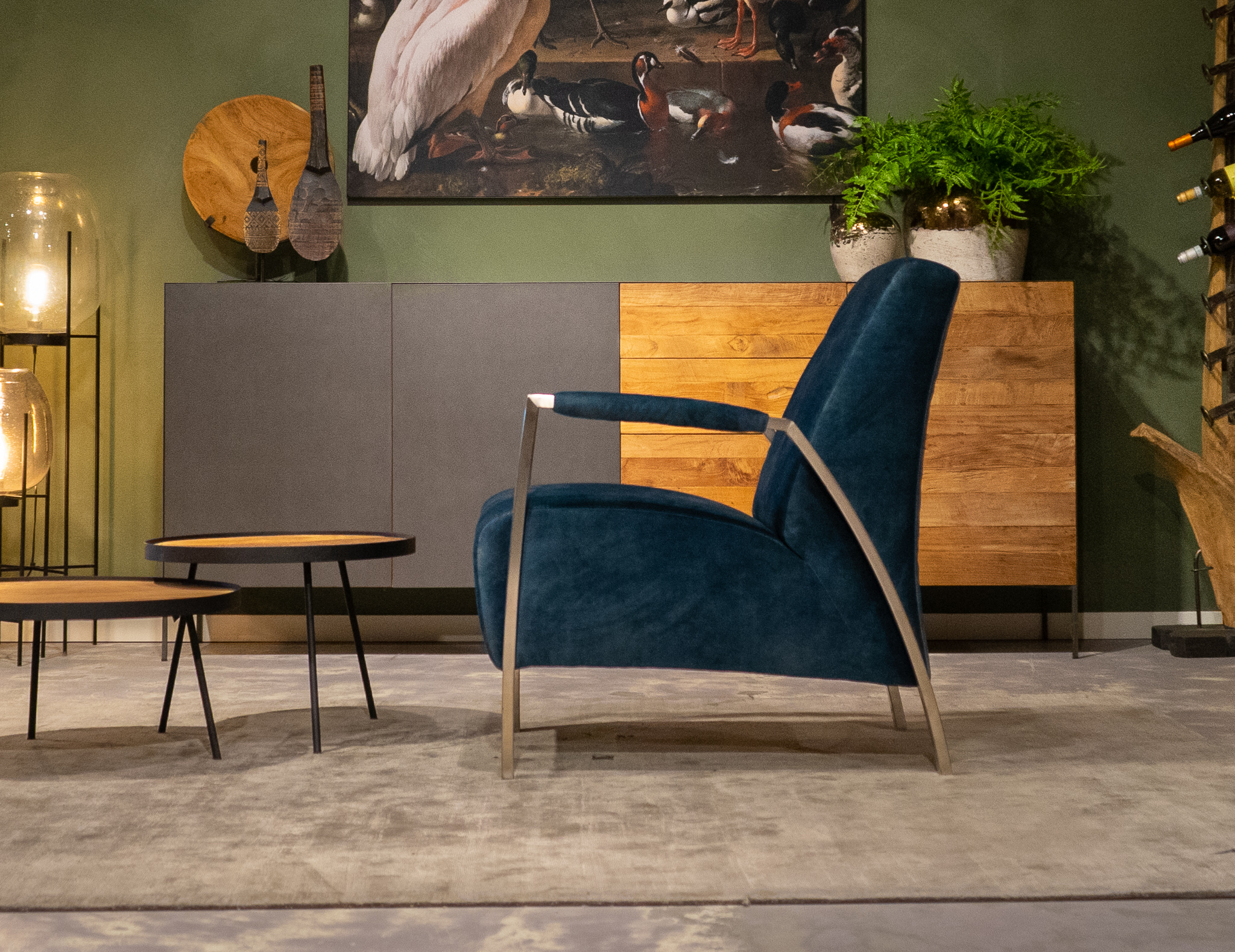 Voor nagenoeg alle fauteuils kunt u kiezen uit 5 materialen. Geschuurd leer, eco leder, relax stof, silent stof en de velvet stof. Deze materialen kunnen ook op bijna alle eetkamerstoelen, eetkamerbanken en banken. Op deze manier kunt u dus altijd een mooie combinatie maken door uw hele woning. Van elk type materiaal heeft u een ruime keuze uit diverse fantastische kleuren. Tussen stof en leer kunnen kleine stilistische verschillen zitten, zo is een open naad bijvoorbeeld wel mogelijk met leer, maar niet met stof.
