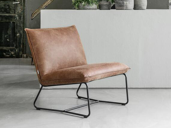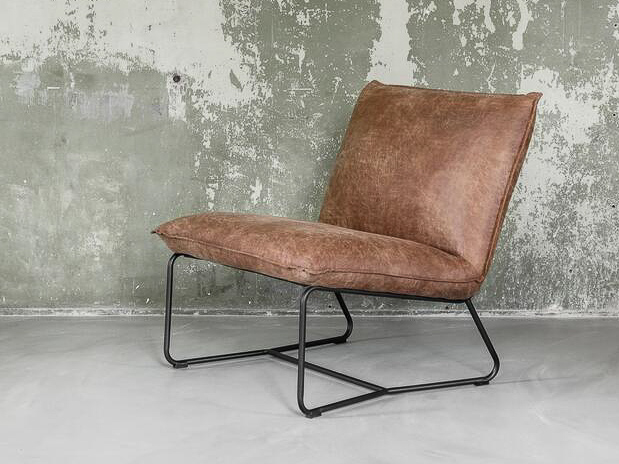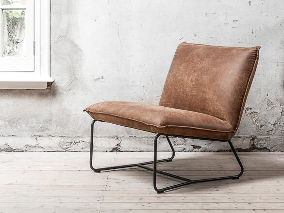 Stoere comfortabele fauteuil Milford, leverbaar doorgaans direct uit voorraad in 2 kleuren gerecycled leder, te weten grey en cognac. Dit materiaal is eenvoudig gegarandeerd vlekvrij te krijgen met een Protexx behandeling. Daarnaast is de fauteuil afgewerkt met een metalen frame wat de industriële look compleet maakt.