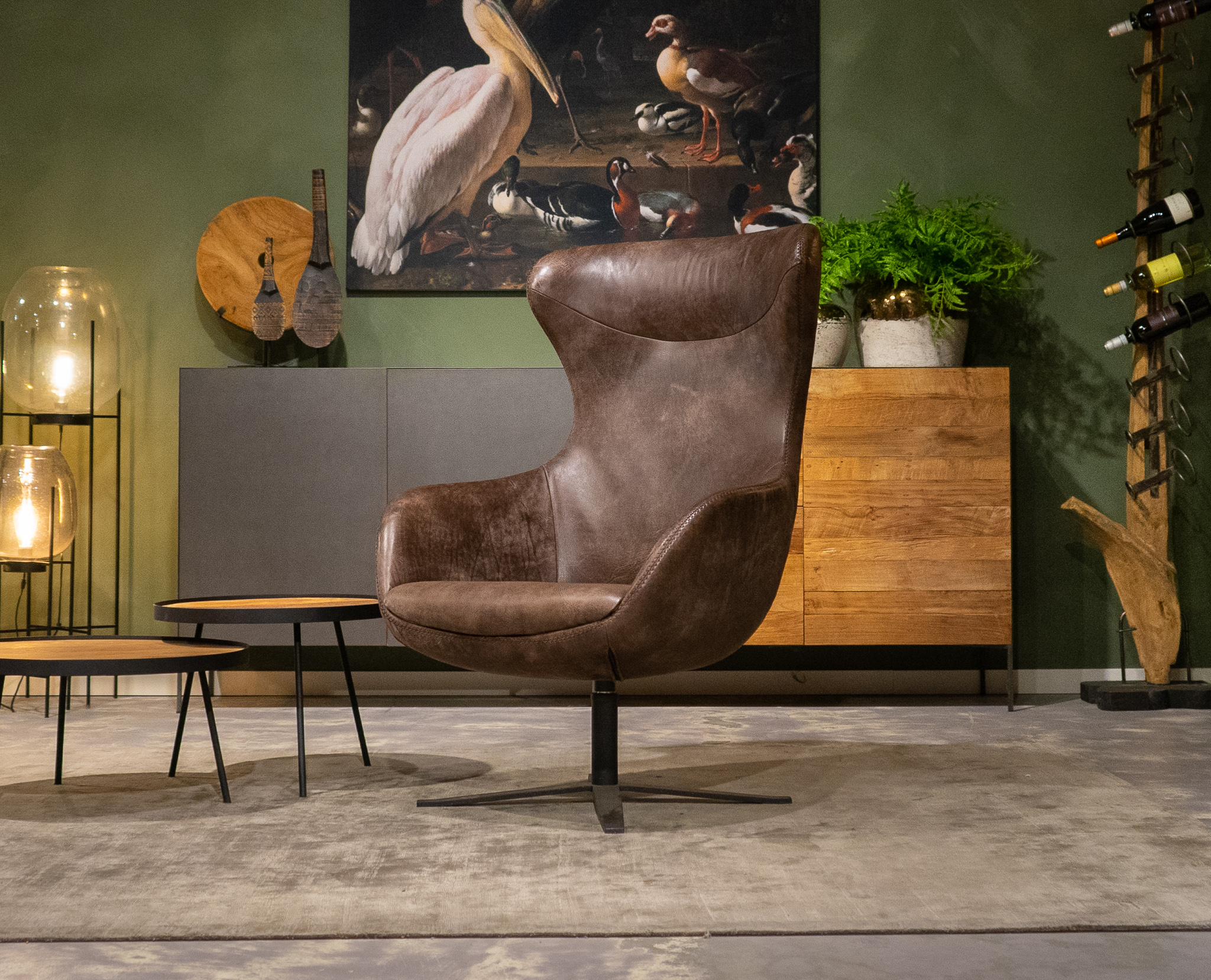 Leren retro draaifauteuil leverbaar in leer en stof. Dit model leveren we in diverse kleuren, met een mooi zwart stalen industrieel onderstel. Deze leren draaifauteuil staat in onze showroom in Sliedrecht en Gramsbergen. In het leer en micro leder wordt dit model gemaakt met een kruissteek, in het stof krijgt de stoel het standaard platte stiksel.