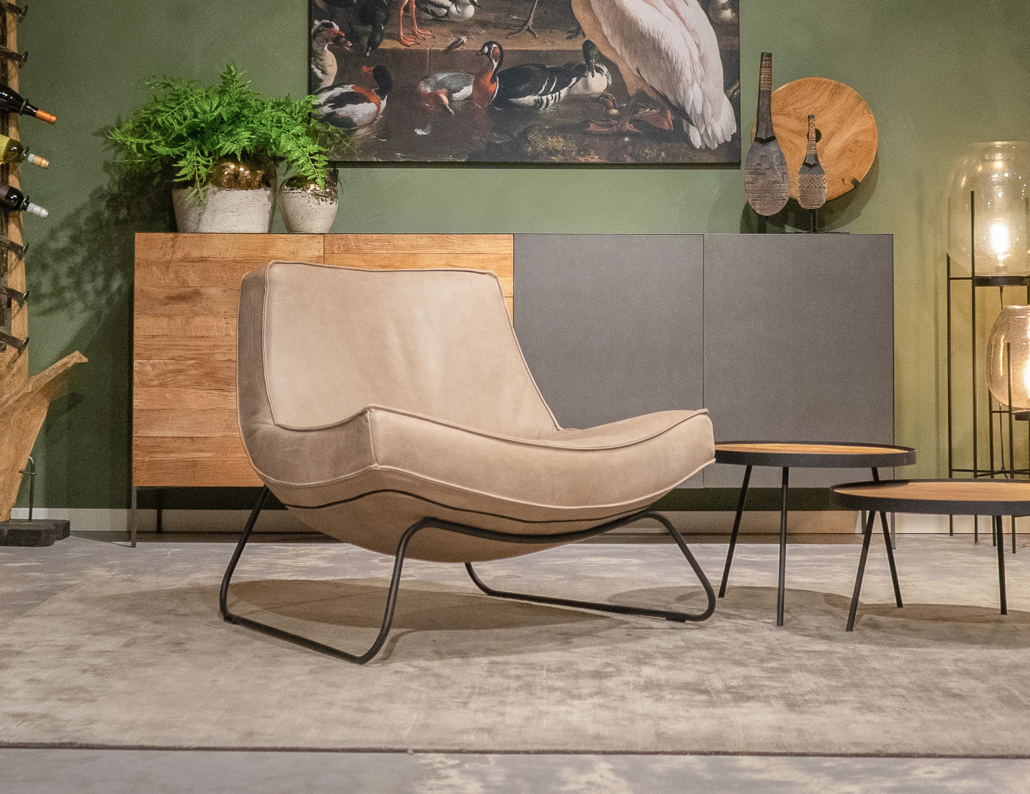 Exclusieve fauteuil op stalen sledepoot leverbaar in leer en stof. Dit model leveren we in bijzonder veel uitvoeringen en diverse kleuren. Dit model is leverbaar in caiman leer met een mooie croq print. Gemaakt in Nederland geeft het veel opties, zo is het ook mogelijk om bijvoorbeeld een achterkant in caiman leer en een voorkant in antigo leer te bestellen. Indien er caiman leer op het zitvlak gekozen wordt moet u er rekening mee houden dat de print over tijd zal vervagen.