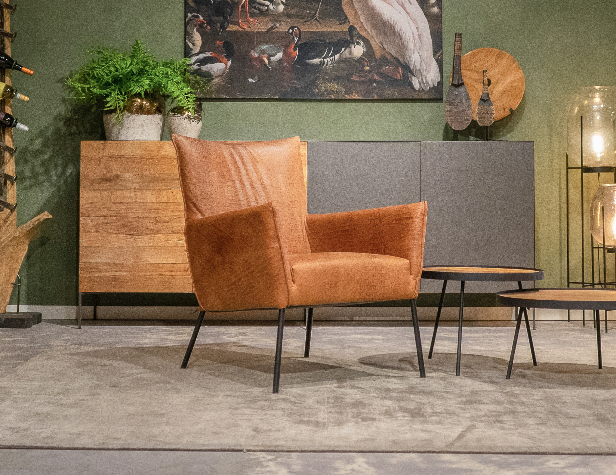 Moderne fauteuil met zwart stalen pootjes leverbaar in leer en stof. Dit model leveren we in bijzonder veel uitvoeringen en diverse kleuren. Deze fauteuil is o.a. leverbaar in caiman leer met een mooie croq print. Gemaakt in Nederland geeft het veel opties, zo is het ook mogelijk om bijvoorbeeld een achterkant in caiman leer en een voorkant in antigo leer te bestellen. Indien er caiman leer op het zitvlak gekozen wordt moet u er rekening mee houden dat de print over tijd zal vervagen.