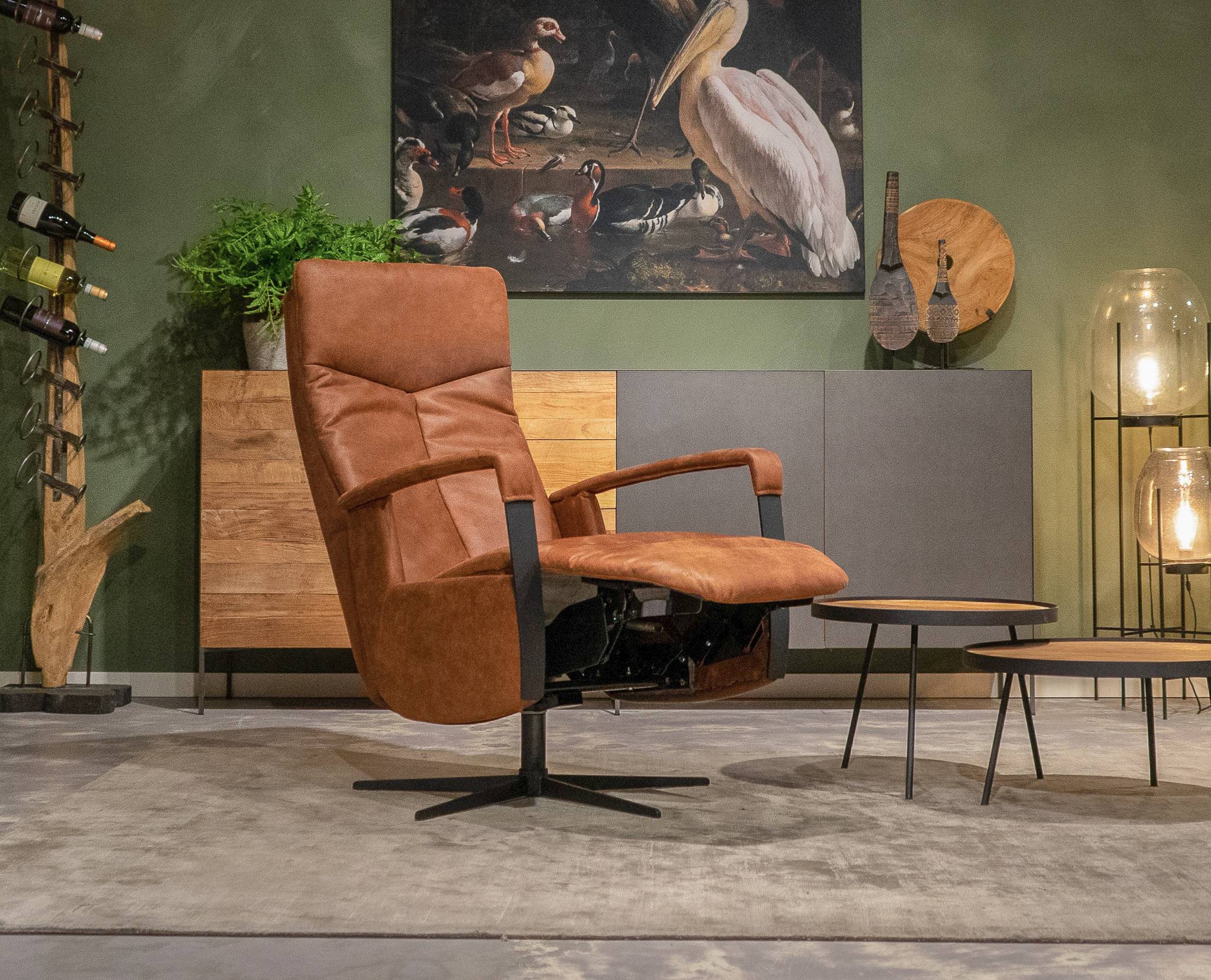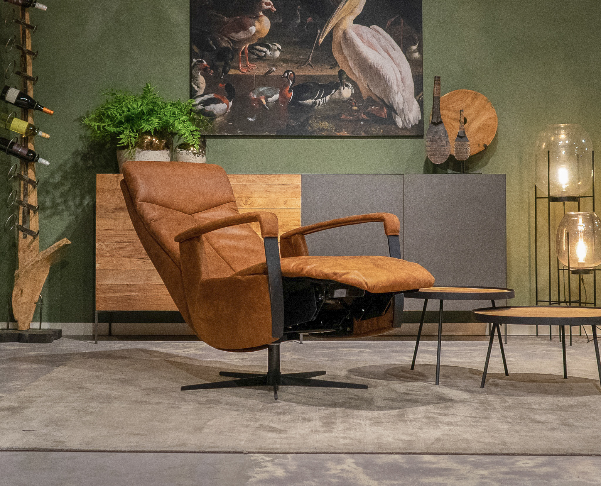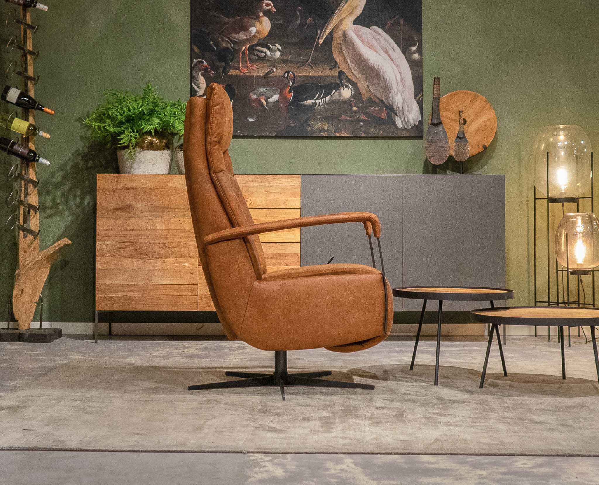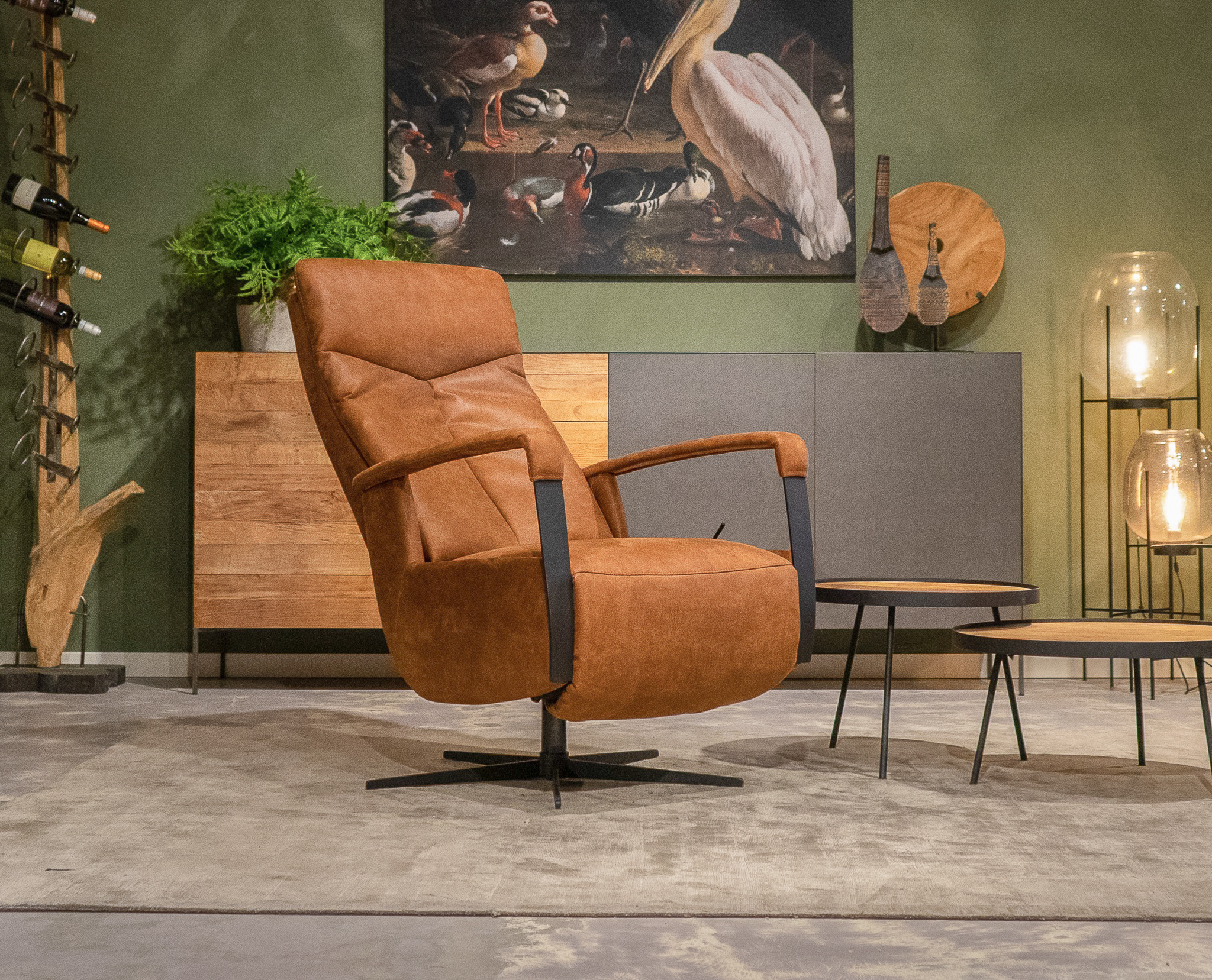 Stoere draaifauteuil met handmatig verstelbare rugleuning en een gasveer om de benen omhoog te gooien! leverbaar in leer en stof. Dit model leveren we in diverse kleuren. Kom langs en verbaas u over het zitcomfort.