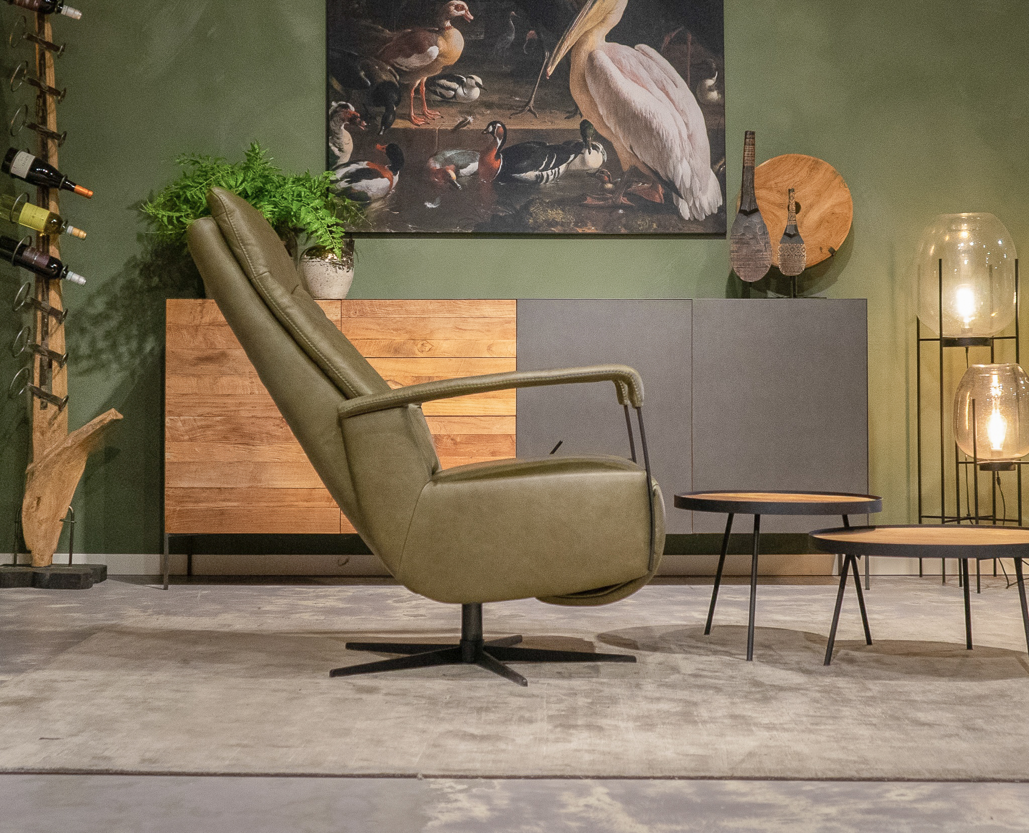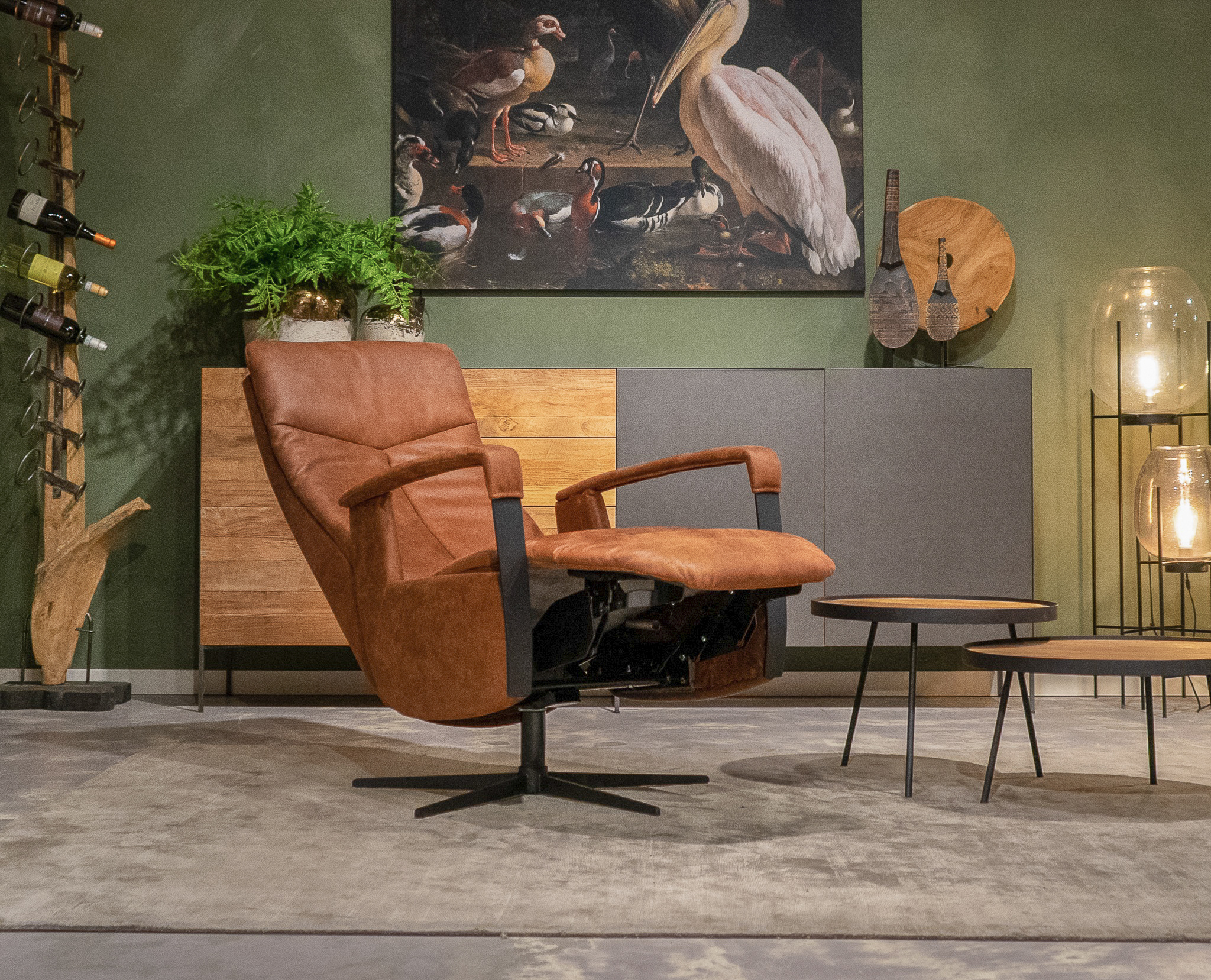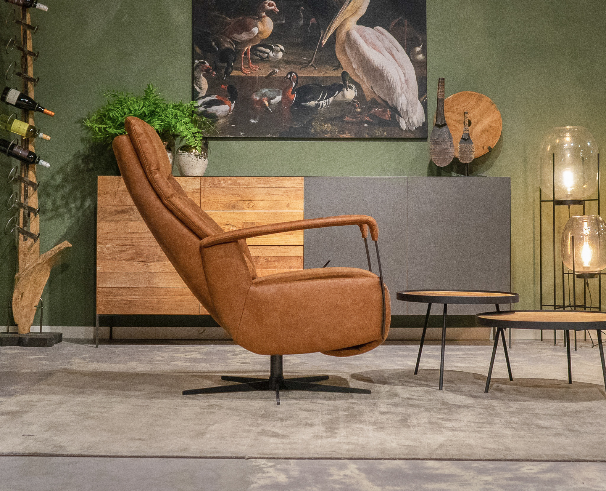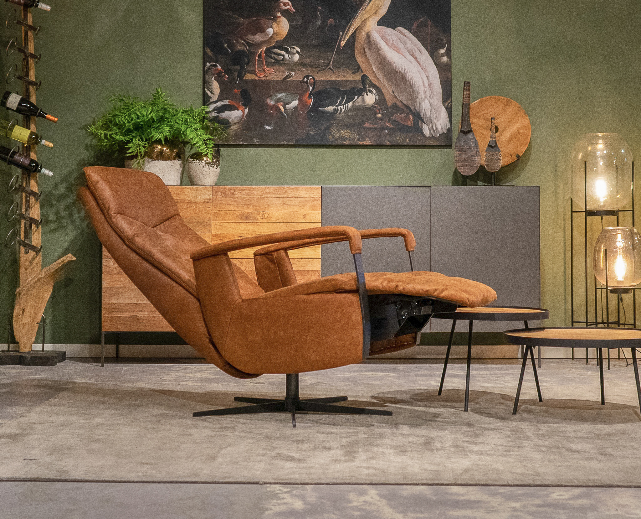 Stoere draaifauteuil met handmatig verstelbare rugleuning en een gasveer om de benen omhoog te gooien! leverbaar in leer en stof. Dit model leveren we in diverse kleuren. Kom langs en verbaas u over het zitcomfort.