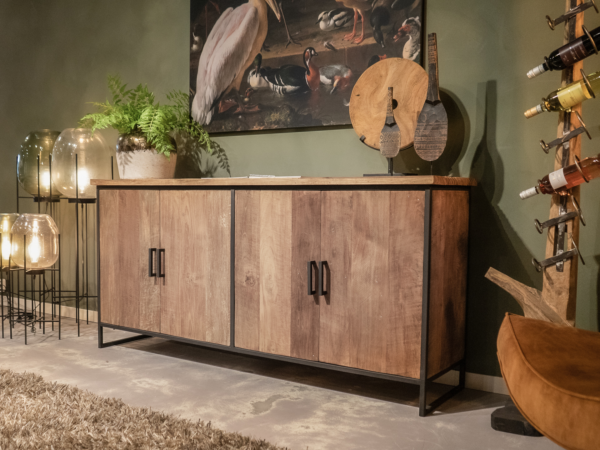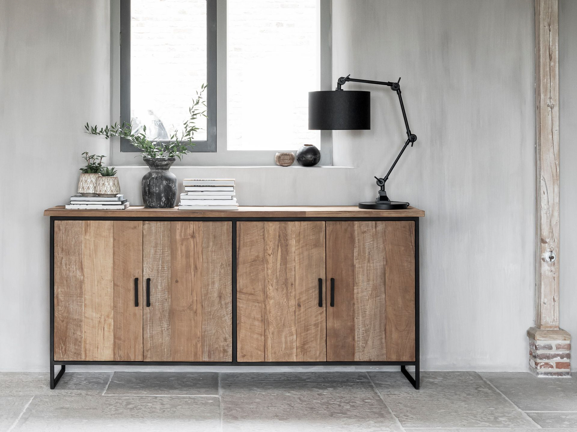 Stoer industrieel dressoir van oud recycled teak en stalen frame. Dit model is leverbaar doorgaans direct uit voorraad. Hetzelfde hout wordt gebruikt voor onze Maldini, Noma, Marconi en Cavallo serie. Het oude teak hout krijgt een 2e leven in deze meubels, elk meubel heeft zijn eigen karakteristieke kenmerken wat elk meubel uniek qua uitstraling maakt.