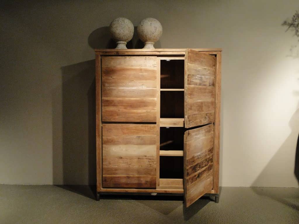 Stoere industriele kast met veel opbergruimte, gemaakt van oud recycled teak met stalen poten. Dit model combineert mooi met onze salontafel Avezzano of een maatwerk model van oud eiken.