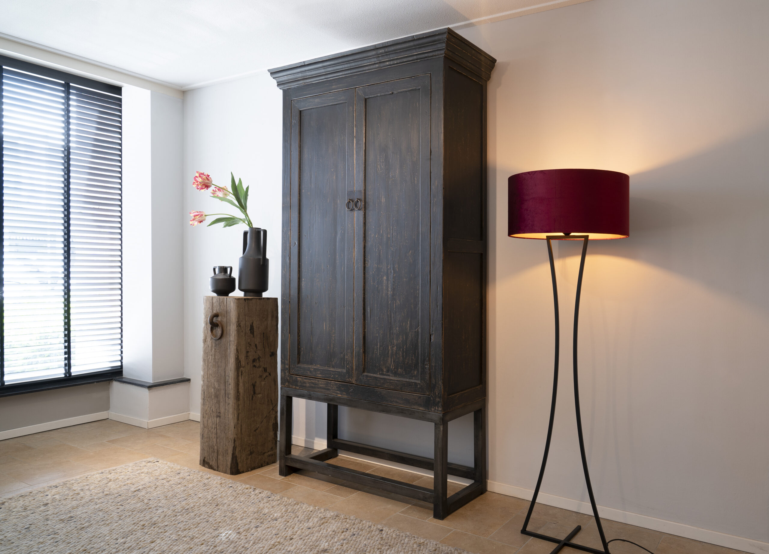 Stoere grote opbergkast Barletta met lekker veel ruimte om spullen op te bergen, gemaakt van sfeervol zwartgebeitst oud elmhout of in naturel kleur. Aan de onderzijde is een open ruimte waar u de wat grotere accessoires kunt plaatsen. De breedte van dit model is 110cm, de diepte 45cm en de hoogte 230cm. Deze kast zal absoluut een blikvanger zijn in uw woning!
