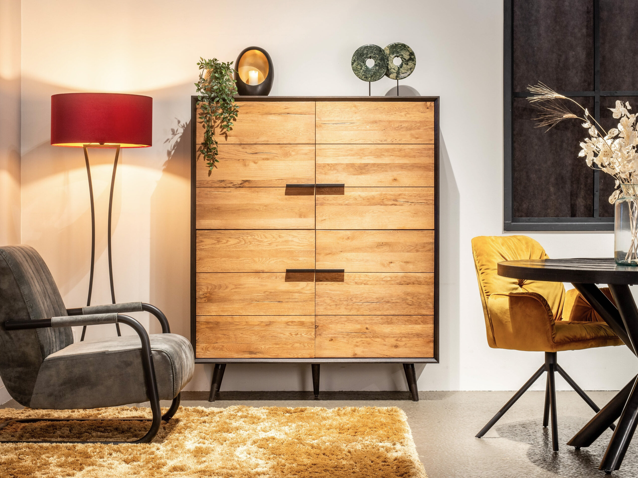 De opbergkast Lazzaro is een robuuste verschijning in het grote assortiment industriële meubels van Robuuste Tafels. Deze opbergkast kenmerkt zich door de vier massief eiken deuren en de retro poten onder de kast. De deuren sluiten met een soft-close systeem. De kleurcombinatie, bestaande uit twee warme tinten, geeft het meubelstuk zijn charme. Deze kast heeft een breedte van 130cm, een diepte van 45cm en een hoogte van 160cm. Naast een opberkgast zijn er meerdere meubels in onze Lazzaro serie, zoals: een TV-meubel, een smalle hoge kast en een dressoir in twee maten. Doorgaans zijn de meubels uit onze Lazzaro serie direct uit voorraad leverbaar!