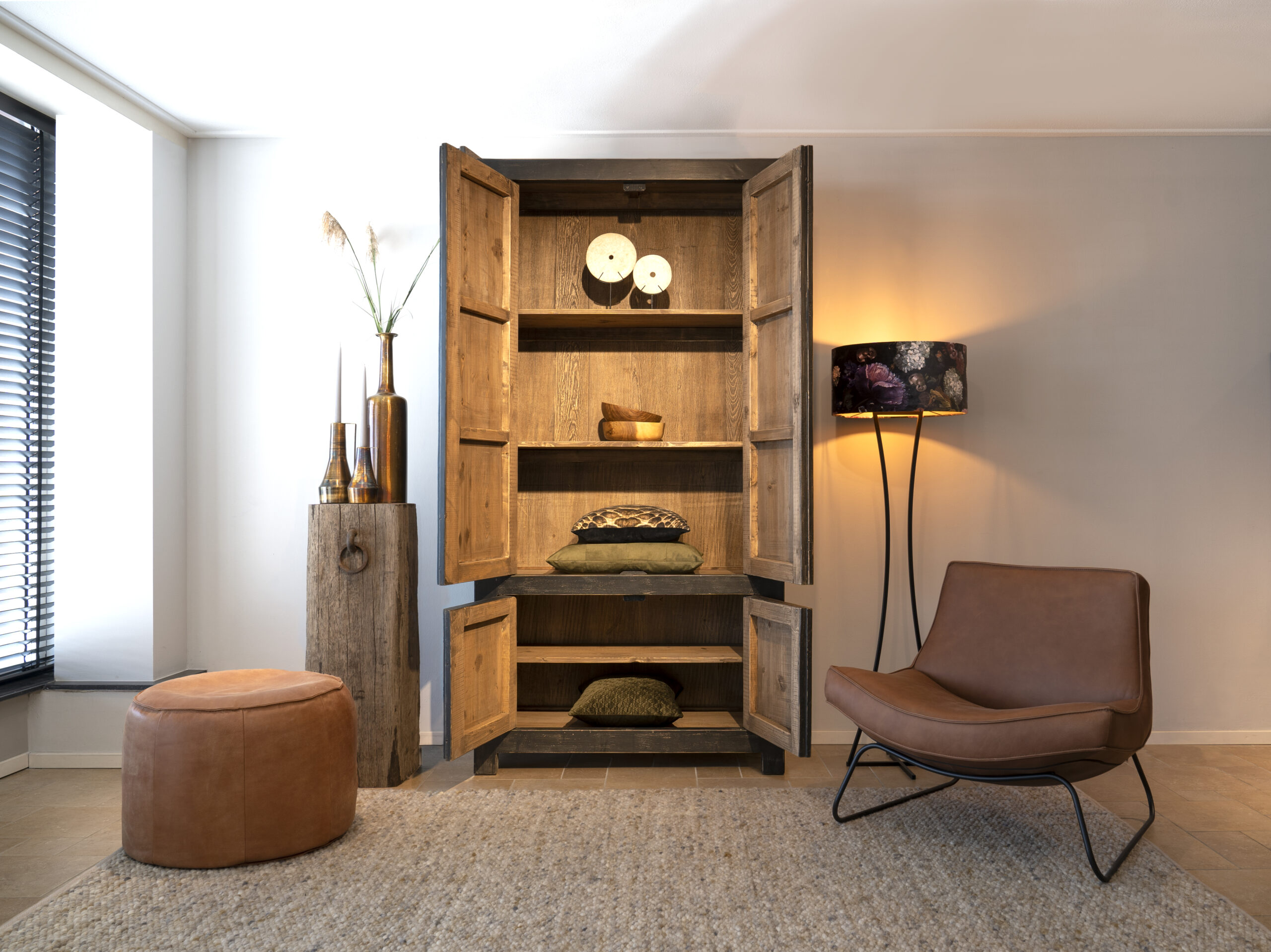 Dit authentieke hout bevat karakteristieke details. Elke kast is daarom uniek en heeft zijn eigen karakter. Het zwart gebeitste hout combineert ook makkelijk met andere houtsoorten. Doorgaans is de opbergkast Merida direct uit voorraad leverbaar. Bezoek één van onze showrooms om inspiratie op te doen of bestel eenvoudig online zonder aanbetaling!