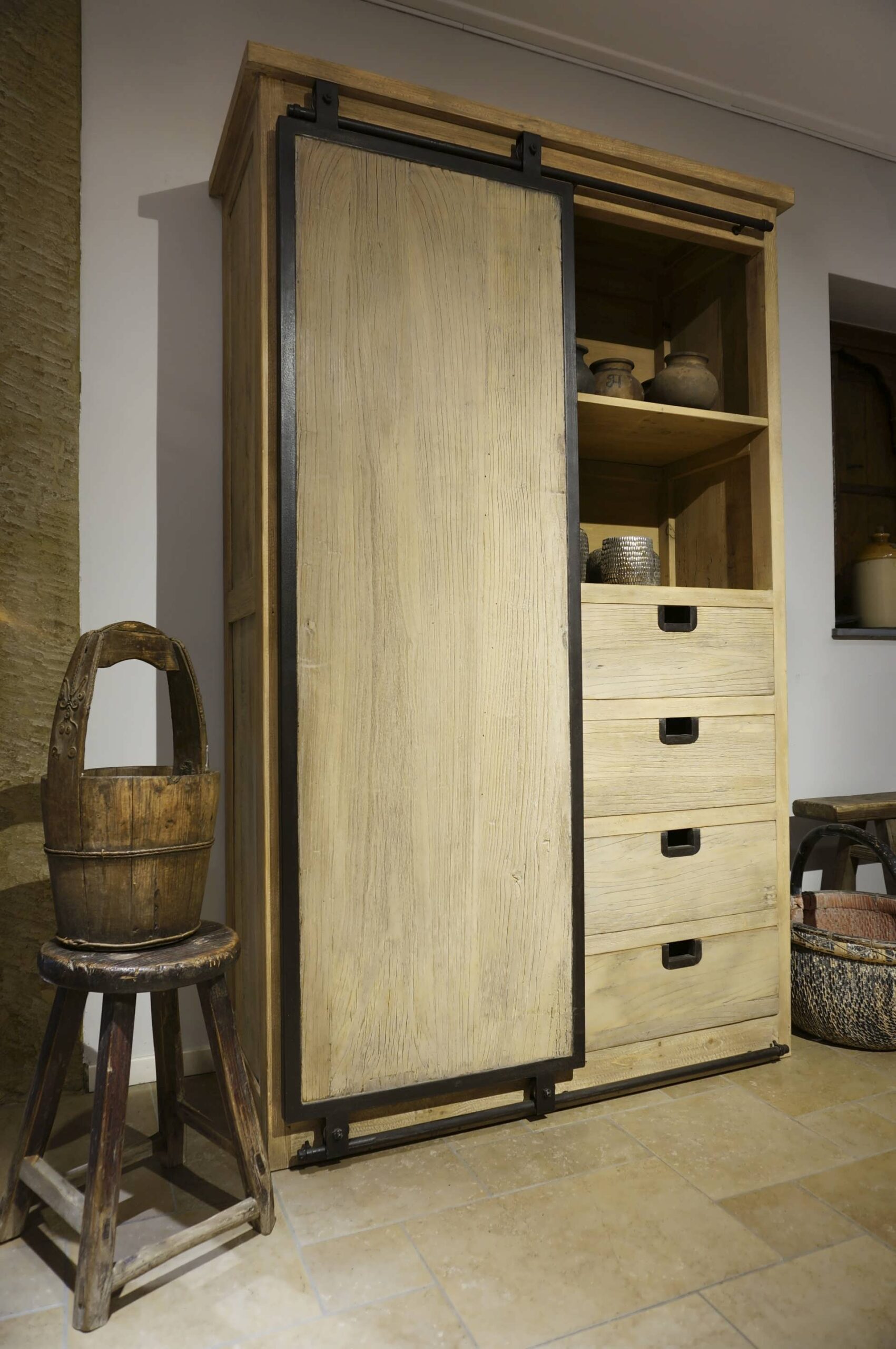 Stoere kast gemaakt van oud chinees elmhout, rechts 4 laden en 2 open vakken en links 4 open vakken. Gemaakt van mooi authentiek hout met karakteristieke details, elk meubel is uniek en heeft zijn eigen karakter. Dit model is doorgaans direct uit voorraad leverbaar.