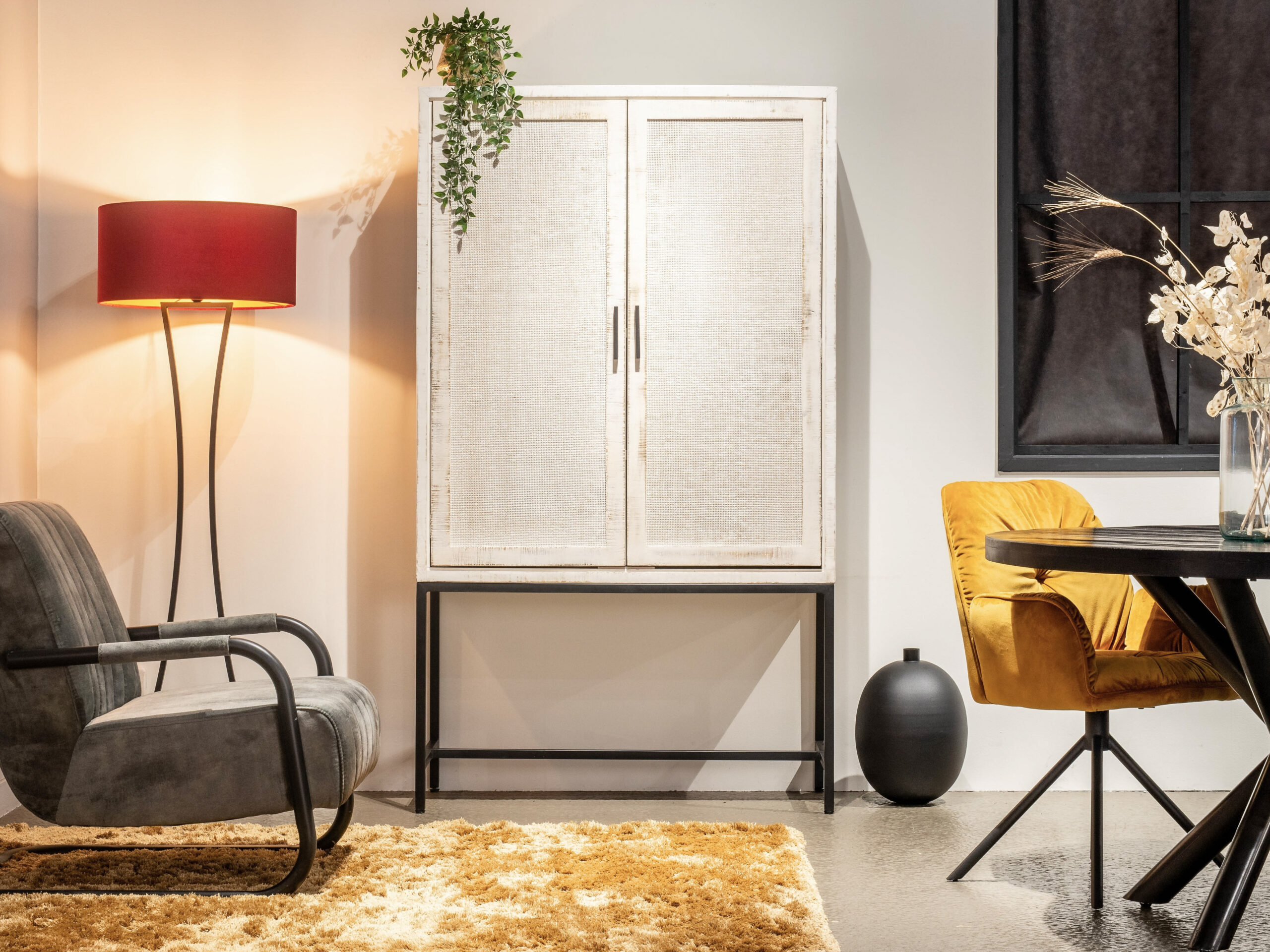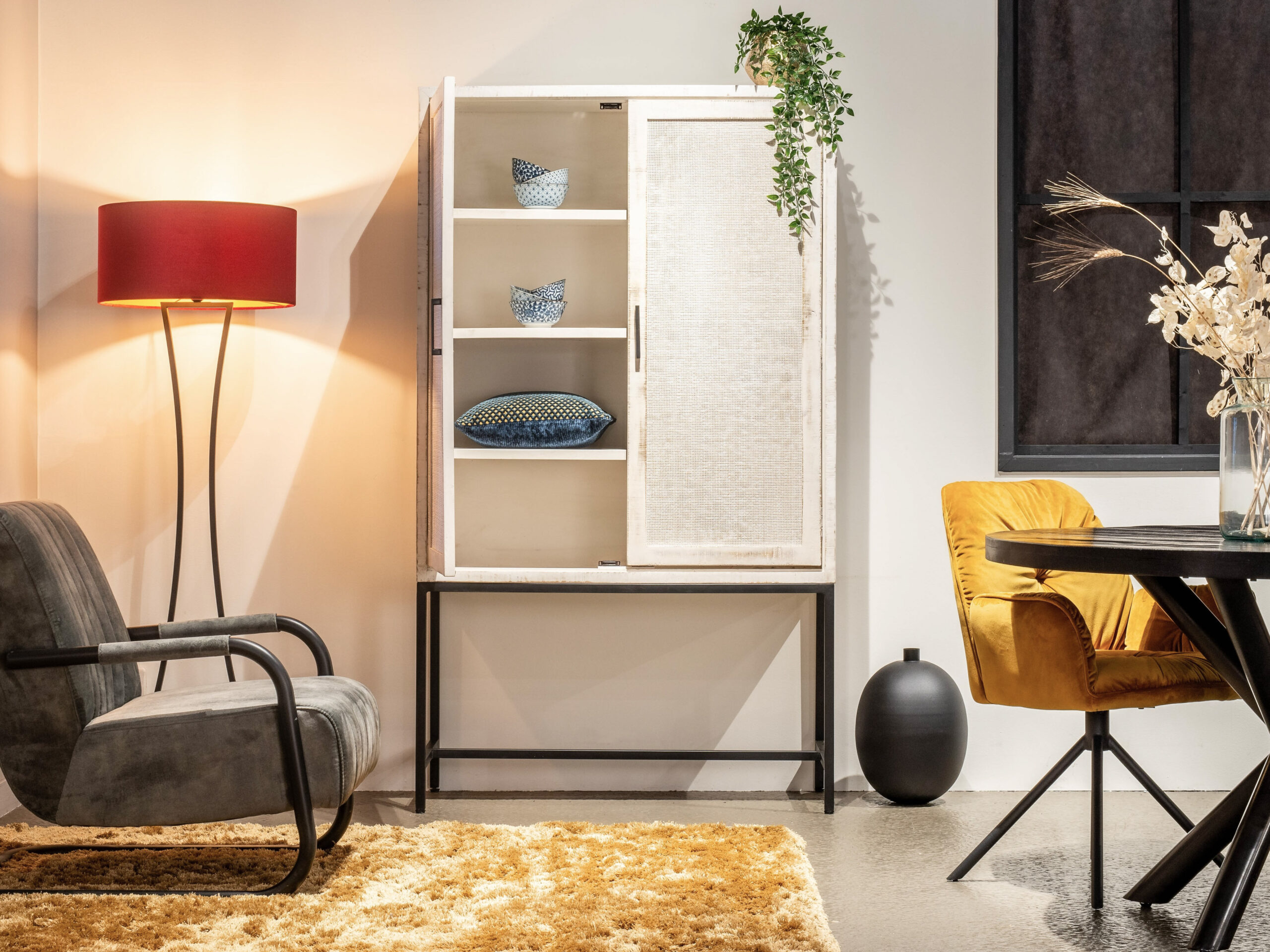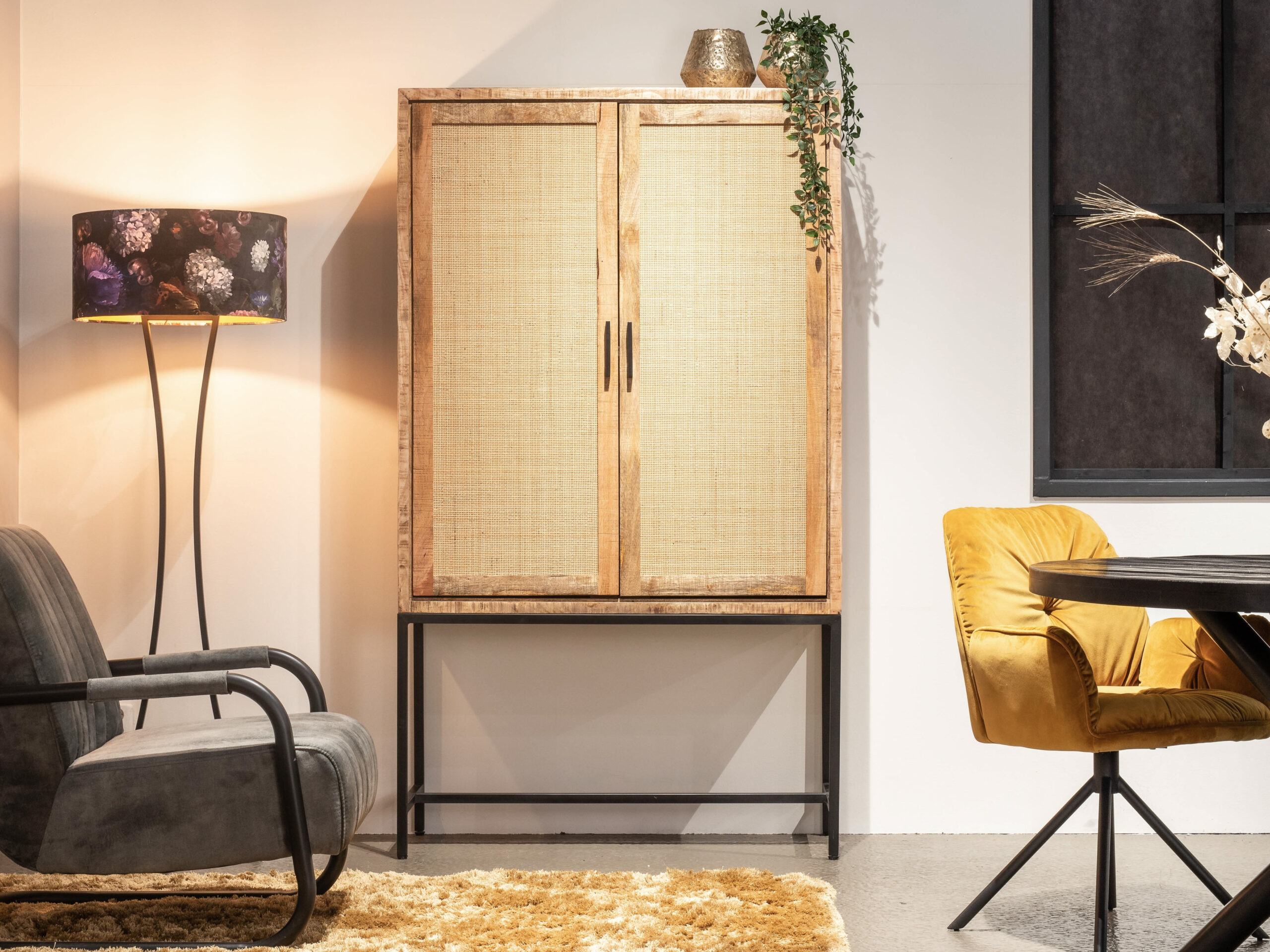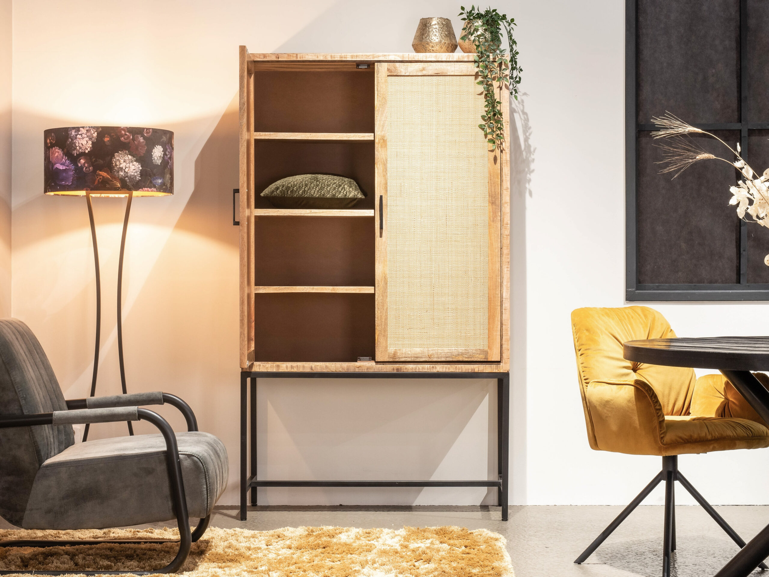 Mooie opvallende wandkast met veel opbergruimte. De Palmas kast is gemaakt van mangohout en heeft een stalen onderstel. Het webbing design in de deuren is een leuk en uniek detail. Deze kast is verkrijgbaar in 3 kleuren, te weten: wit, naturel en zwart. Deze prachtige kast is ideaal om een lege plek in het interieur mee op te vullen.