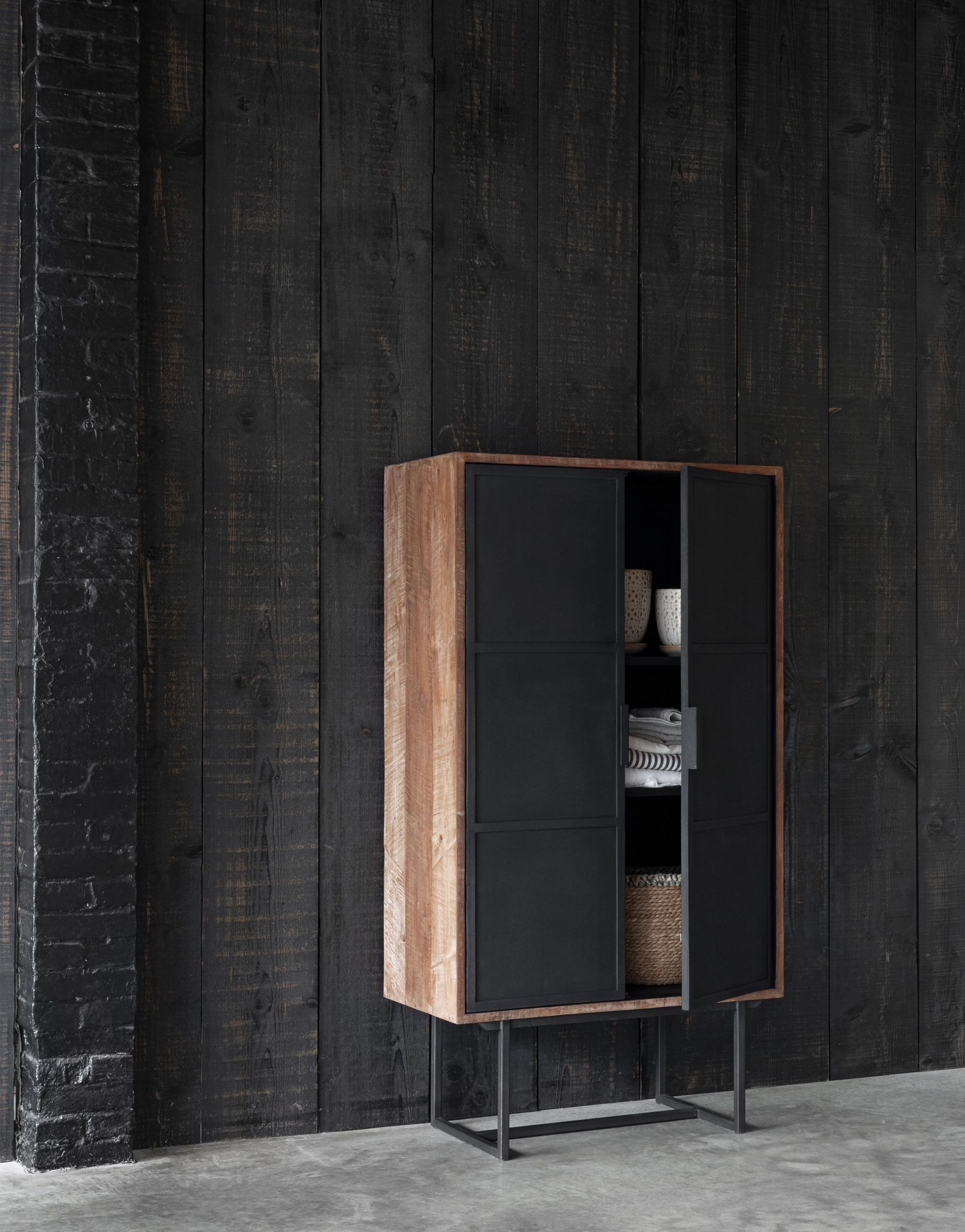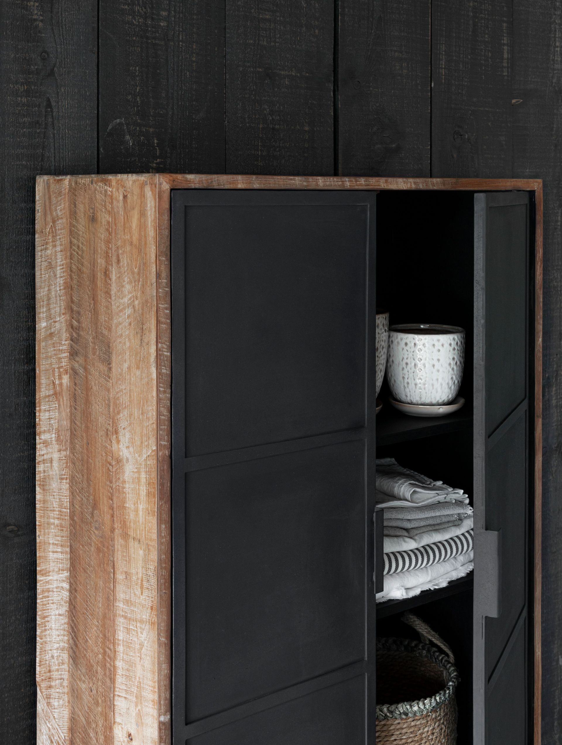 Stoere industriële kast gemaakt van oud recycled teak en stalen frame met lekker veel opbergruimte! Dit model combineert mooi met onze andere meubels van reclaimed teak of andere zwarte meubels, leverbaar doorgaans direct uit voorraad.