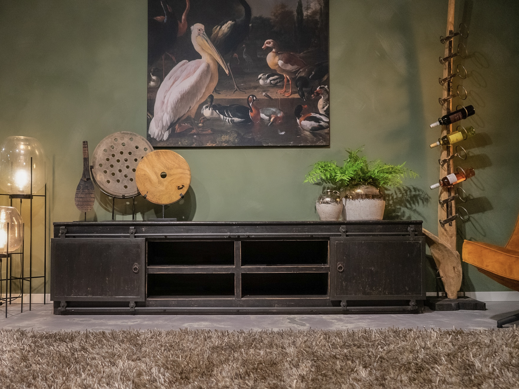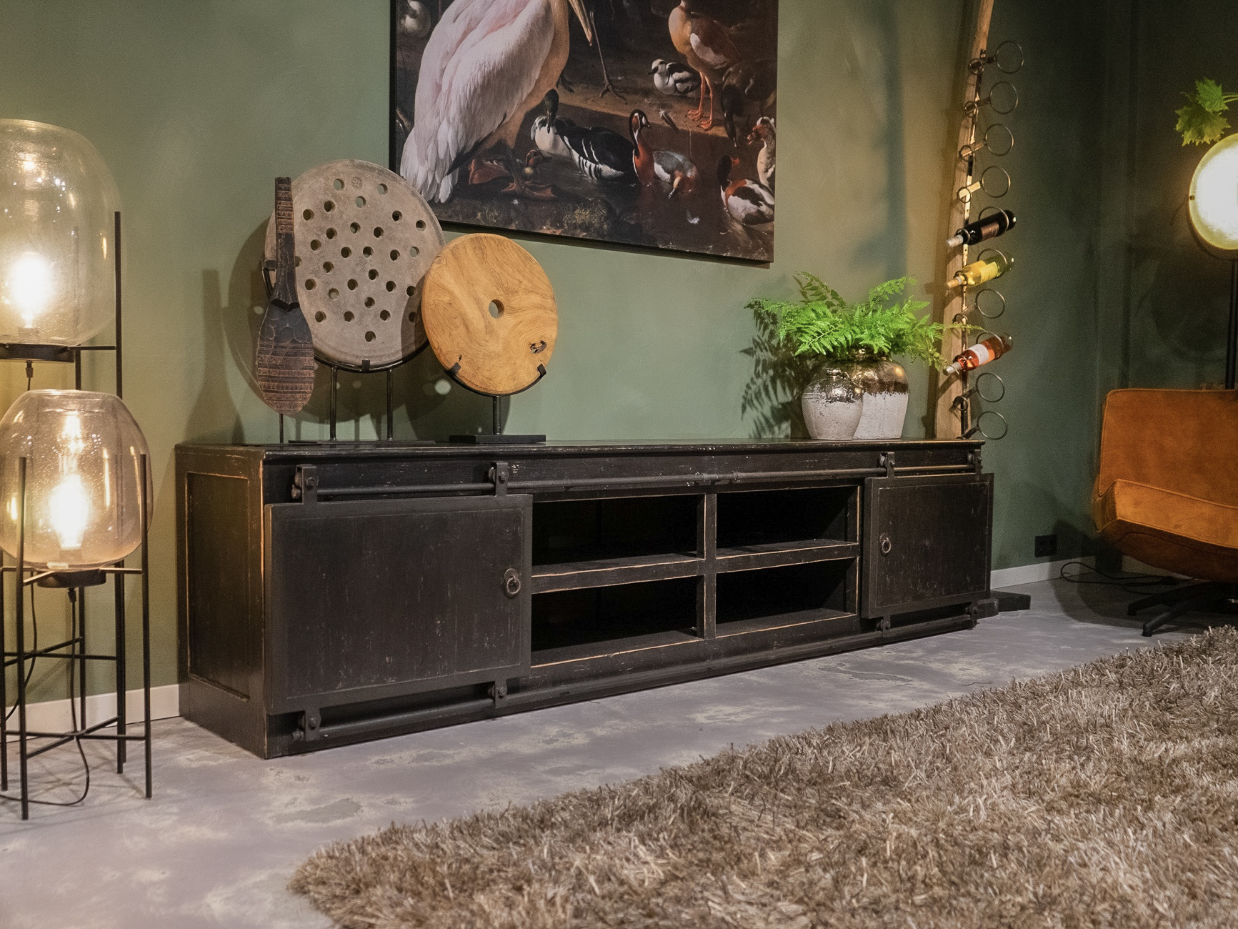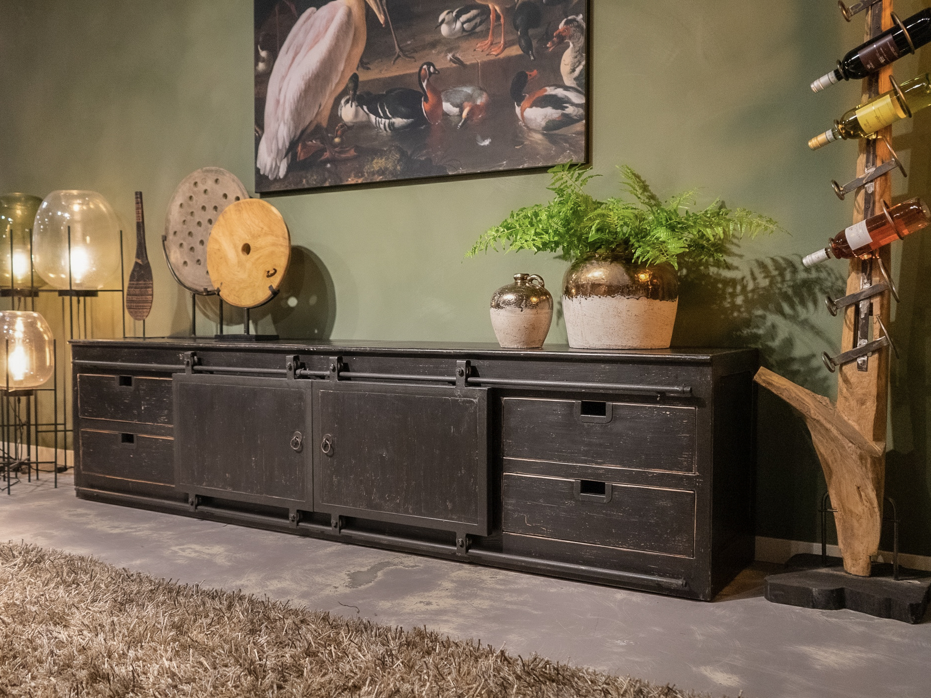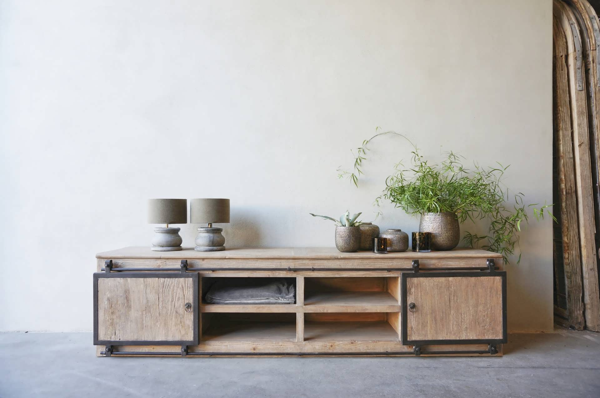 Stoer tv-meubel gemaakt van oud chinees elmhout, met schuifdeuren en laden. Gemaakt van mooi authentiek hout met karakteristieke details, elk meubel is uniek en heeft zijn eigen karakter. Dit model is doorgaans direct uit voorraad leverbaar, zowel in naturel als in old black.