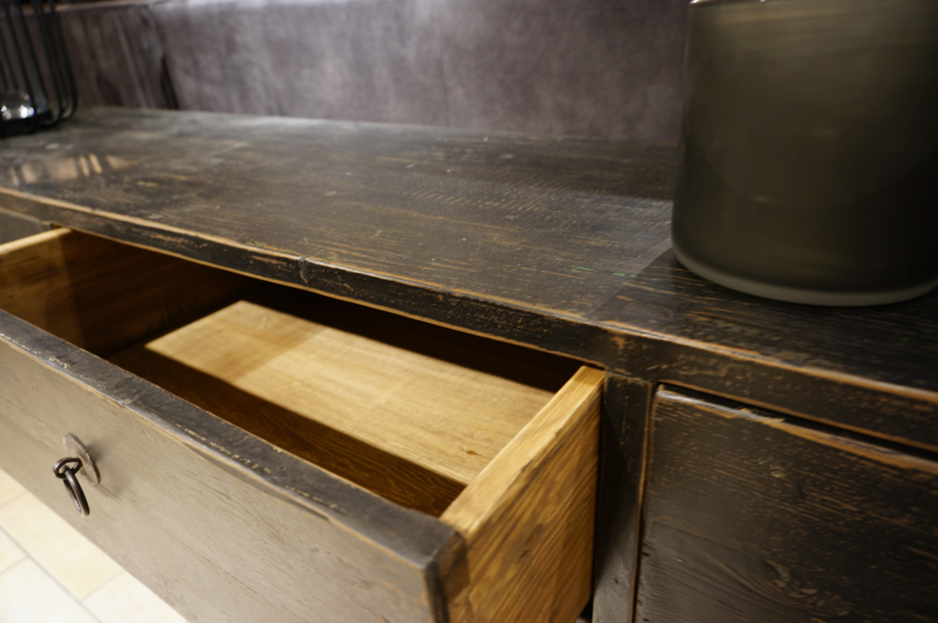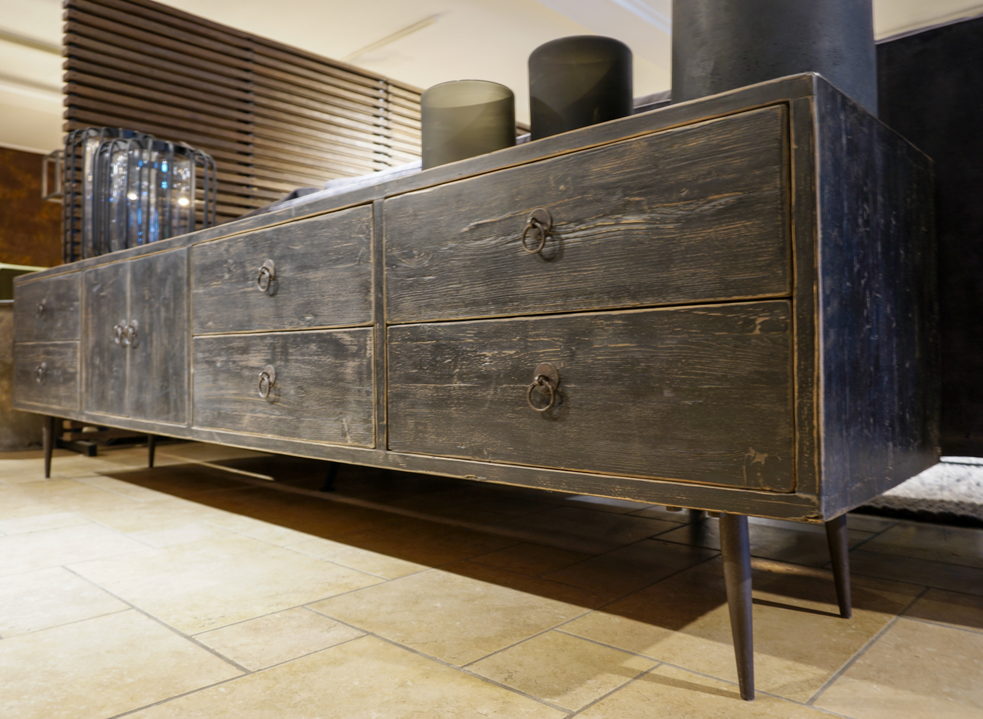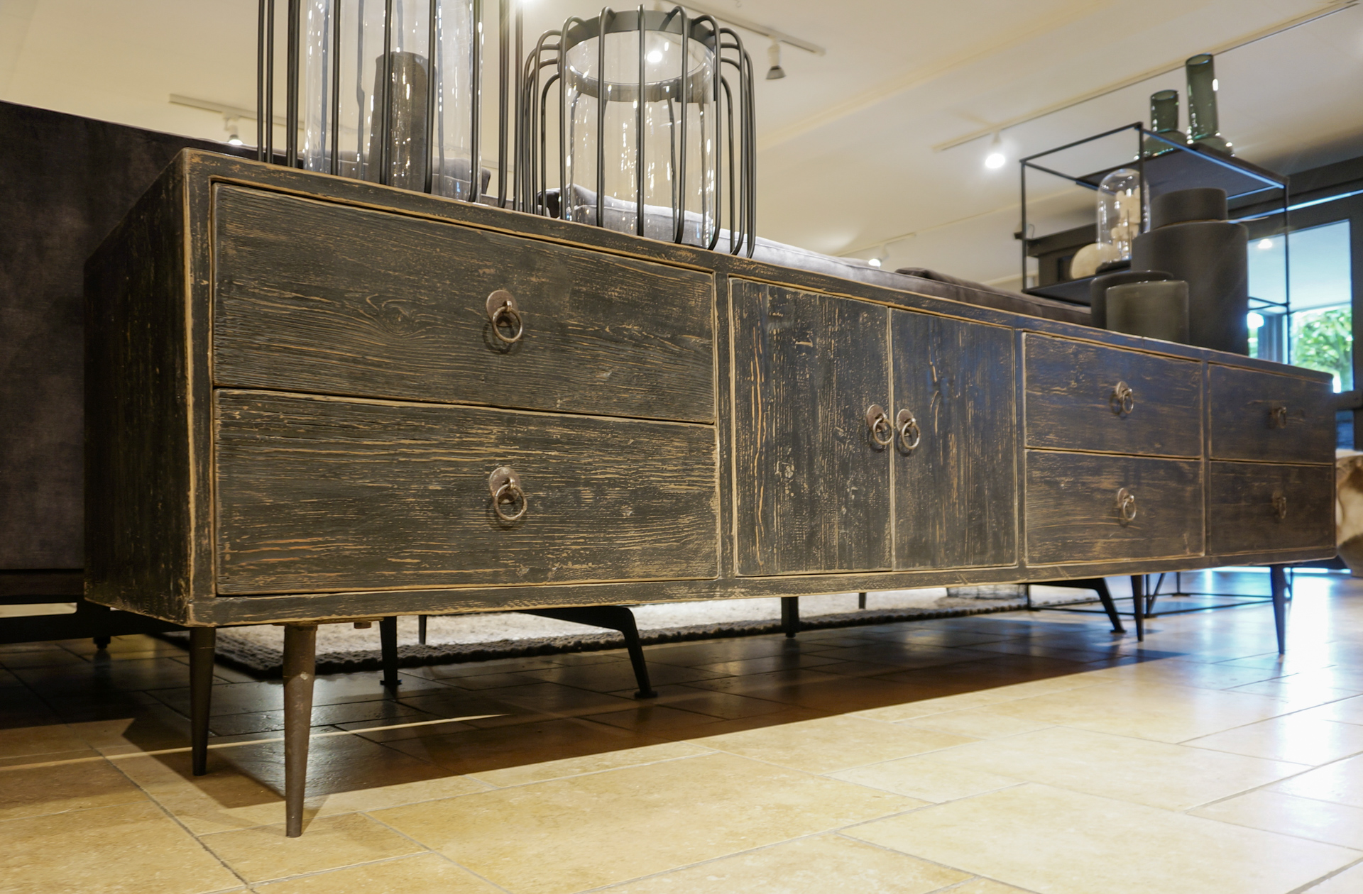 Uniek tv-meubel gemaakt van oud hout leverbaar in 2 maten. Gemaakt van mooi authentiek hout met karakteristieke details. Elk meubel is uniek en heeft zijn eigen karakter. Dit model leveren we doorgaans direct uit voorraad zowel in old black als naturel.