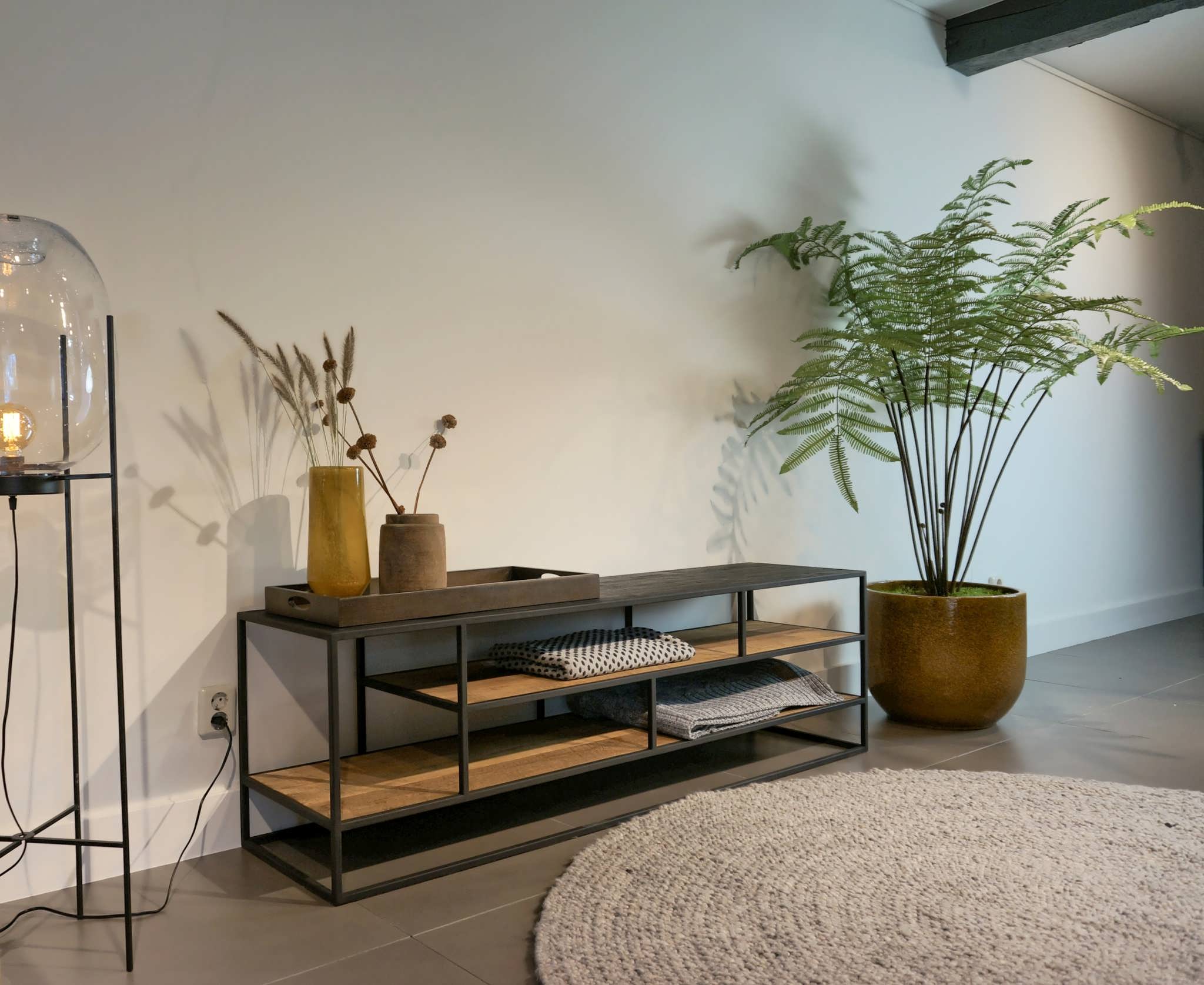 Stoer industrieel tv-meubel van oud recycled teak en stalen frame. Deze variant op onze Maldini serie is leverbaar in 5 verschillende uitvoeringen, 3 uitvoeringen met deurtjes en 2 open vak modellen. Dit model combineert mooi met andere producten uit de Marconi serie, maar ook met de Cavallo, Ferro, Larino en Noma serie. Het oude teak hout krijgt een 2e leven in deze meubels, elk meubel heeft zijn eigen karakteristieke kenmerken wat elk meubel uniek qua uitstraling maakt.