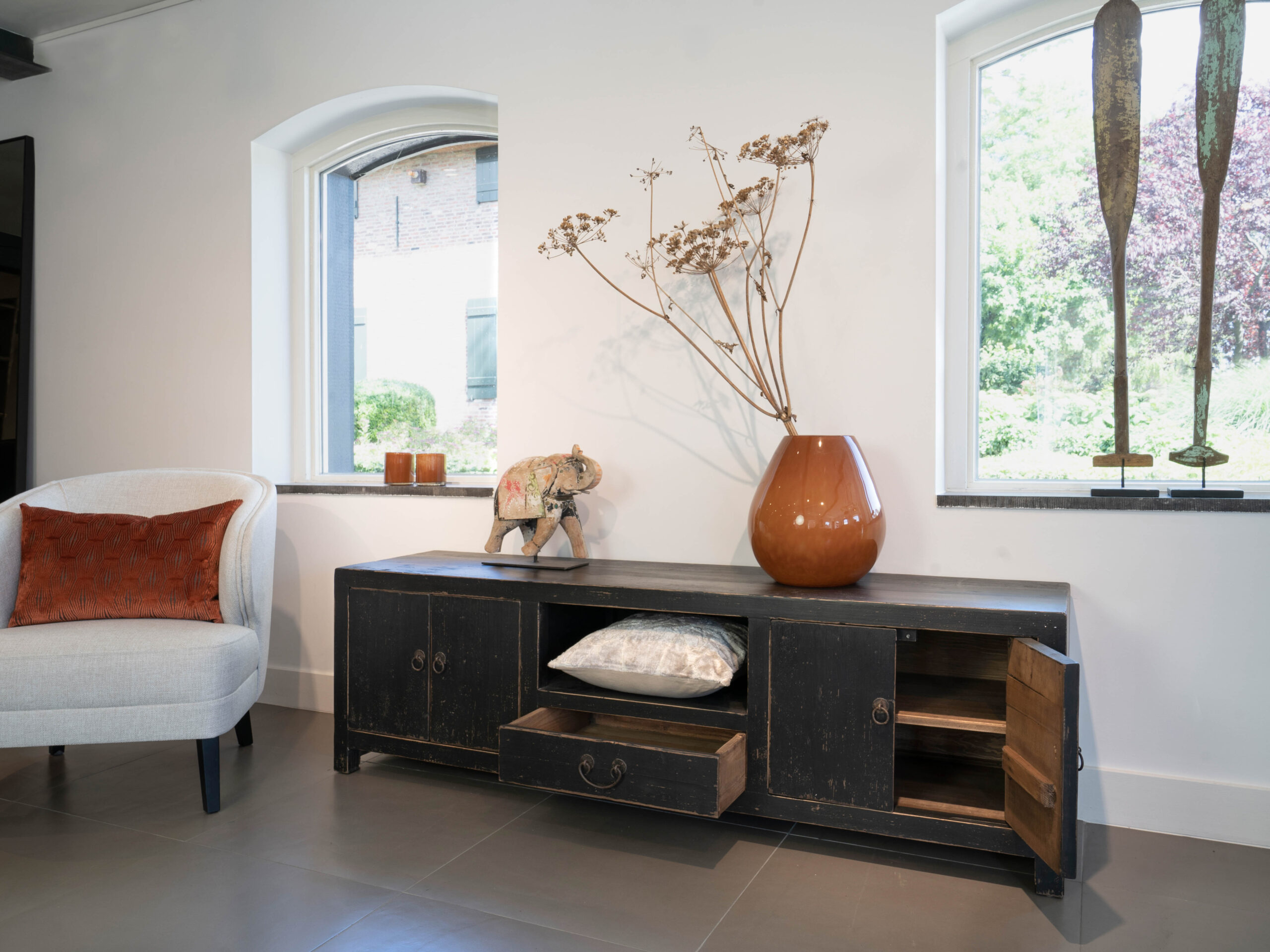 Marcos TV-meubel bewerkt met een zwarte beits