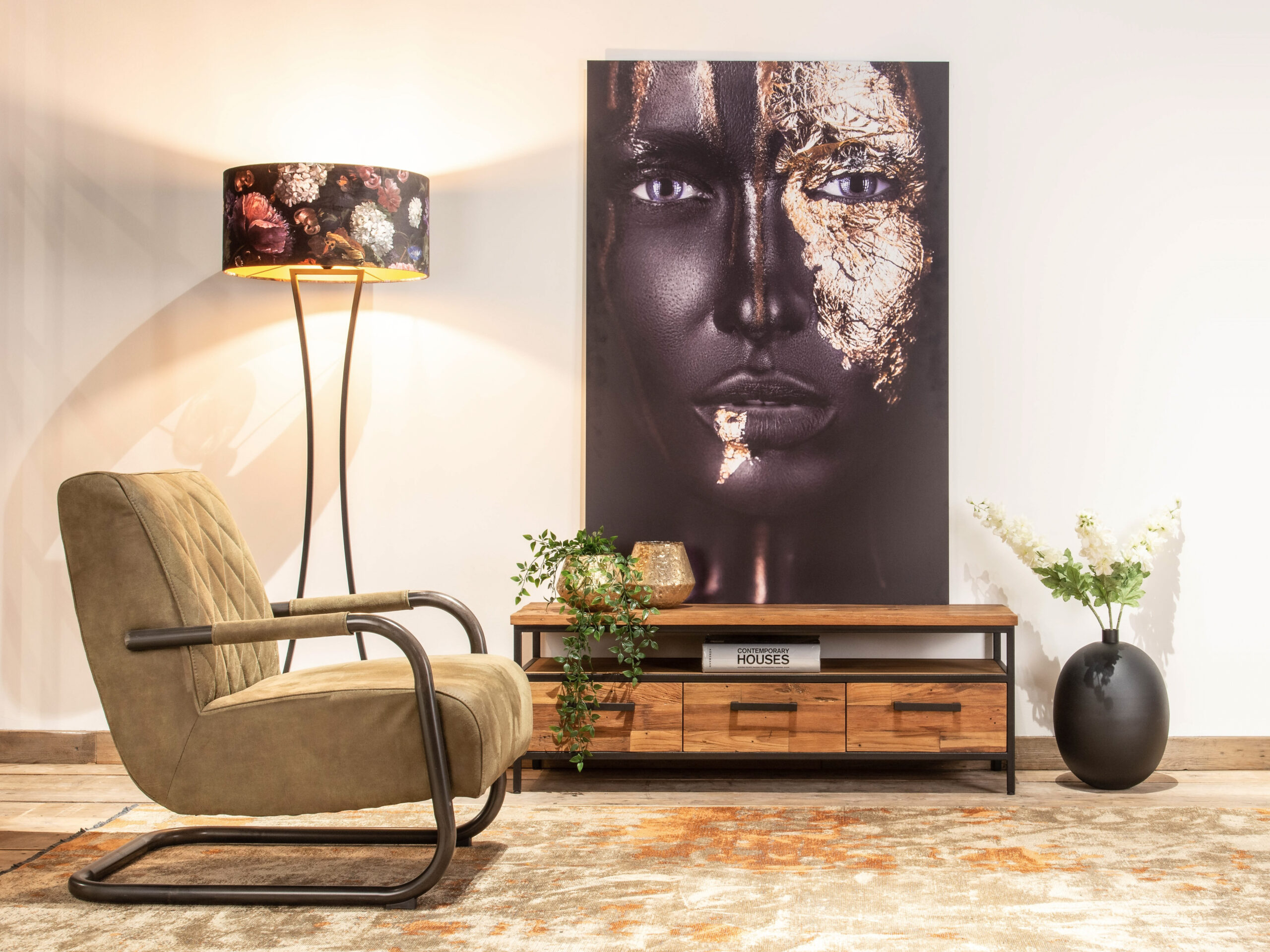 Het TV-meubel Marmande staat in beide showrooms.