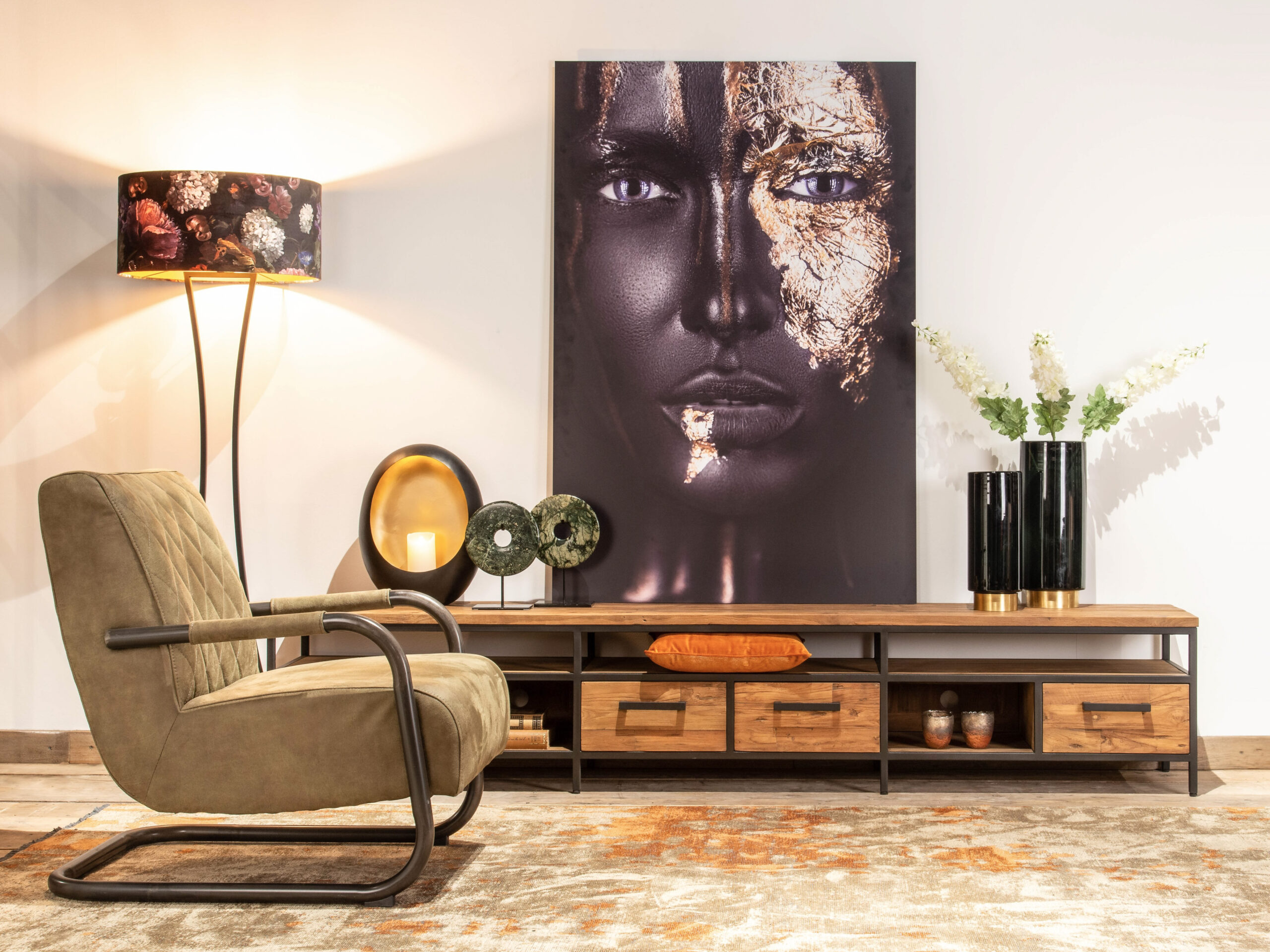 Het TV-meubel Marmande staat in beide showrooms.