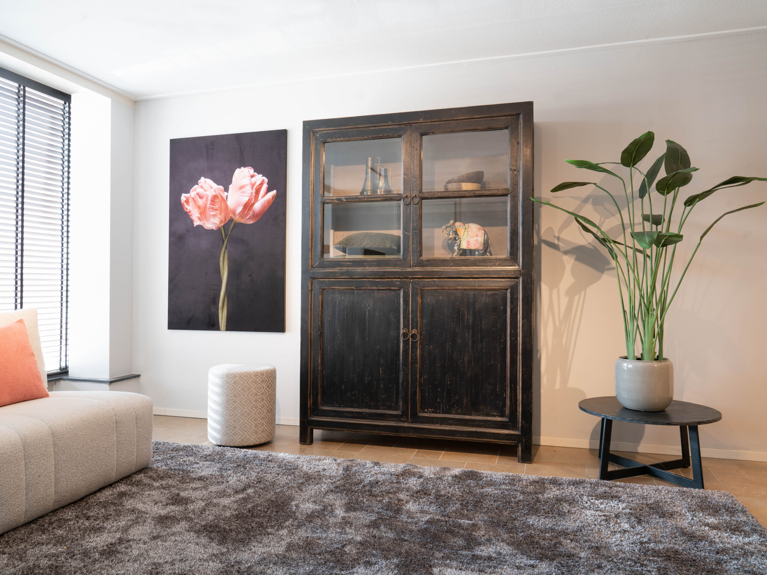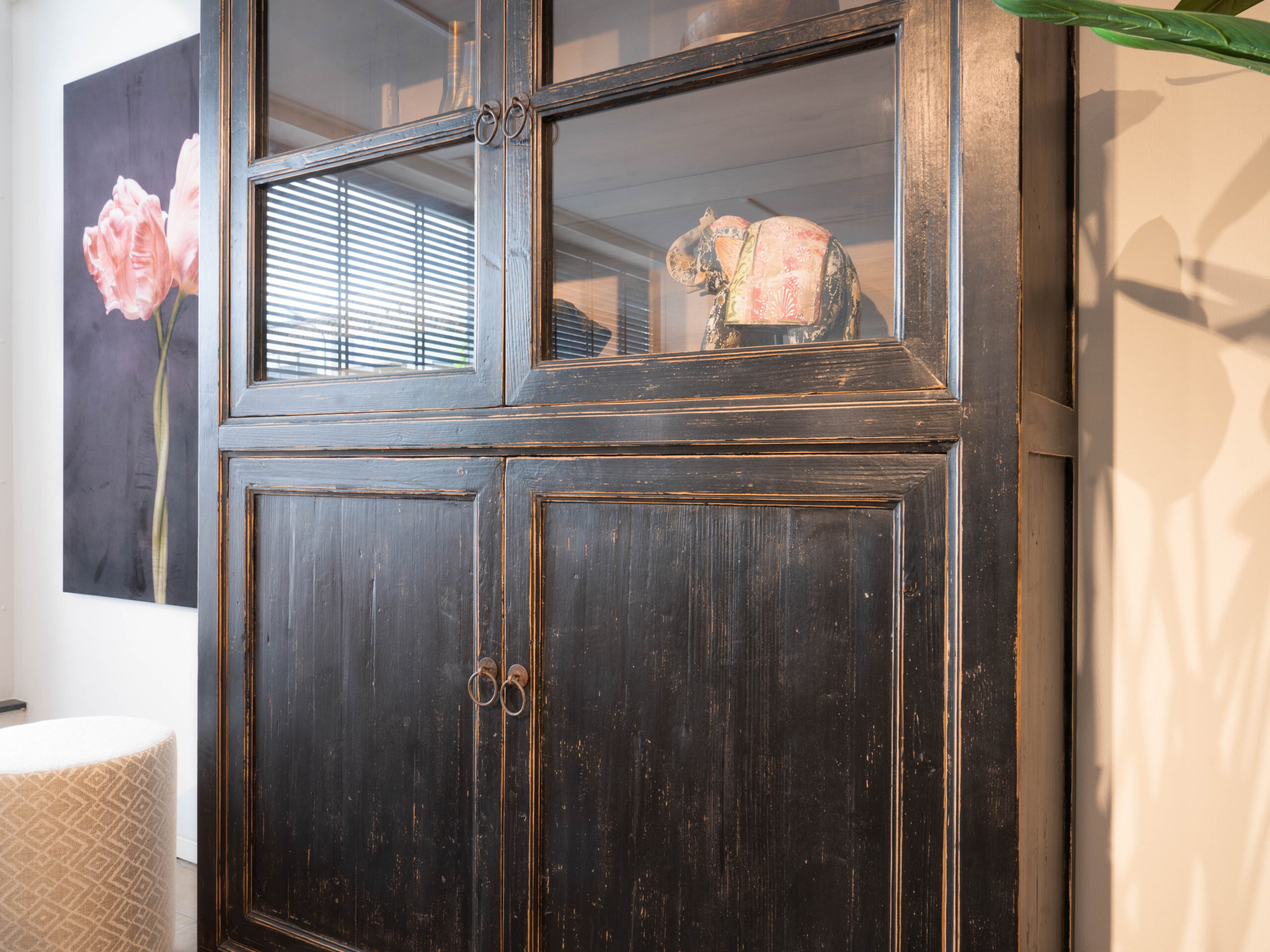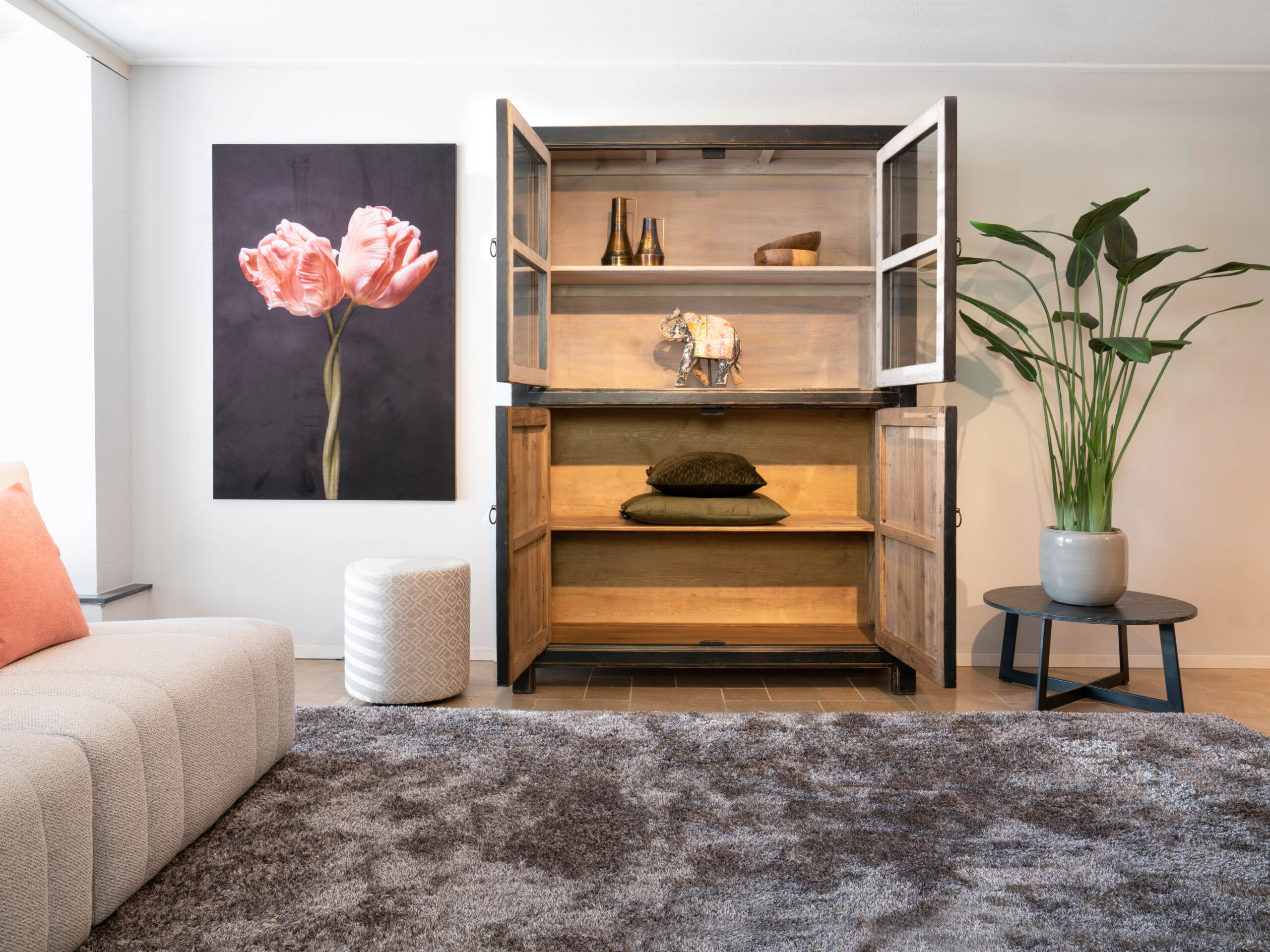 Dit authentieke hout bevat karakteristieke details. Elke kast is daarom uniek en heeft zijn eigen karakter. Het zwart gebeitste hout combineert ook makkelijk met andere houtsoorten. Doorgaans is de vitrinekast Bogota direct uit voorraad leverbaar. Bezoek één van onze showrooms om inspiratie op te doen of bestel eenvoudig online zonder aanbetaling!