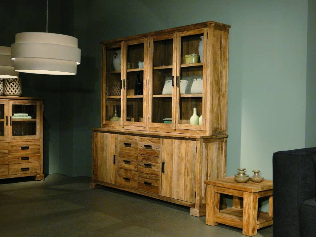 Stoere vitrinekast van oud recycled teak, ook wel driftwood genoemd. Dit model combineert mooi met onze andere producten van oud hout zoals bijvoorbeeld onze tafel Brunoy of kloostertafel Tressot.