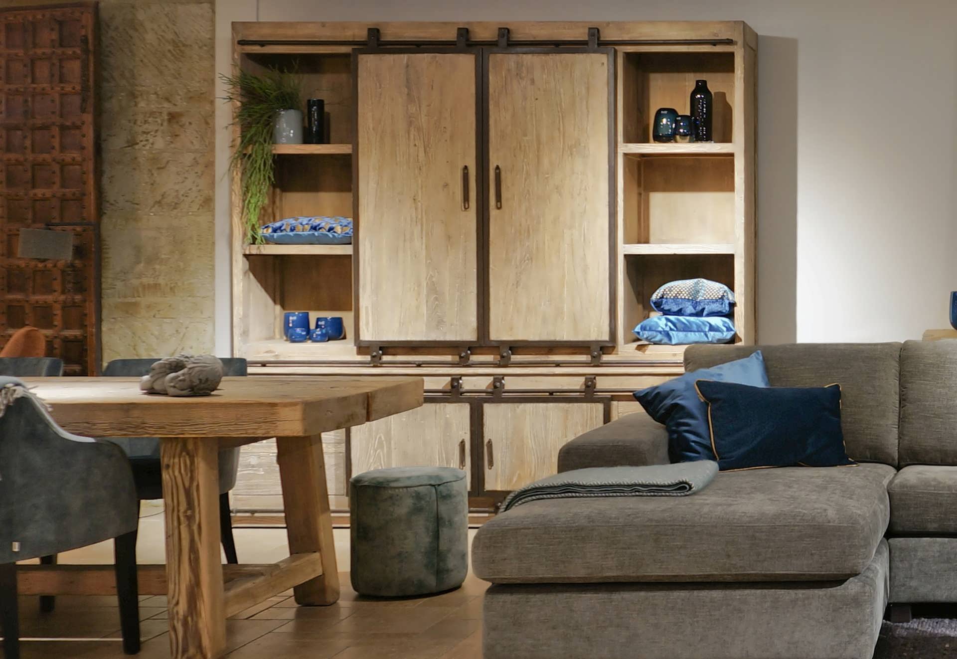 Onze meubels van oud elm hout combineren heel mooi met de vele meubelen in oud hout welke we aanbieden. Of het nu een oud eiken eettafel of salontafel is, het oude hout met doorleefde uitstraling zal een fantastische combinatie zijn met deze handgemaakte meubels.