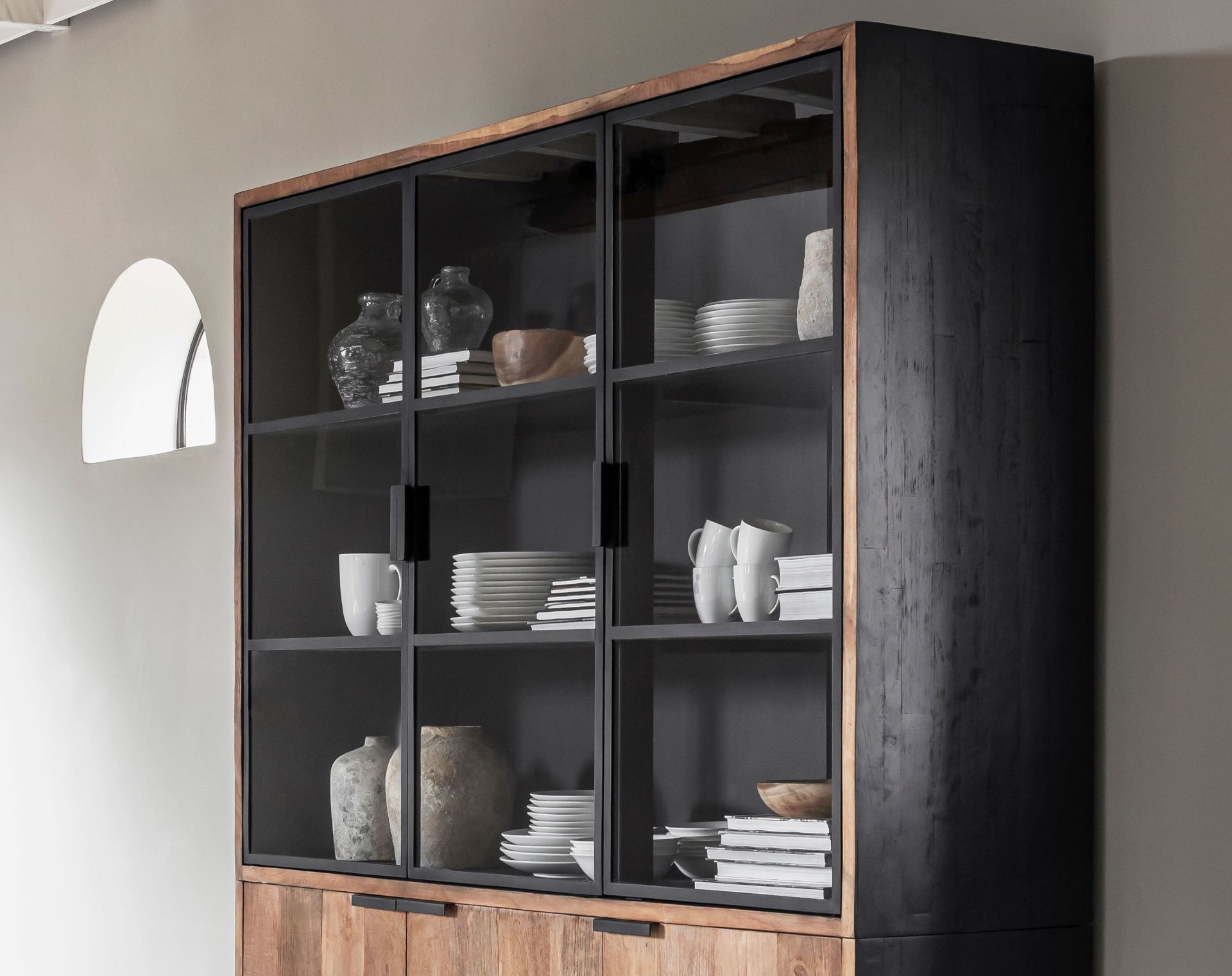 Stoere industriële vitrinekast van oud recycled teak en stalen frame. Dit model is leverbaar doorgaans direct uit voorraad. Hetzelfde hout wordt gebruikt voor onze Maldini, Noma, Marconi en Cavallo serie. Het oude teak hout krijgt een 2e leven in deze meubels, elk meubel heeft zijn eigen karakteristieke kenmerken wat elk meubel uniek qua uitstraling maakt.