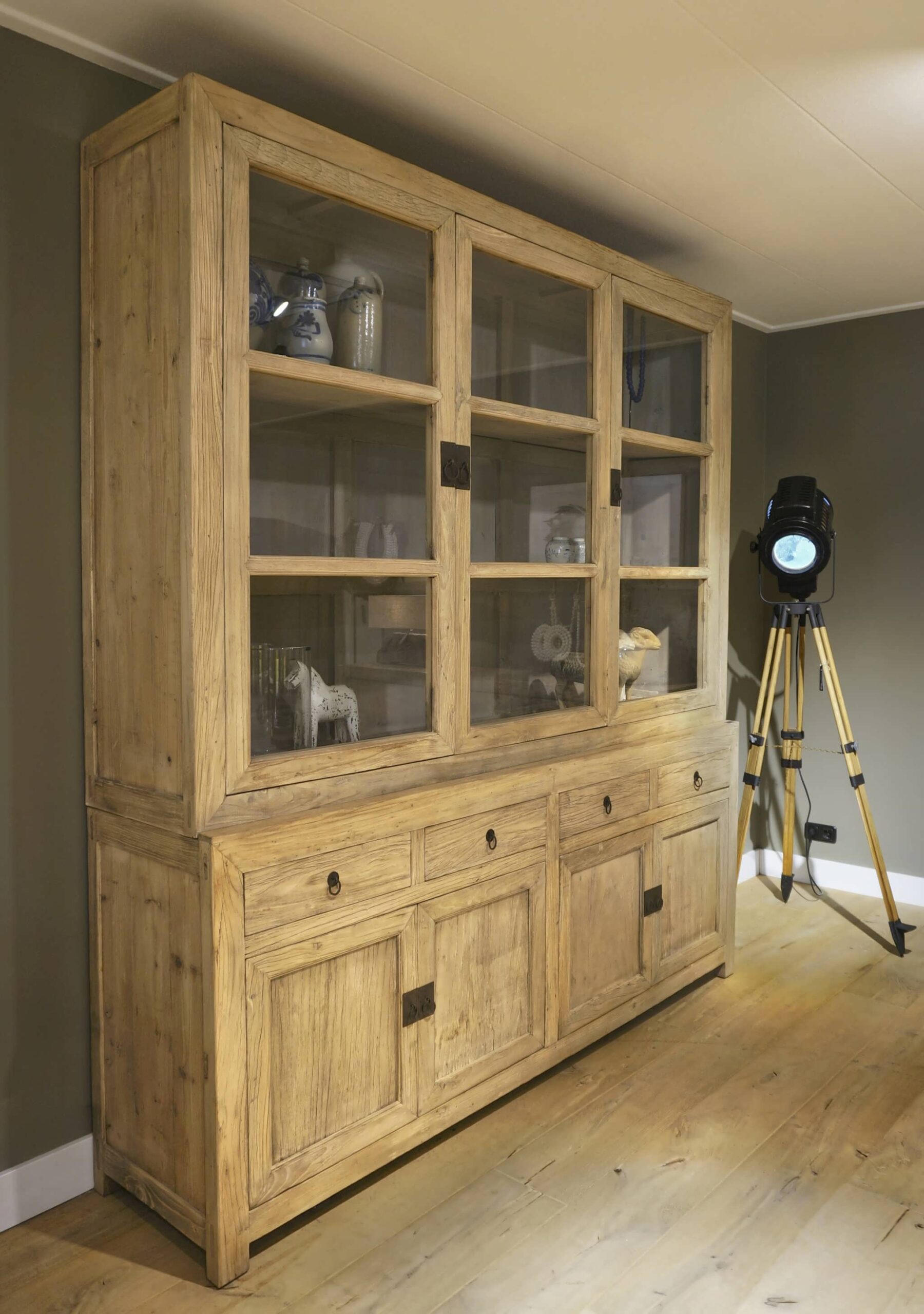 Dit model staat in onze showroom in Sliedrecht en Gramsbergen, in Sliedrecht staat ook de smalle variant de vitrinekast Ermont.