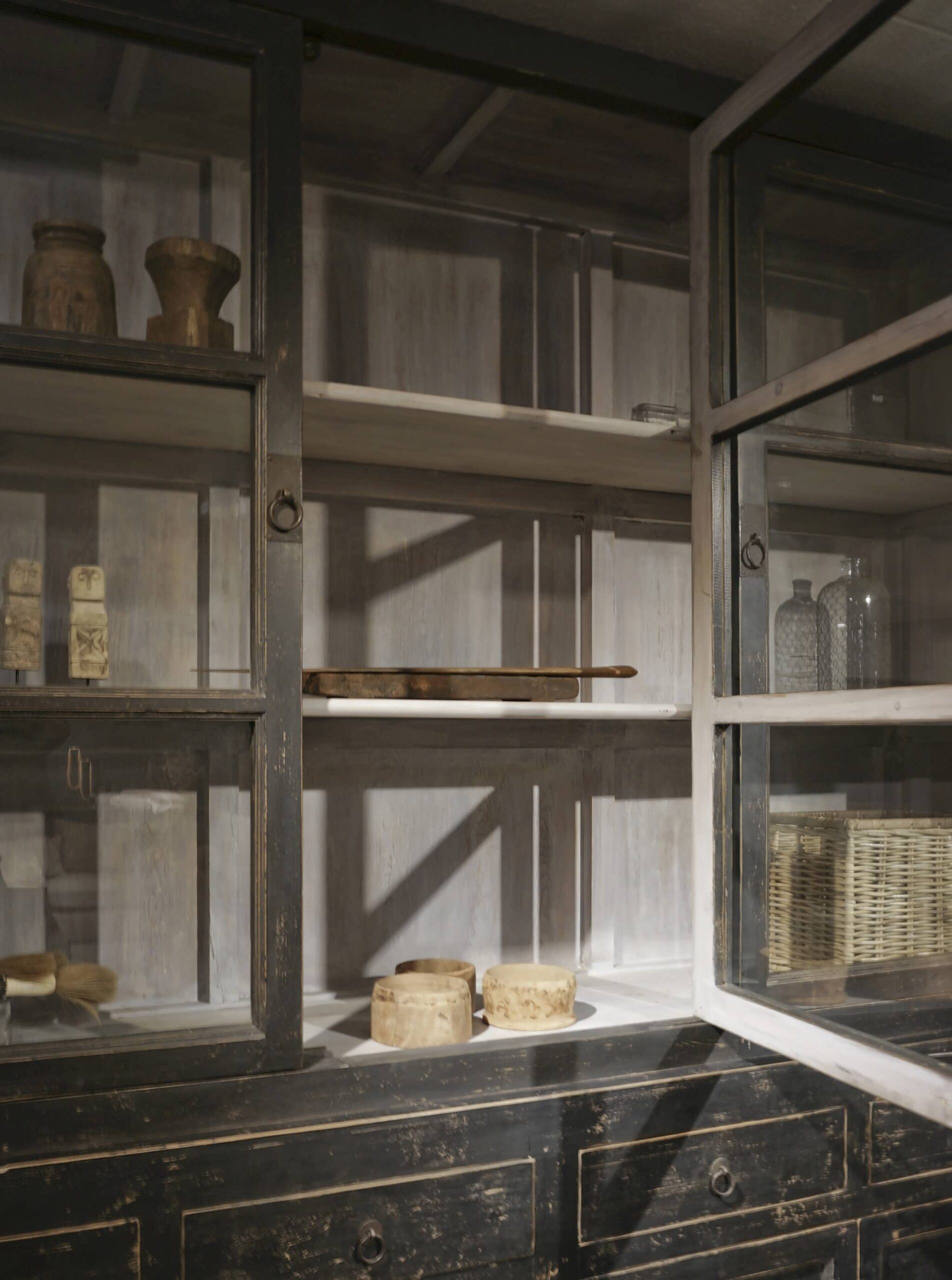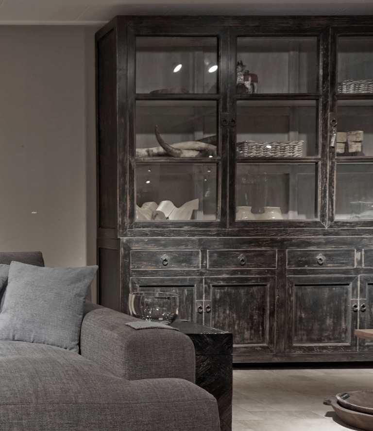 Stoer zwarte vitrinekast gemaakt van oud hout. Gemaakt van mooi authentiek hout met karakteristieke details, elk meubel is uniek en heeft zijn eigen karakter. Dit model is leverbaar in 2 maten, groot zoals hierboven getoond en in 85cm breed. Naast een zwarte vitrinekast is de Epernay ook leverbaar in naturel kleur en hebben we ook een bijpassend TV-meubel Epernay in de collectie.