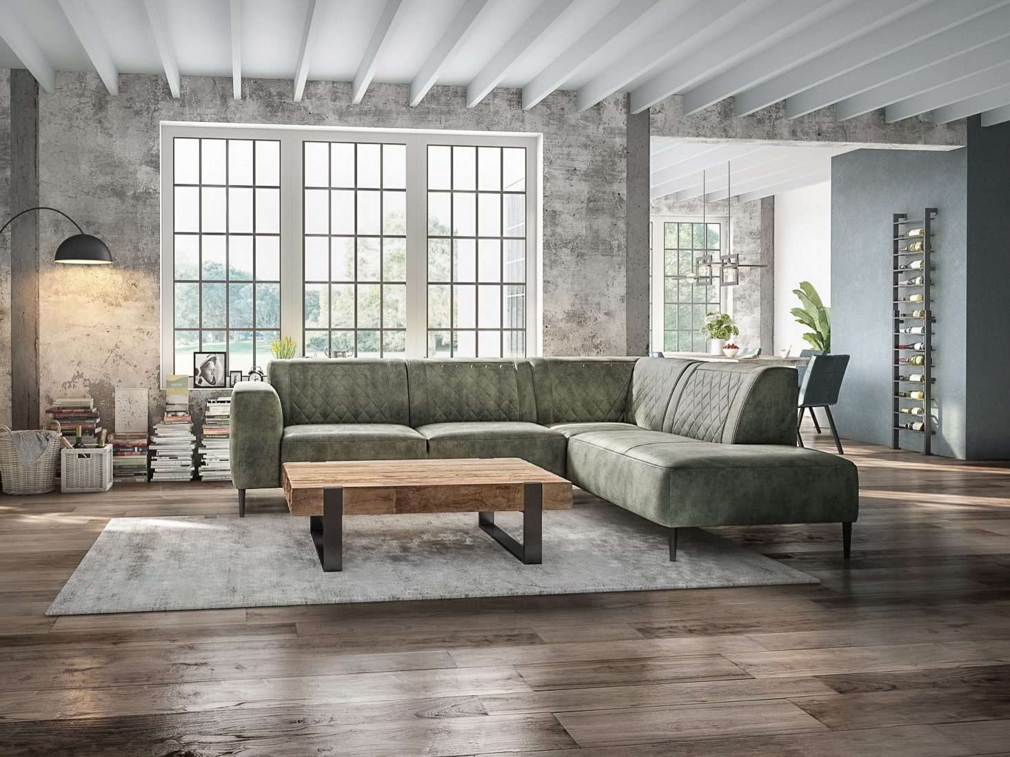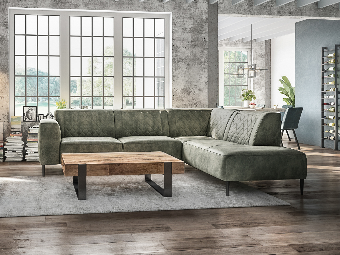 Deze bank is voorzien van een koudschuim vulling en nosag veren in de zitting, afgedekt met mix van comforel en visco en een polyether SG25 vulling in de rug. Veel modellen zijn ook leverbaar in een hoekopstelling, met open eiland of een chaise longue gedeelte. Dit verschilt per model.