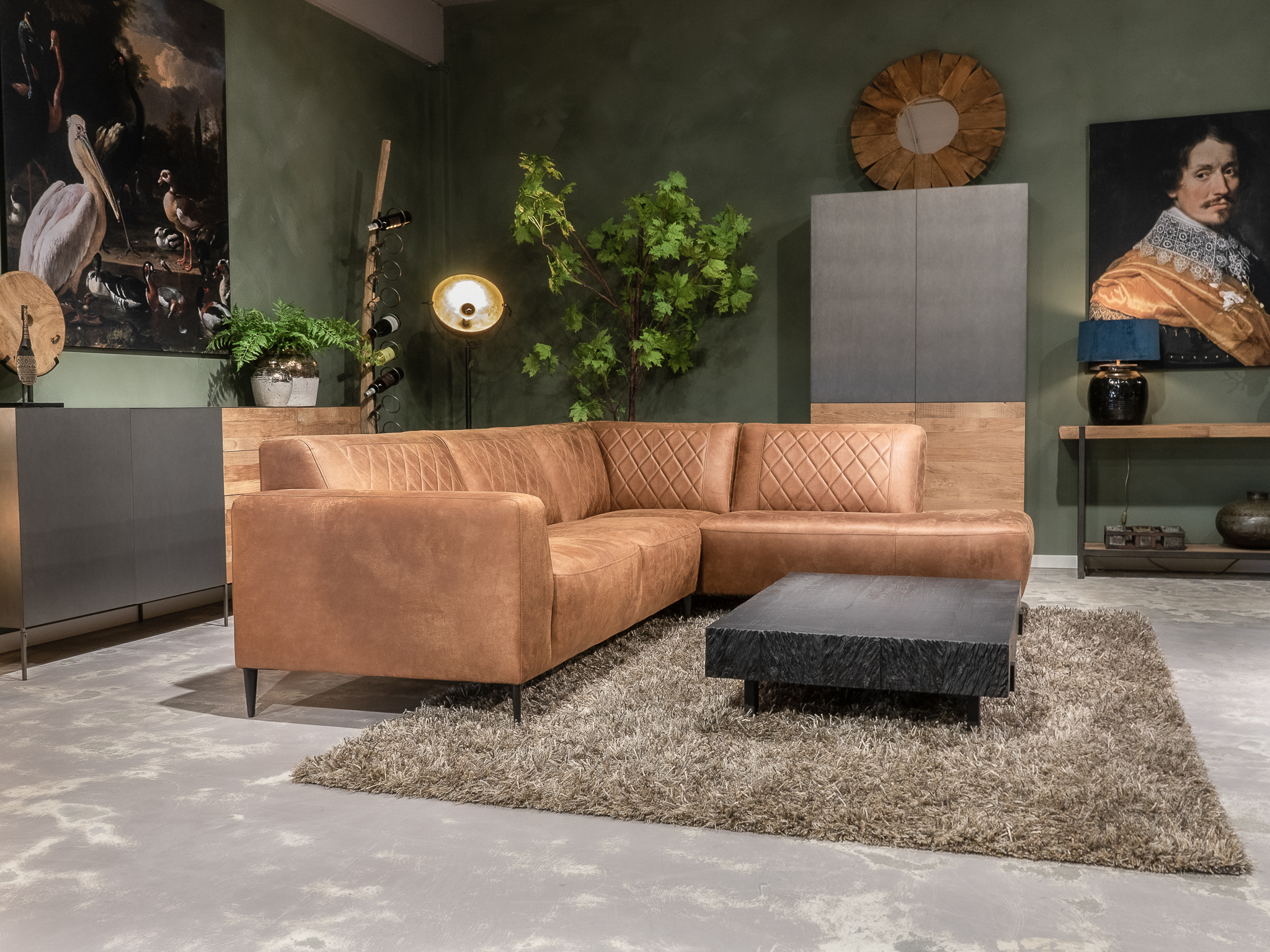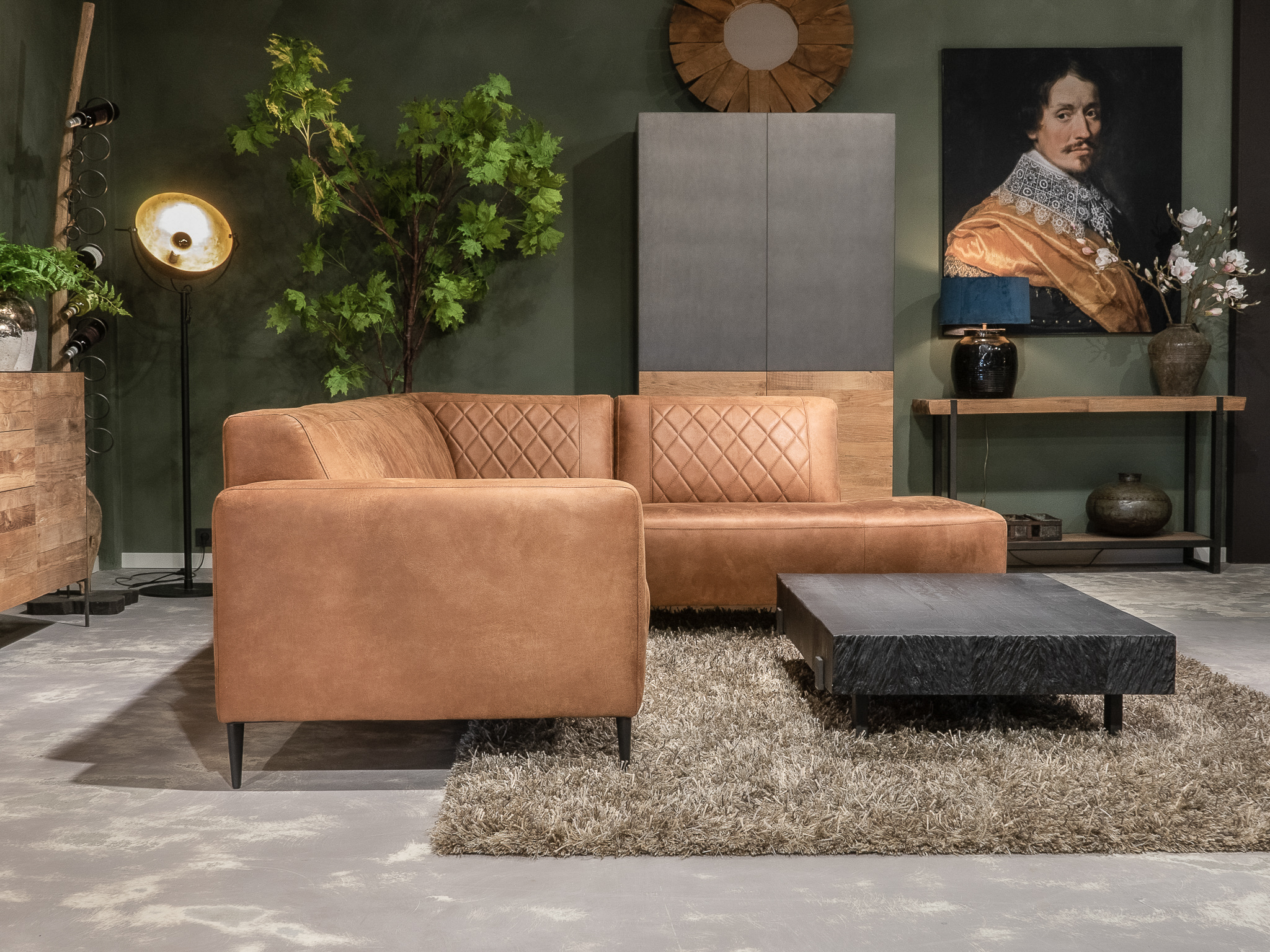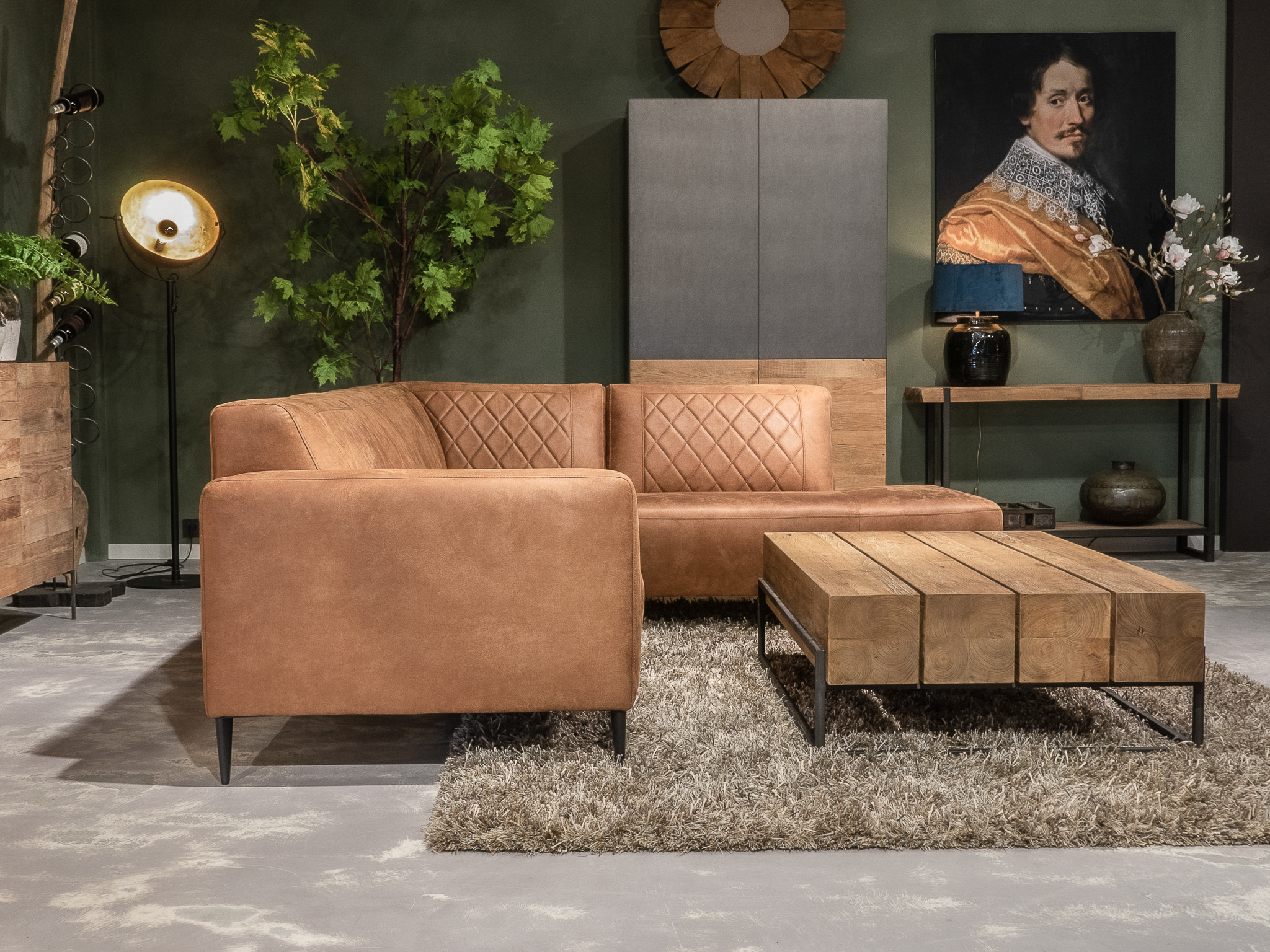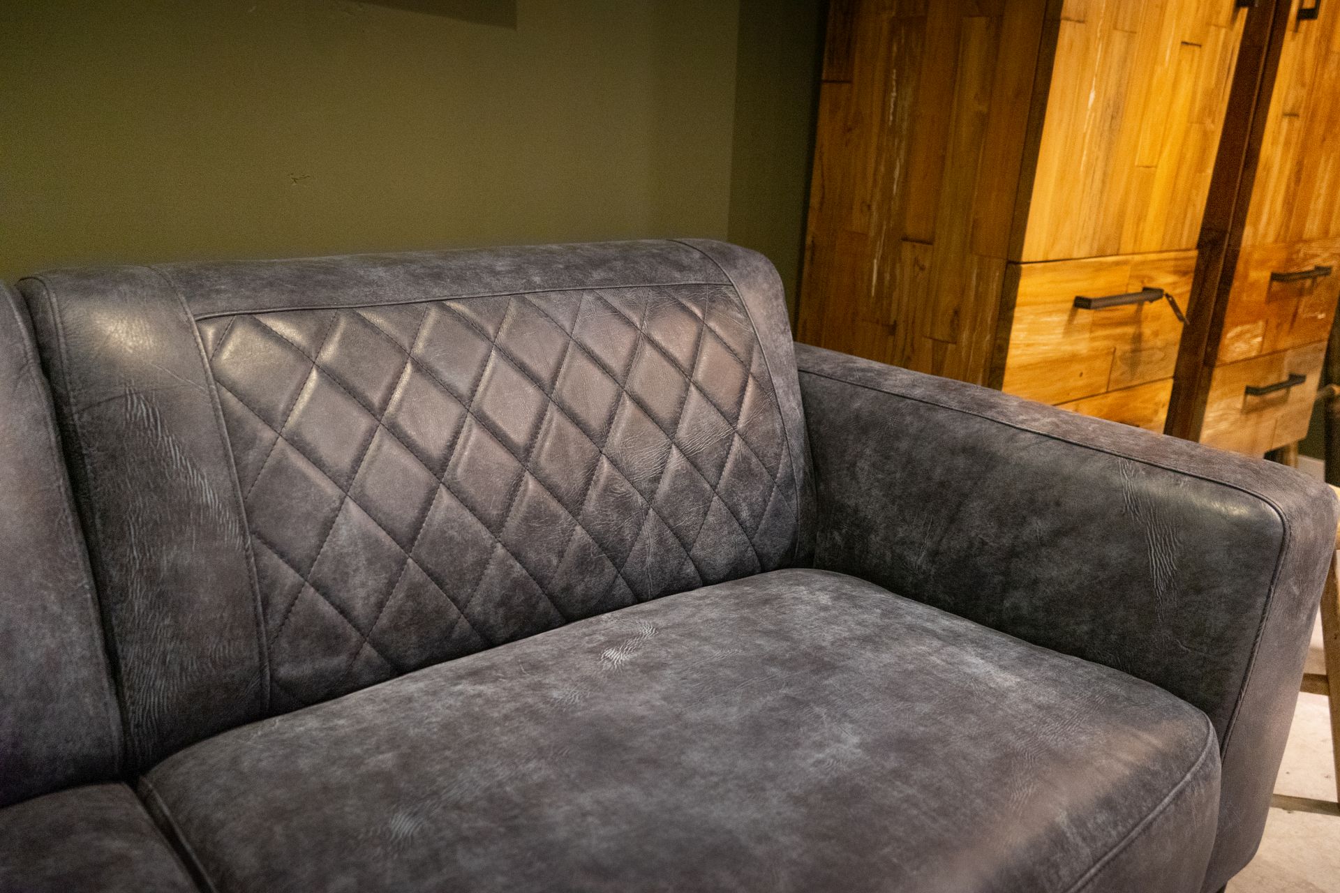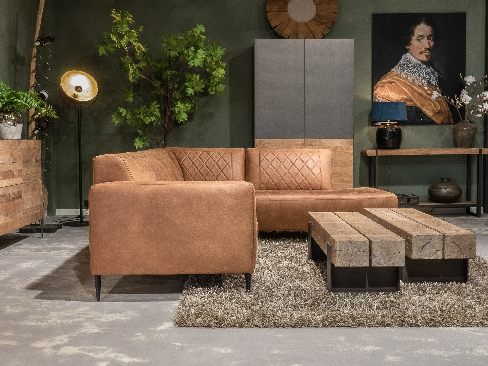 Het op deze bank verwerkte leer is van absolute topkwaliteit. De verwerkte huiden zijn afkomstig van Europese runderen waarbij uitsluitend de beste huiden geselecteerd worden. Middels een dubbele looiing en een speciale nabehandeling met wax en olie wordt een uniek doorgekleurd leer verkregen met een ruige stoere uitstraling. Ondanks deze ruige uitstraling heeft het leer een zeer comfortabele en soepele feel. Het leder is 1,3 tot 1,5mm dik. Het natuurlijke ongecorrigeerde karakter wordt gekenmerkt door de aanwezigheid van littekens, hoornsteken, schrammen en andere oneffenheden. Het op deze bank gebruikte leer heeft een middelsterke beschermende finish gekregen en is beperkt vocht- en vuilwerend. Het is het soort leer wat met de jaren alleen maar mooier wordt.