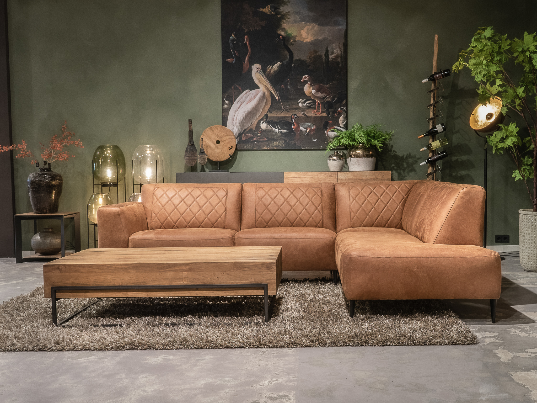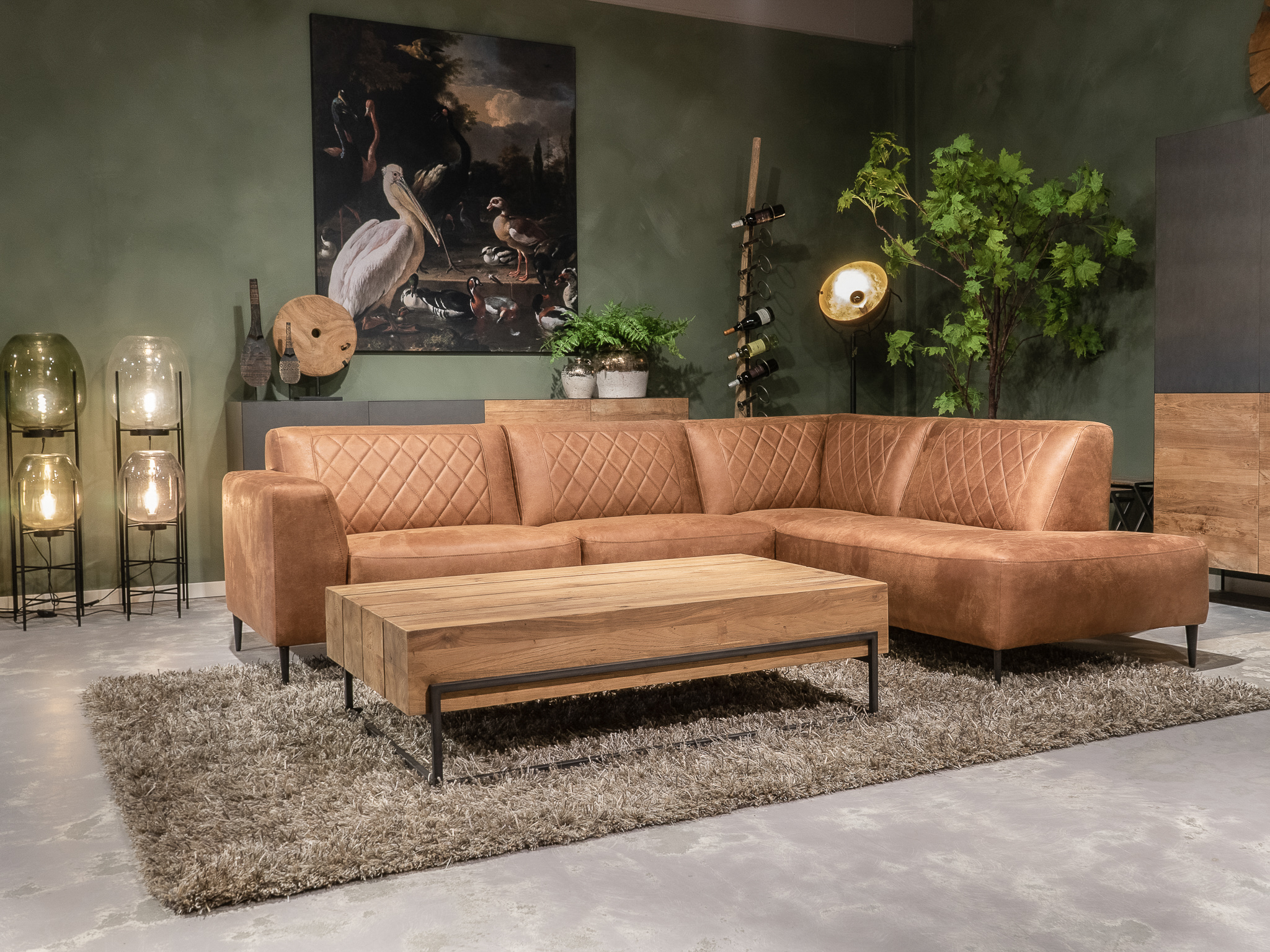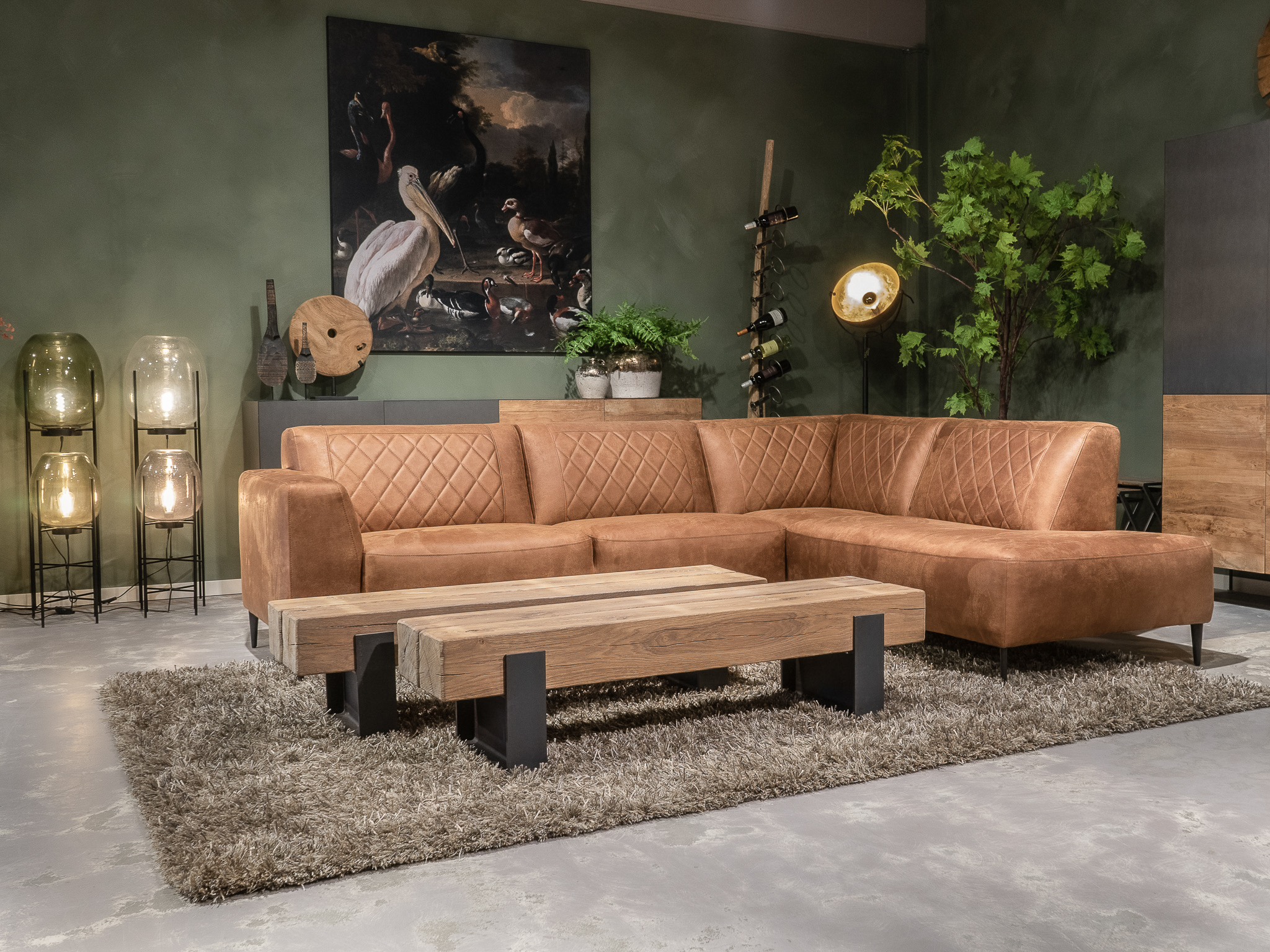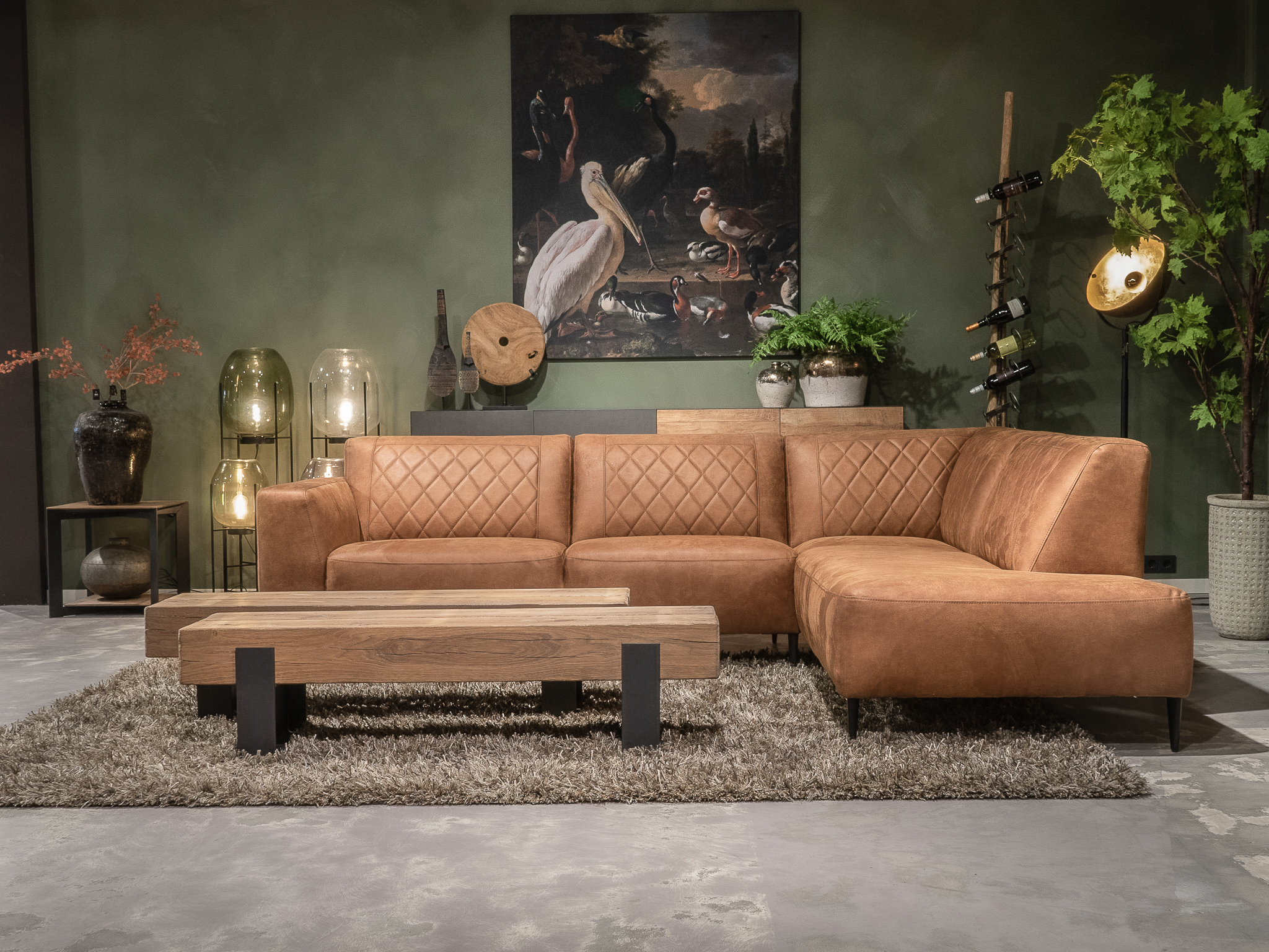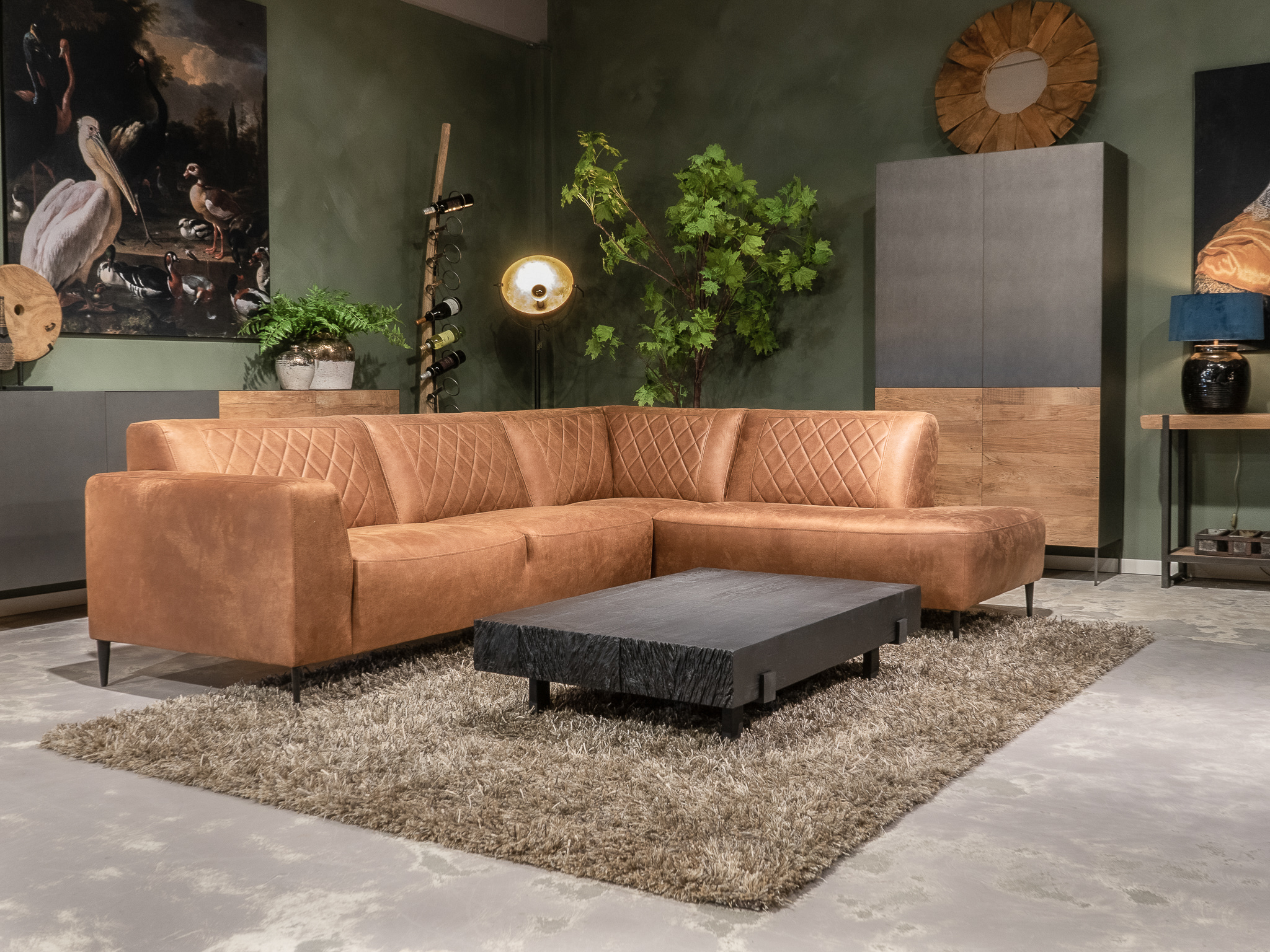 Het op deze bank verwerkte leer is van absolute topkwaliteit. De verwerkte huiden zijn afkomstig van Europese runderen waarbij uitsluitend de beste huiden geselecteerd worden. Middels een dubbele looiing en een speciale nabehandeling met wax en olie wordt een uniek doorgekleurd leer verkregen met een ruige stoere uitstraling. Ondanks deze ruige uitstraling heeft het leer een zeer comfortabele en soepele feel. Het leder is 1,3 tot 1,5mm dik. Het natuurlijke ongecorrigeerde karakter wordt gekenmerkt door de aanwezigheid van littekens, hoornsteken, schrammen en andere oneffenheden. Het op deze bank gebruikte leer heeft een middelsterke beschermende finish gekregen en is beperkt vocht- en vuilwerend. Het is het soort leer wat met de jaren alleen maar mooier wordt.