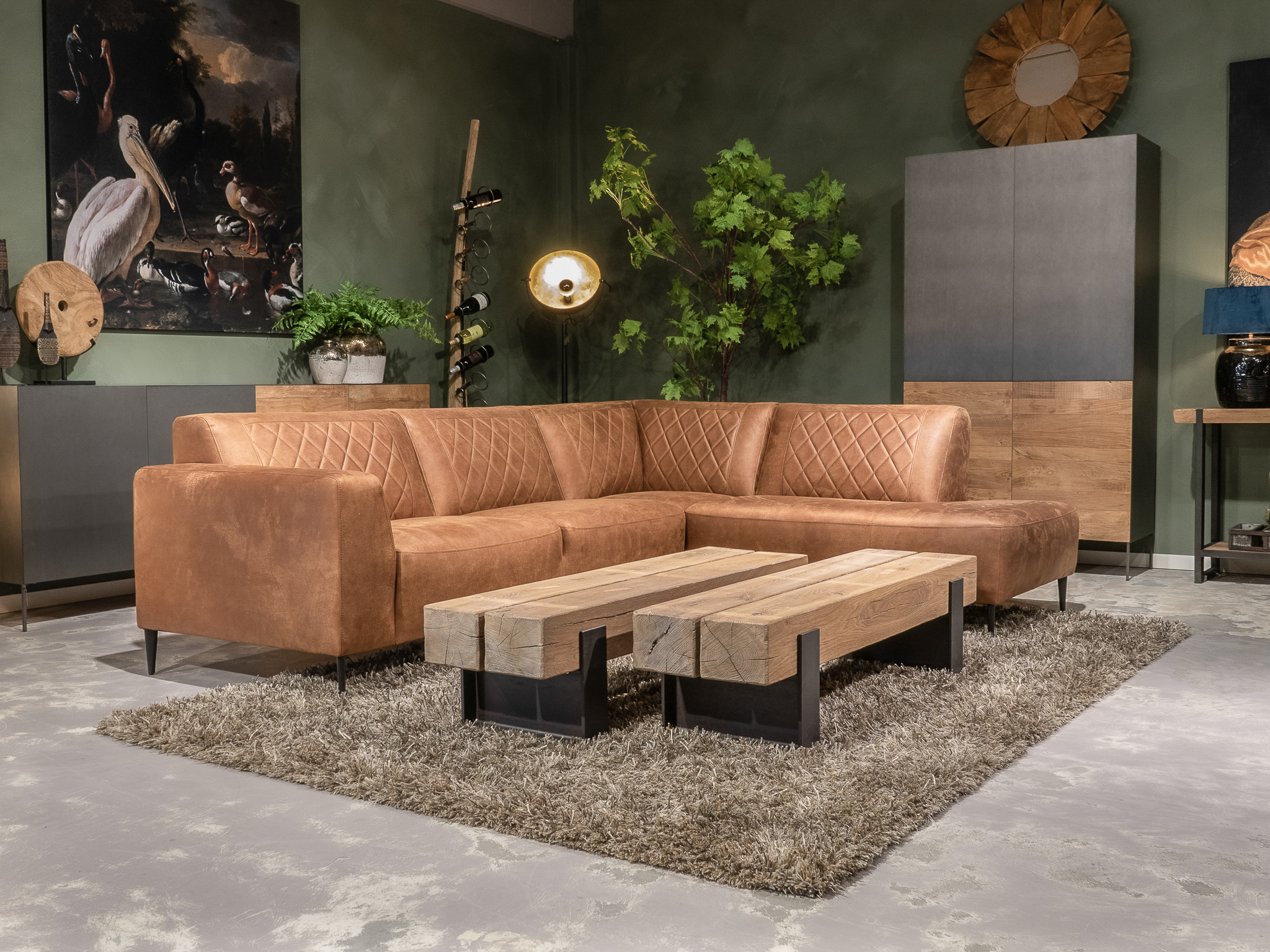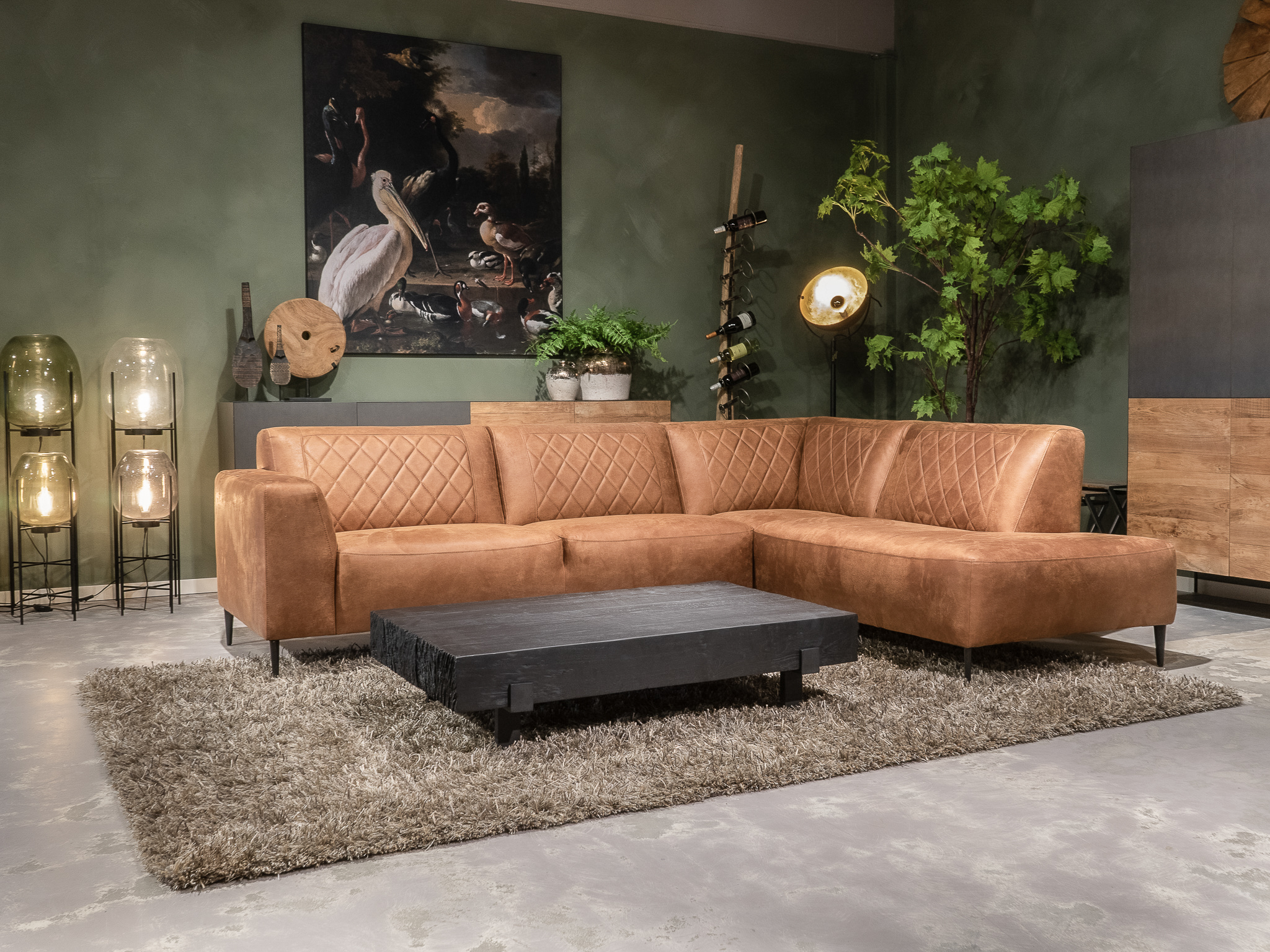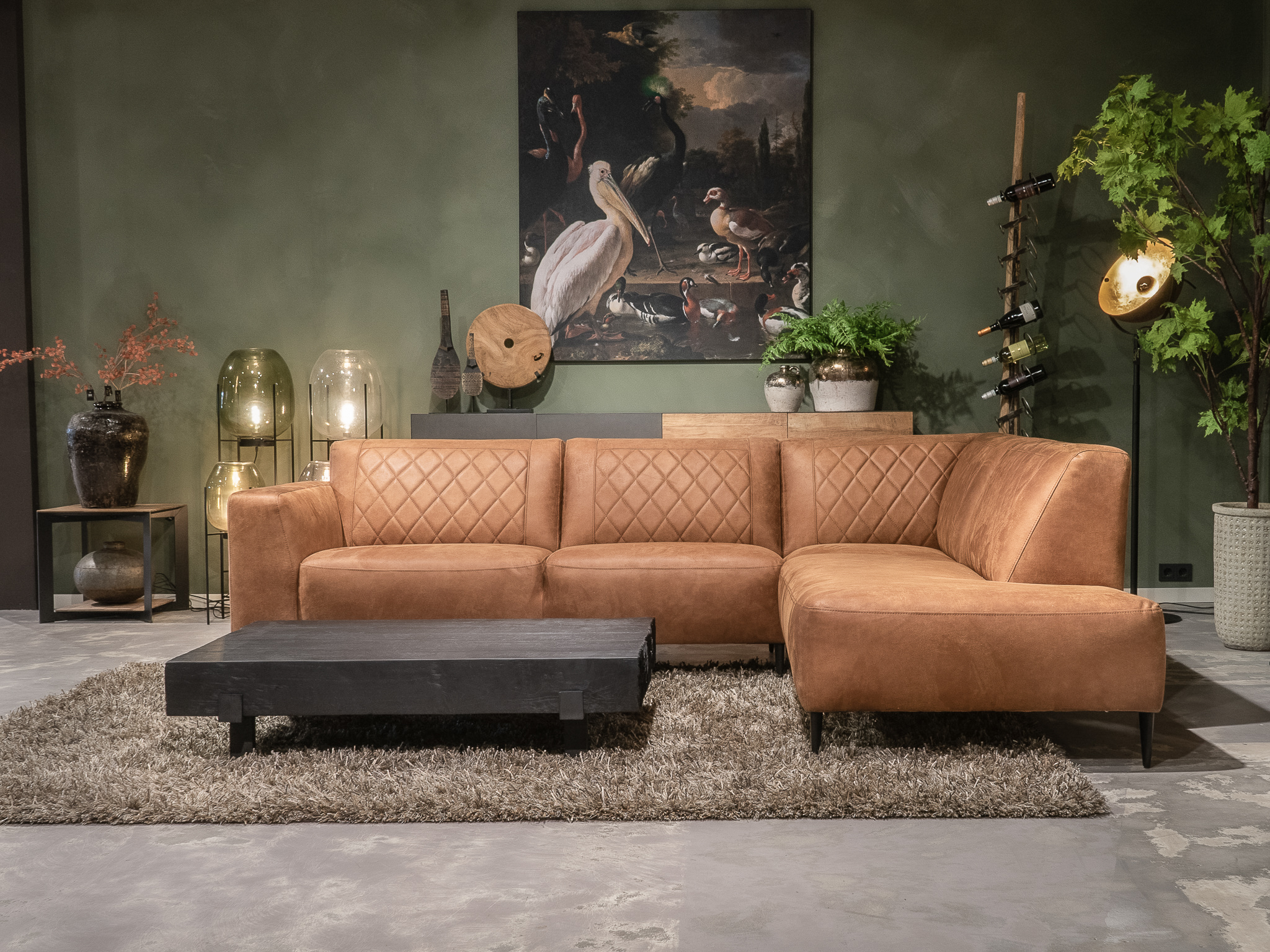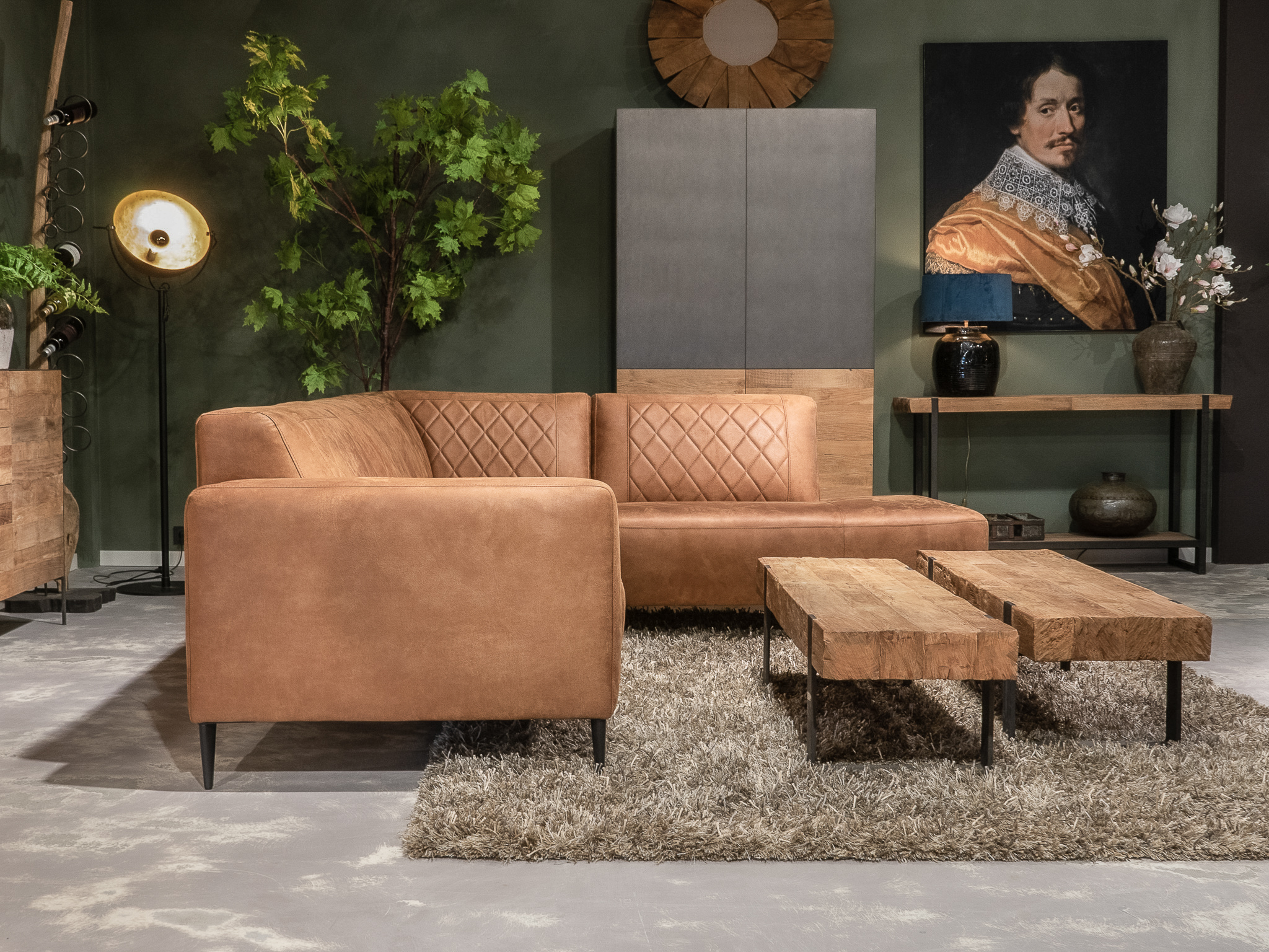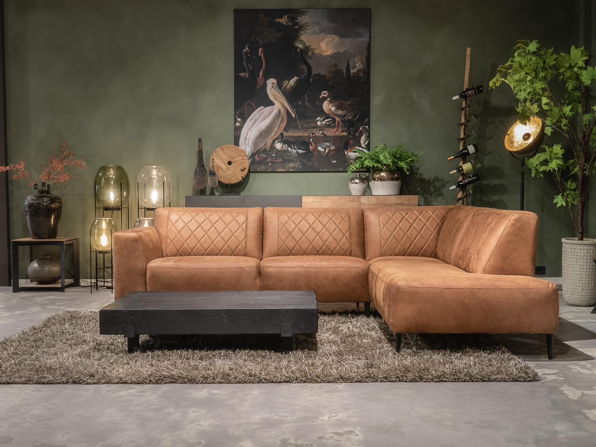 Het op deze bank verwerkte leer is van absolute topkwaliteit. De verwerkte huiden zijn afkomstig van Europese runderen waarbij uitsluitend de beste huiden geselecteerd worden. Middels een dubbele looiing en een speciale nabehandeling met wax en olie wordt een uniek doorgekleurd leer verkregen met een ruige stoere uitstraling. Ondanks deze ruige uitstraling heeft het leer een zeer comfortabele en soepele feel. Het leder is 1,3 tot 1,5mm dik. Het natuurlijke ongecorrigeerde karakter wordt gekenmerkt door de aanwezigheid van littekens, hoornsteken, schrammen en andere oneffenheden. Het op deze bank gebruikte leer heeft een middelsterke beschermende finish gekregen en is beperkt vocht- en vuilwerend. Het is het soort leer wat met de jaren alleen maar mooier wordt.