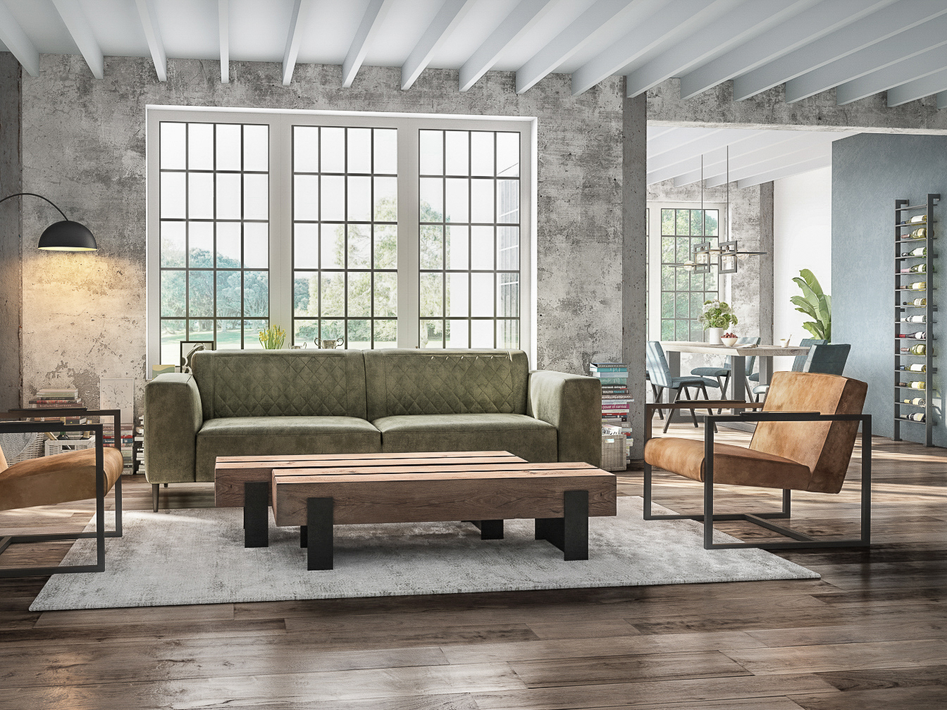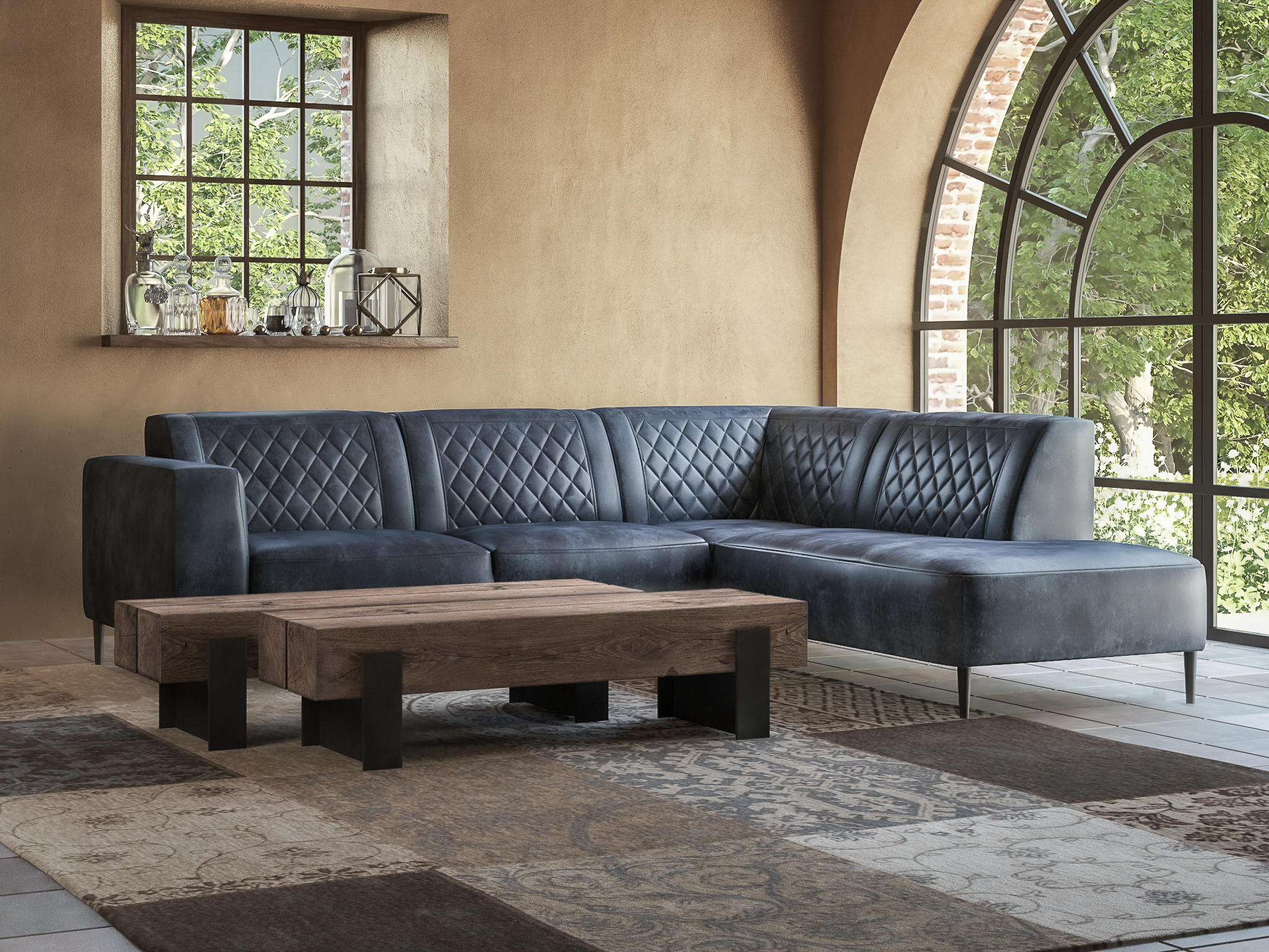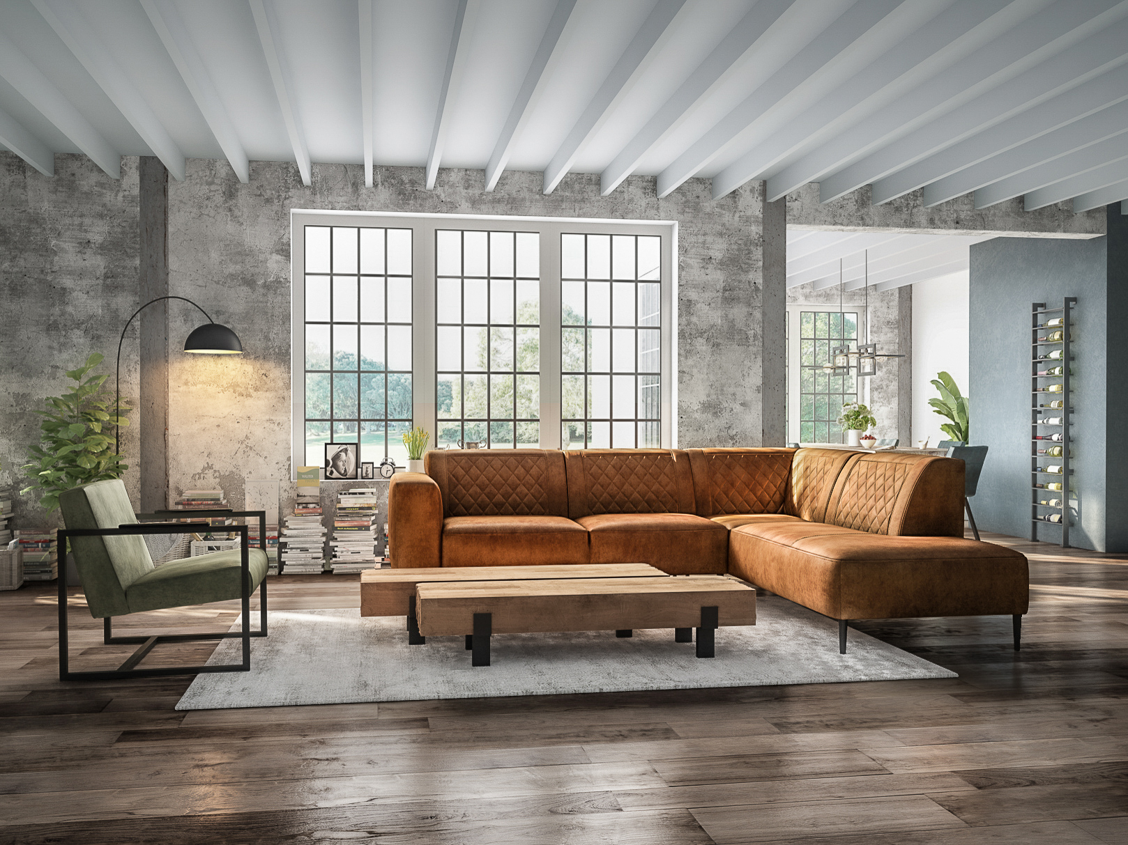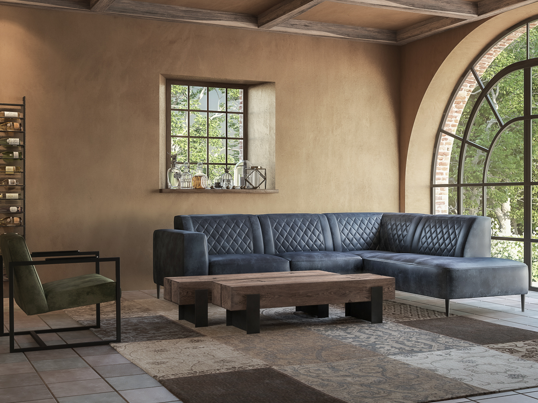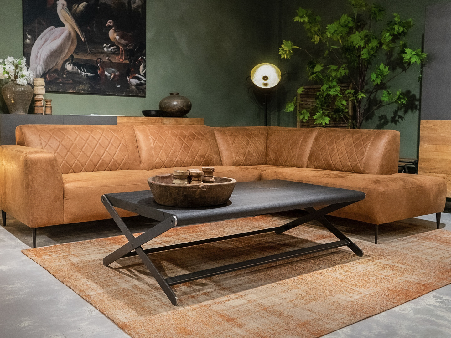 Het op deze bank verwerkte leer is van absolute topkwaliteit. De verwerkte huiden zijn afkomstig van Europese runderen waarbij uitsluitend de beste huiden geselecteerd worden. Middels een dubbele looiing en een speciale nabehandeling met wax en olie wordt een uniek doorgekleurd leer verkregen met een ruige stoere uitstraling. Ondanks deze ruige uitstraling heeft het leer een zeer comfortabele en soepele feel. Het leder is 1,3 tot 1,5mm dik. Het natuurlijke ongecorrigeerde karakter wordt gekenmerkt door de aanwezigheid van littekens, hoornsteken, schrammen en andere oneffenheden. Het op deze bank gebruikte leer heeft een middelsterke beschermende finish gekregen en is beperkt vocht- en vuilwerend. Het is het soort leer wat met de jaren alleen maar mooier wordt.