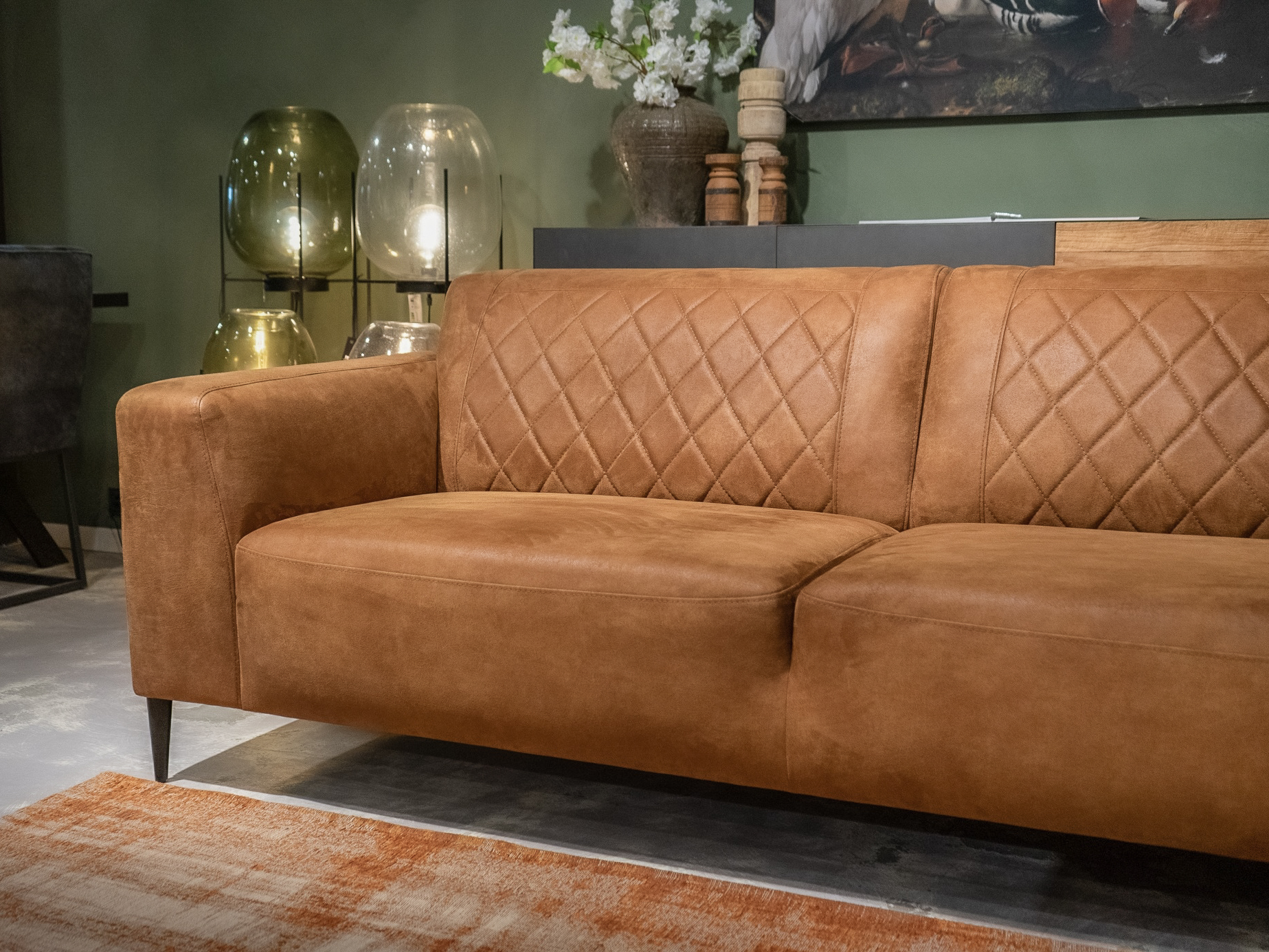 Stoere leren drie zits bank Verano, qua zit en mogelijkheden gelijk aan onze Tivoli echter met een ruit stiksel in de rug. Deze leren bank is leverbaar in verschillende uitvoeringen, maten en kleuren, ook als hoekbank. Dit model is leverbaar in leer en stof. Kom gerust eens proefzitten in één van onze showrooms in Sliedrecht of Gramsbergen.